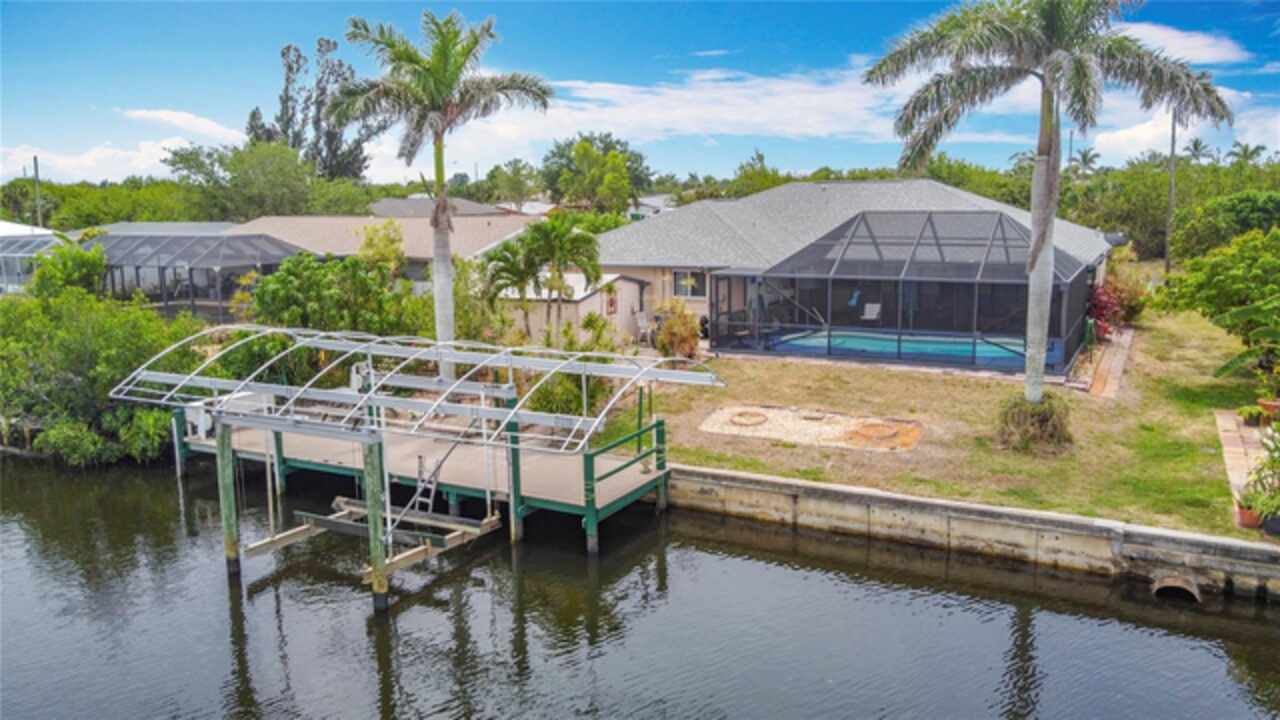 # **Elevated Waterfront Oasis** **No Flooding. No Worries.** This elevated, never-flooded 3-bedroom, 2-bathroom home offers peace of mind and a lifestyle tailored for relaxation and adventure. Nestled on a tranquil canal, enjoy **direct open-water access** with just one bridge, perfect for trips to the beach and beyond. ### **Sold Turnkey Furnished** Move right in—no hassle, no furniture shopping. Every room is fully furnished with tasteful, modern décor, ready for you to enjoy from day one! *** ## **For the Boating Enthusiast** * **2016 Dock & Boatlift:** * 10’x30’ Azek-decked dock designed for durability. * Equipped with a **10, 000 lb boatlift**, ready for your marine adventures. ## **RV-Ready Setup** * Dedicated RV pad with hookups. * **Air-conditioned shed** for hobbies or additional storage. *** ## **Stylish Comfort: Major Updates You’ll Love** Every detail has been elevated for modern living, with **thoughtful upgrades in 2018:** * **New Carpets:** Cozy, fresh carpets in all bedrooms. * **Luxury Vinyl Flooring:** Durable, modern flooring in the living room. * **Impact Windows:** Energy-efficient windows for safety and cost savings. * **Contemporary Kitchen Appliances:** Fully upgraded in 2018 for style and reliability. *** ## **Outdoor Bliss** * **Hurricane-Ready:** Hurricane shutters and accordion-style lanai protection. * **Heated Pool:** Sparkling pool with a newer heater for year-round enjoyment. *** ## **Modern Elegance Throughout** This home combines thoughtful design with contemporary touches: * **Newer Roof:** A fresh start with a new roof. * **Granite Countertops:** Sleek, stylish granite in the kitchen and bathrooms. * **Updated Flooring:** From lush carpets to durable vinyl, every space feels fresh and modern. *** ## **Effortless Indoor-Outdoor Living** **Pocket sliding glass doors** blur the lines between indoor comfort and outdoor serenity. Breathtaking **canal views** and natural light create a seamless flow. *** ## **Why This Home?** **Turnkey furnished tranquility** meets convenience in this waterfront retreat. Whether you’re lounging by the pool, setting out for a boating adventure, or enjoying the thoughtful updates, this home delivers on every level.