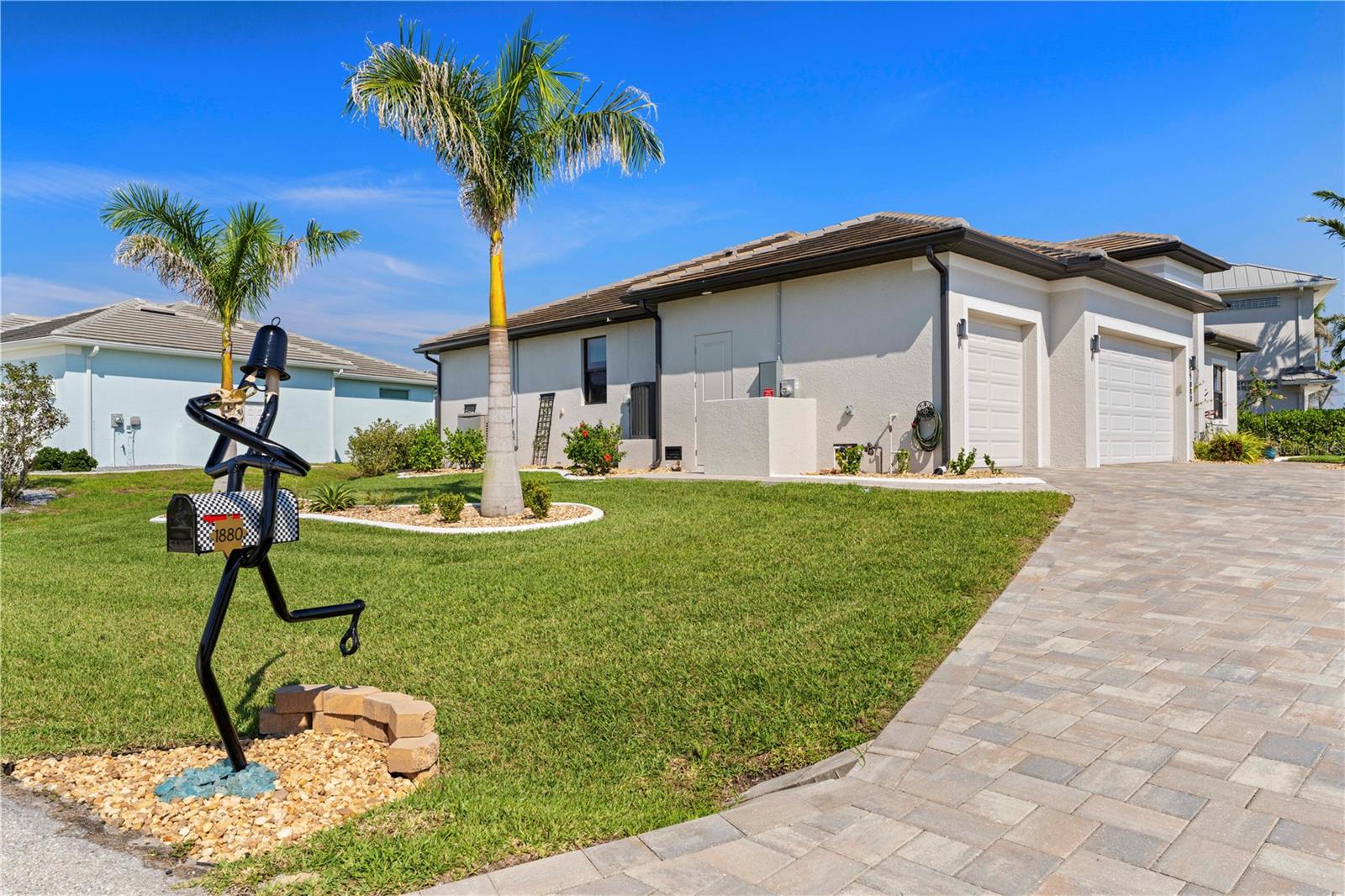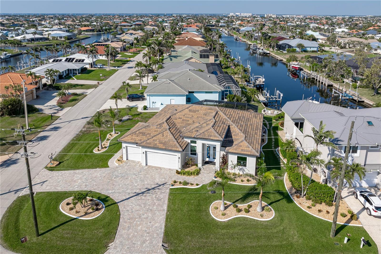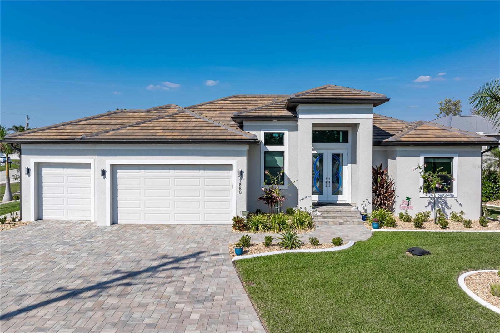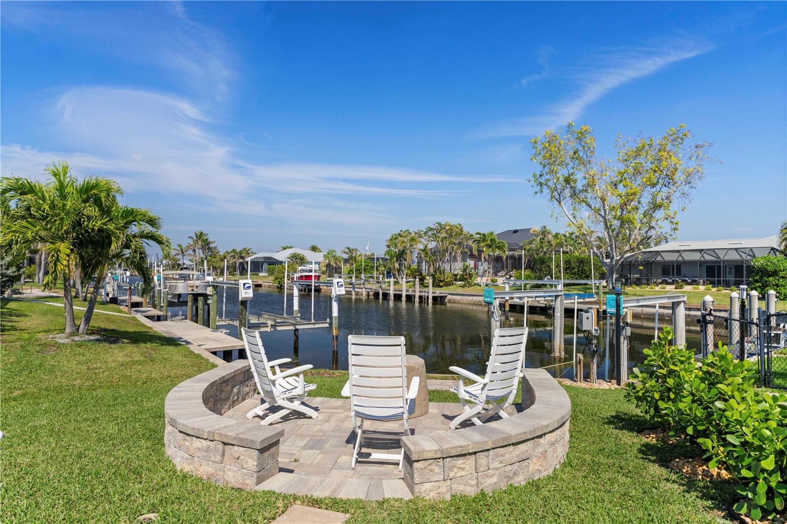 SHOWCASE HOME W/A WATER VIEW IN PGI! Check out this exceptional 3 bed/3.5 bath + den, custom waterfront home in Punta Gorda Isles built by Harbor Home Builders in 2022. Why wait for new construction when this home is MOVE-IN READY?!? ~ LUXURY & HIGH END FINISHES THROUGHOUT - NO EXPENSE SPARED DURING CONSTRUCTION ~ The property offers over 2, 200 sq ft of living space w/an open-concept design, seamlessly blending indoor and outdoor living. The layout is based on a modified Siesta floor plan - with the addition of a half bath in the den. Feature wall in great room offers a built-in fireplace. It serves as the focal point of the room w/textured stone, glass shelves & lighting. A spacious den/home office is nestled just off the foyer. The half bath is tucked away here. Gourmet kitchen is a chef’s dream, featuring contemporary cabinetry w/under cabinet lighting, quartz countertops, stainless steel appliances, RO under sink filtration, a 5-BURNER GAS COOKTOP w/stainless hood plus a large center island with breakfast bar seating & pendant lighting. There's also a large, walk-in pantry so no shortage of storage here! Mitered bay window in the dining area overlooks the pool & canal view. Architectural details include tray & double tray ceilings, gorgeous marble floors, stained glass entry doors, & a large interior laundry room w/adjacent mudroom & coat area. The master suite has walk-out access to the lanai, an spa-like master bath w/dual sinks, a seated vanity area, large tiled shower & oversized walk-in closet. The split bedroom layout features generous guest rooms - each w/large walk-in closets & en-suite bathrooms. One of the guest baths doubles as a pool bath w/access to the lanai. Outside, the brick paver lanai surrounds the in-ground, propane-heated pool w/attached spa. A tanning ledge allows you to stay cool while soaking up some Florida sunshine! A patio w/stone wall surrounding it is steps from the back door. It's the perfect spot for a fire pit. Sit back & enjoy the lovely canal view out here. Additional highlights include a brick paver circular drive leading to the three-car garage, water softener, professionally landscaped yard, 500-gallon buried propane tank (for gas range & pool/spa heat), central vacuum system & whole-house hurricane protection w/impact-resistant doors & windows plus electric roll-down shutters on the lanai. No expense was spared during construction: enjoy the best of everything here - nothing to update - just move in & enjoy! Punta Gorda is a vibrant waterfront town known for its boating lifestyle, active art & music scene, and top-rated golf courses. Miles of sidewalks connect you to the rest of Punta Gorda Isles, several area parks & even historic downtown Punta Gorda. Take advantage of the active lifestyle awaiting you here: you can walk, bike or kayak to almost anywhere you'd want to go! Claim your spot in paradise & start living your Florida dream here.
