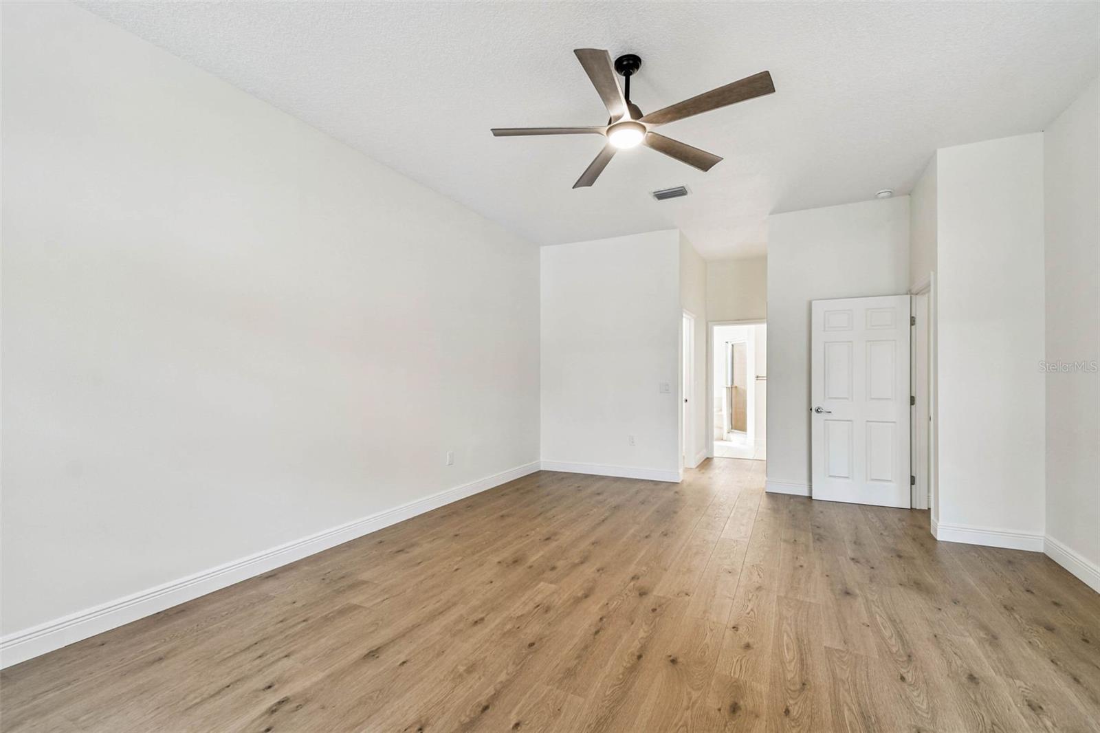 Ceiling Fans(s), High Ceilings, Primary Bedroom Main Floor, Solid Surface Counters, Solid Wood Cabinets, Split Bedroom, Stone Counters, Thermostat, Walk-In Closet(s)
