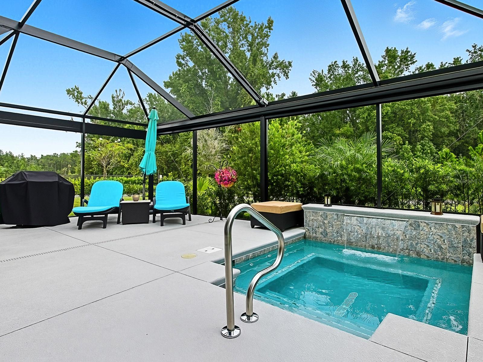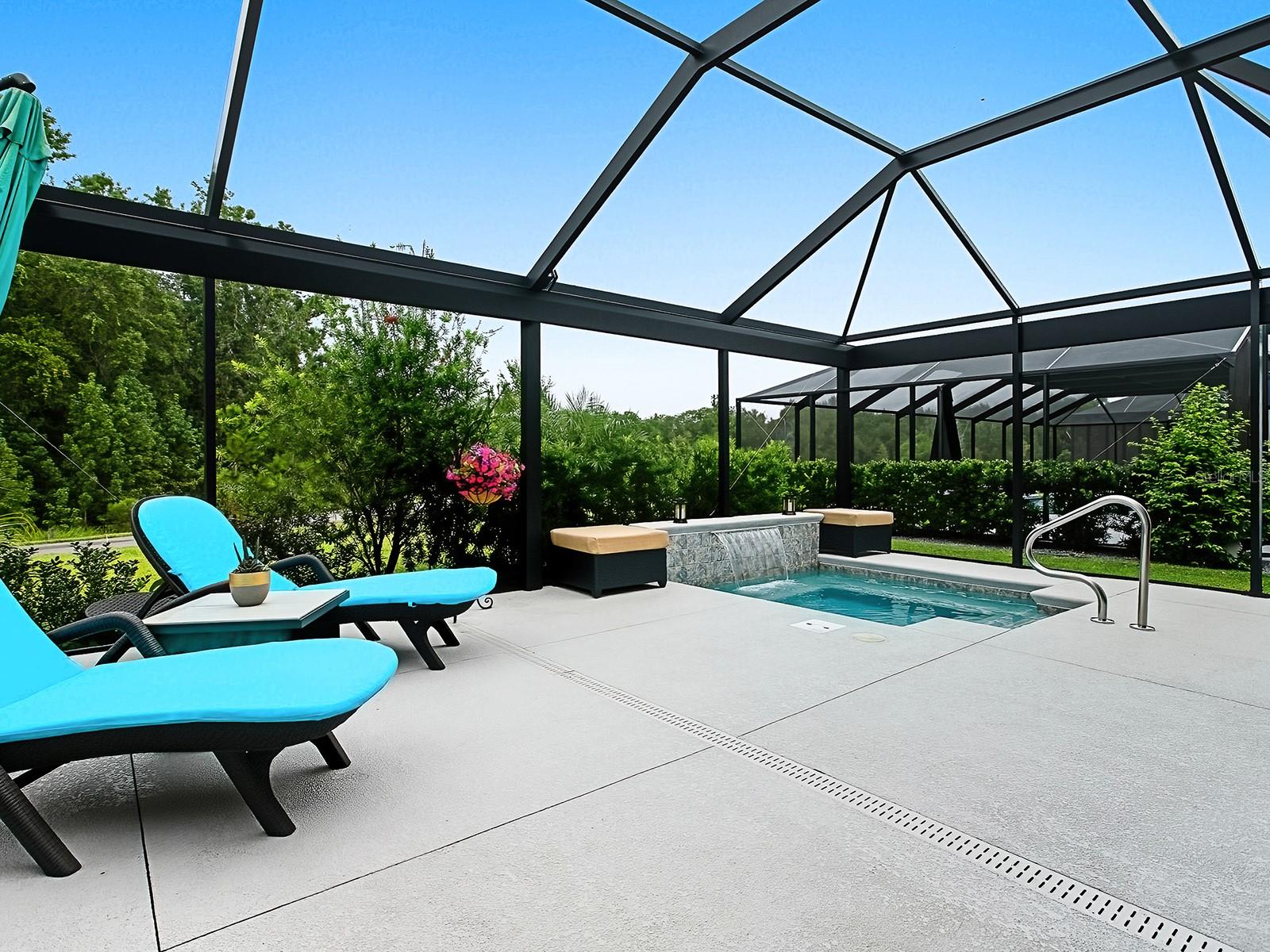 STUNNING PRESERVE & WATER VIEWS, PRIVACY, QUALITY & STYLE await in this Meticulous Custom Designed 3/2 ASPEN Home. Located in the VILLAGE of NEWELL. This PRIVATE OASIS FEATURES Lush, Enhanced Landscaping, Views, a Sparkling T&D-built IN-GROUND DIPPING POOL/SPA WITH A WATERFALL FEATURE AND GAS HEATED, offering both Beauty and Tranquility in the EXTENDED BIRDCAGE. Notice details inside & out of this home starting upon arrival with Landscaping, Color Coated & Stamped Concrete Drive, Walkway, & Front Porch. Step inside to an OPEN & SPACIOUS Floor Plan with TILE Flooring and PLANTATION SHUTTERS throughout. The KITCHEN is a true center piece featuring GAS Stove, high-end finishes: Modern Wood Cabinetry, Complimentary Back-Splash, QUARTZ Countertops, STAINLESS STEEL APPLIANCES. The OPEN Layout flows seamlessly into the living and dining spaces, creating an Inviting Open & Airy Space for everyday living and hosting. The Primary EnSuite accommodates your king-sized furniture, has walk-in closet, and a generous walk-in SHOWER. The SPLIT FLOOR PLAN is convenient when hosting overnight guests as the secondary bedrooms and guest bath are located in the front of the home. WHAT YOU WILL LOVE THE MOST IS THE FANTASTIC OUTSIDE LIVING AREA COMPLETE WITH AUTO-REMOTE PRIVACAY SHADES - Soak in the views as you enjoy the dipping pool and/or spa, watch the game, entertain, relax - this home extends the ultimate Floridian lifestyle! NOTE: GARAGE IS EXTENDED 4 FT ALLOWING FOR TWO CARS AND A GOLF CART! The Village of Newell nestled among beautiful preserve views and ideally located just a short golf car ride away to all the fun, dining, and FREE outdoor entertainment at Sawgrass Grove. Home to Franklin Recreation, there's plenty of opportunities to catch up with neighbors and friends as you relax by the pool, play a game of pickleball, or a friendly game of darts. Explore more lifestyle fun at the neighboring Homestead Recreation including a dog park, stargazing among the trees at the astronomy pads, and more. You'll quickly discover this location to be a golfer's dream with the wide variety of golf available including the neighboring Jubilee Putting Course and Mickylee Pitch & Putt as well as the challenging Southern Oaks Championship golf course just to the north.