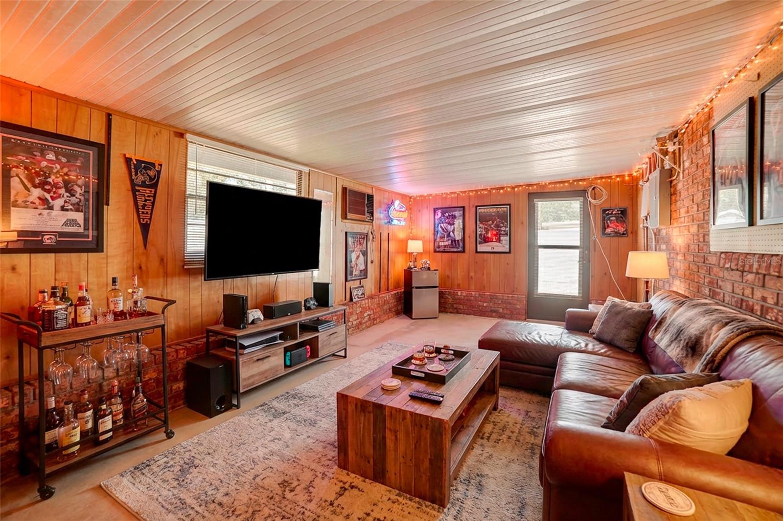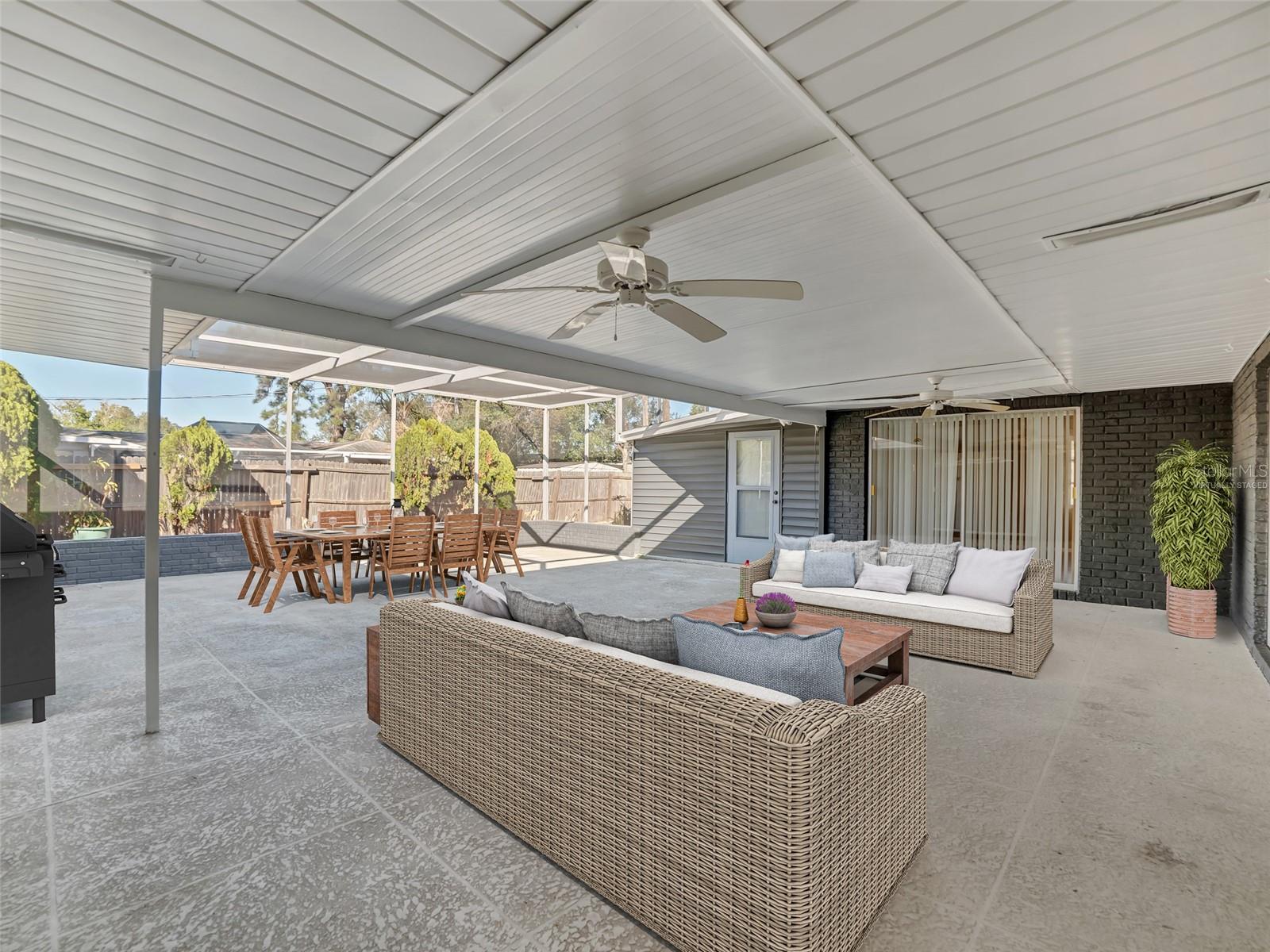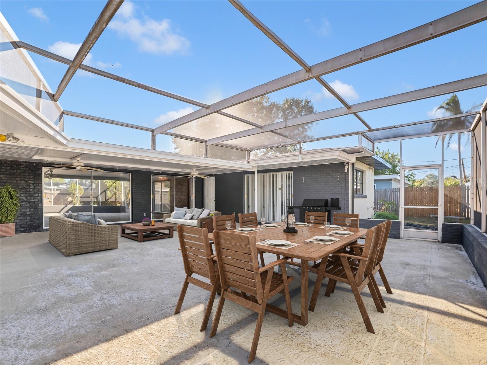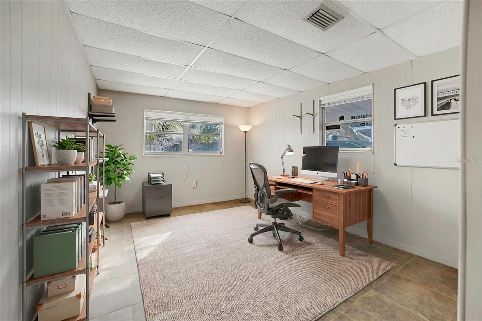 One or more photo(s) has been virtually staged. Nestled on an oversized lot with private circular driveway and surrounded by tasteful landscaping, this charming residence beckons with its delightful curb appeal, setting the stage for a warm welcome. Offering a true definition of comfort, style, and contemporary amenities, this home is tailor-made for comfortable living. Step through the front door to unveil 1, 588 square feet spacious floor plan. Enter into the living room and dining rooms with lots of natural lighting. 3 bedrooms and 2 baths, this charismatic home offers generous space for both relaxation and entertainment. The layout is thoughtfully designed with a split floor plan, ensuring privacy with the entire primary suite occupying one side. The primary bedroom is highlighted by crown molding and slding glass doors out to the expansive covered porch. This secluded sanctuary features an adjacent bath with standing shower and pedestal sink. The front of the home features a large room that's perfect for an office, gym or additional living room. The secondary generously sized bedrooms are located on the right side of the home and share a tub/shower combo. Off the back of the home is a studio that's perfect for guests to stay. The open kitchen features ample cabinetry, a built-in oven, glass cooktop with hood, microwave, a window over the basin sink with views of the community. Enjoy the sunshine while staying cool in the shade on this charming porch, perfect for enjoying any of St. Petersburg's abundant 365 days of sunshine each year. The screened patio is an expansive space, ideal for al fresco dining and outdoor living. Additional features-ceiling fans, ceramic tile flooring throughout, inside laundry room. Located in the sought-after Meadowlawn neighborhood of north St. Petersburg, this home offers a serene retreat amidst quiet and friendly neighbors. Adjacent to the picturesque Sawgrass Lake Park, residents enjoy easy access to nature trails, wildlife, and observation towers. Shopping, entertainment, and Interstate 275 are just moments away for everyday convenience. Moreover, the home's prime location provides quick access to award-winning beaches just a 15-minute drive to the west, while downtown St. Pete's vibrant cultural hub is a mere 15-minute drive south, ensuring endless opportunities for exploration and enjoyment. Don't miss out on the opportunity to call this Meadowlawn gem your own!