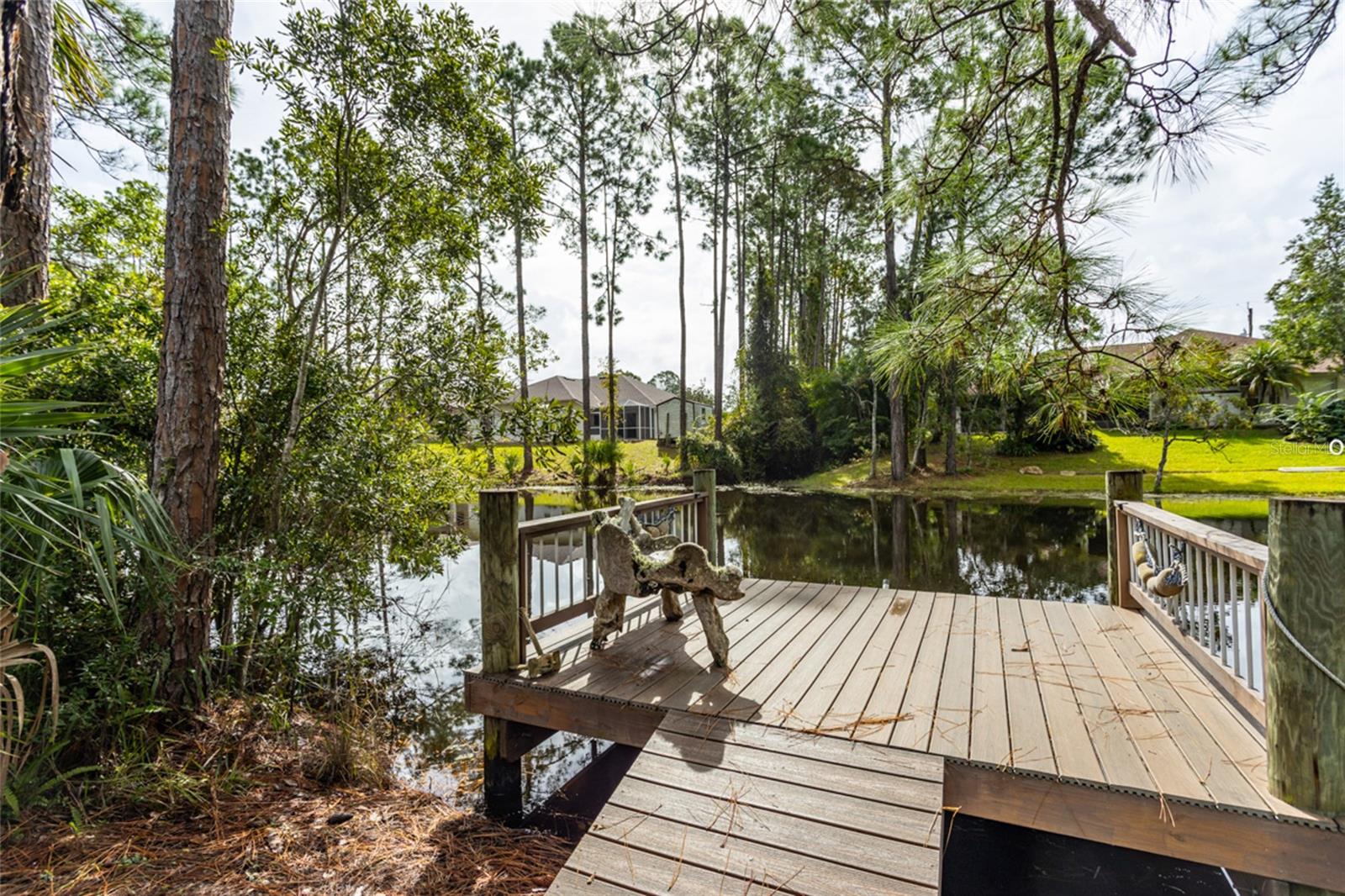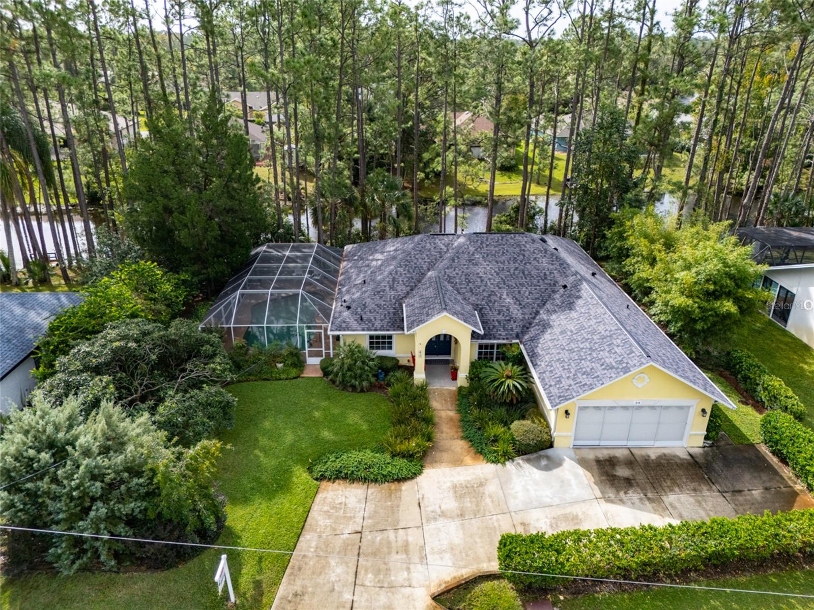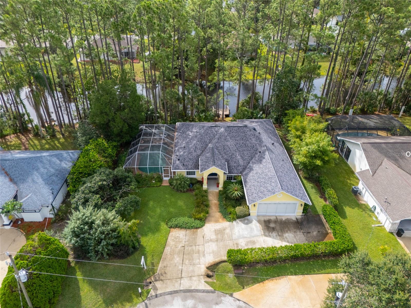 Beautifully updated freshwater canal pool home located on a quiet cul-de-sac in the desirable Pine Lakes “W” section of Palm Coast! This light and bright split floor plan features 3 bedrooms, 2 bathrooms, plus a spacious flex room overlooking the dock and canal. The primary suite offers custom his-and-hers closets, while a secondary bedroom includes a built-in Murphy bed for added versatility. Soaring tray and vaulted ceilings enhance the open layout, complemented by an updated kitchen and baths with quartz countertops, backsplash, and built-in appliances. Tile and engineered hardwood floors throughout. Recent updates include a 2024 roof with skylights, 2020 AC and water heater, and a 200-amp Generac generator with a 250-gallon propane tank installed in 2017. The oversized lot features a side-entry garage, an extended driveway accommodating up to 6 cars, a sprinkler system, a screened-in heated pool & covered lanai, making this home a true Florida retreat. So much PRIVACY!