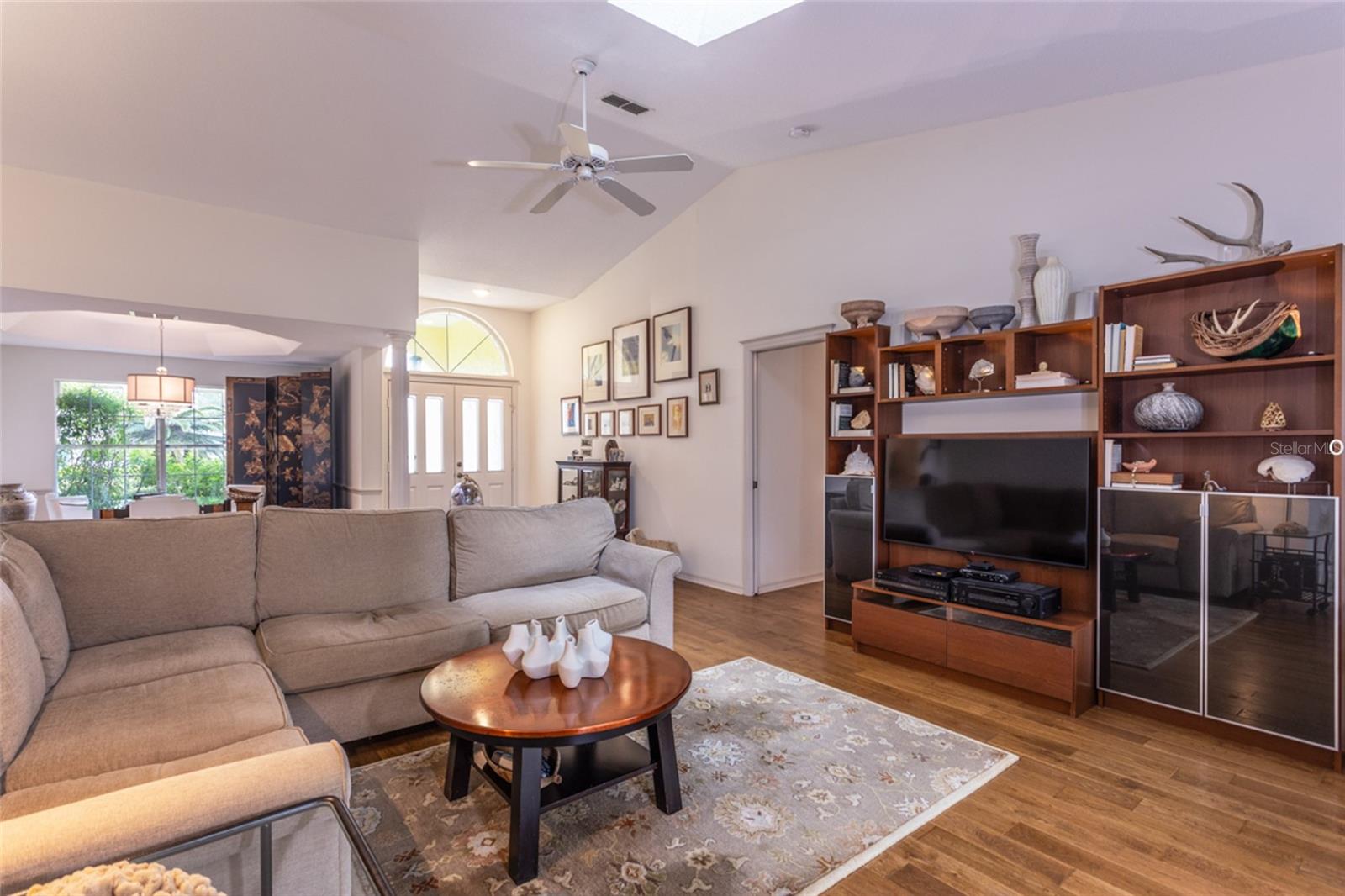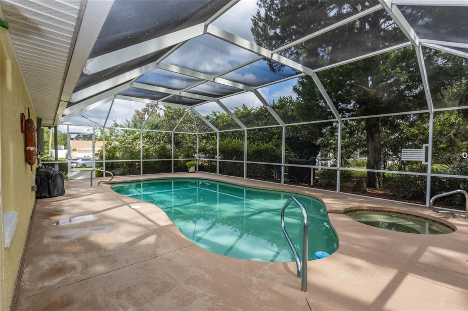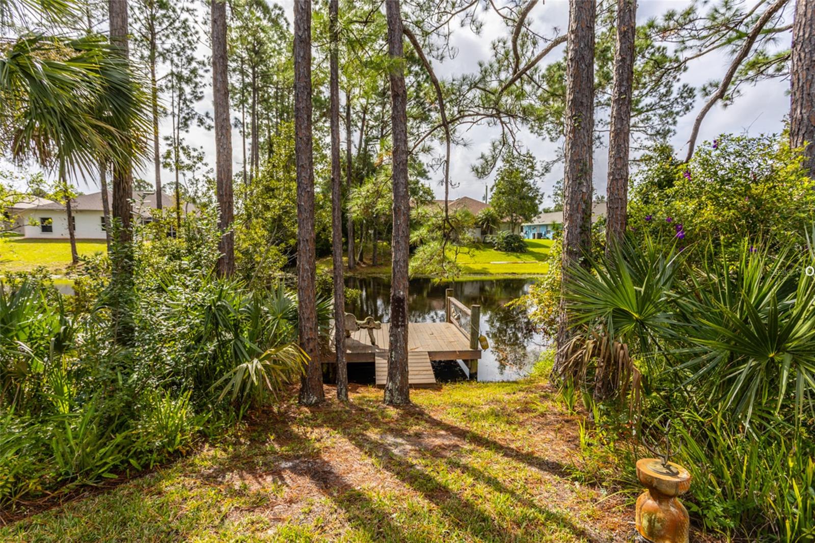Beautifully updated freshwater canal pool home located on a quiet cul-de-sac in the desirable Pine Lakes “W” section of Palm Coast! This light and bright split floor plan features 3 bedrooms, 2 bathrooms, plus a spacious flex room overlooking the dock and canal. The primary suite offers custom his-and-hers closets, while a secondary bedroom includes a built-in Murphy bed for added versatility. Soaring tray and vaulted ceilings enhance the open layout, complemented by an updated kitchen and baths with quartz countertops, backsplash, and built-in appliances. Tile and engineered hardwood floors throughout. Recent updates include a 2024 roof with skylights, 2020 AC and water heater, and a 200-amp Generac generator with a 250-gallon propane tank installed in 2017. The oversized lot features a side-entry garage, an extended driveway accommodating up to 6 cars, a sprinkler system, a screened-in heated pool & covered lanai, making this home a true Florida retreat. So much PRIVACY!