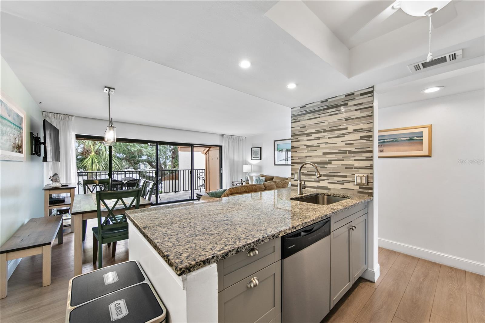 Find safety and security from possible inclement weather near your beach dwelling with a top floor unit with eastern exposure at this wonderful Midnight Cove II unit. Priced extremely competitively on Siesta Key, this nicely renovated unit overlooks the boat traffic and wildlife playground that is the intracoastal waterway that runs between Siesta Key and the mainland. A unique opportunity to capitalize on attractive income while utilizing this third-floor perch to drink in a saltwater breeze when your schedule permits. From your sun deck, a wall of glass sliders connects you to the main living space, flooded with cheerful Florida sunshine. Delight in low maintenance living with the handsome LVP flooring throughout the space. The kitchen offers updated cabinetry, chic stainless appliances and granite counters that shine under the recessed lighting. The dining area offers seating for six while the living area is the perfect place to kick up your feet after a day of Siesta Key adventures. The principal suite is bright and fresh with a beautifully renovated full bath. The second bedroom offers an attractive headboard wall. Guests and families will be quite comfortable with the unique, second full bath allowing for a private space to refresh. With amenities that rival or bests many communities, Midnight Cove II is a vibrant, welcoming place to call home with a marina, tennis courts, barbecue area, fitness room and heated pool. You will also enjoy deeded beach access to Crescent Beach, Siesta Key’s renowned beach with powdery white sands along the Gulf of Mexico. Take a stroll or a trolley to any one of the eateries and shopping opportunities along Siesta Key or venture off island and explore Sarasota and beyond!