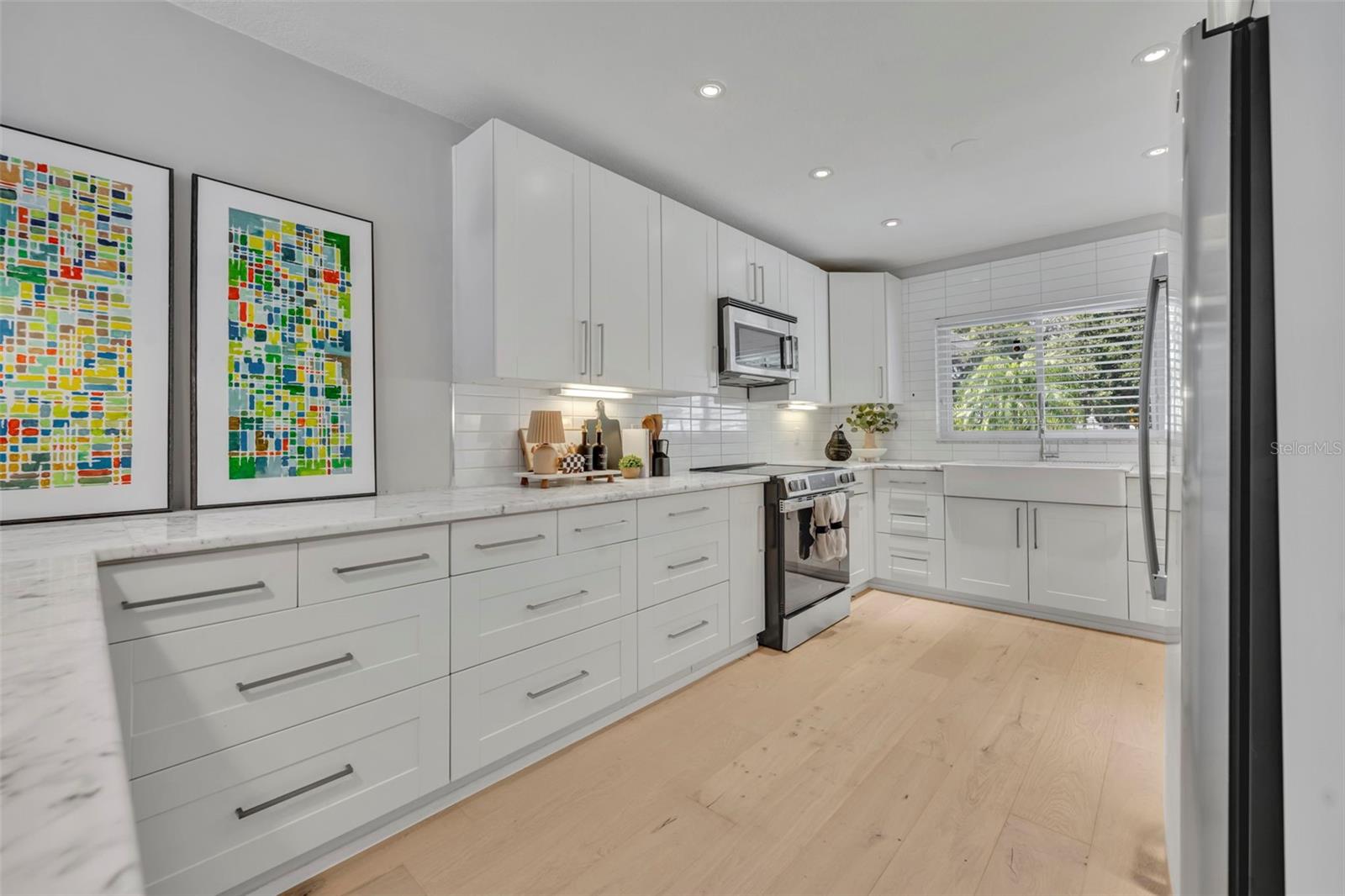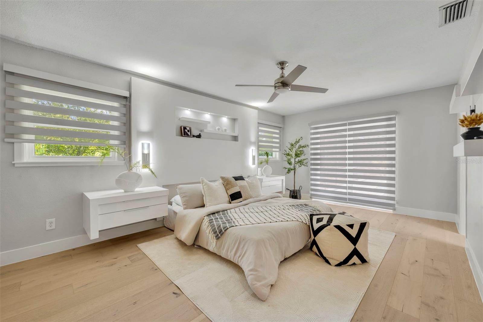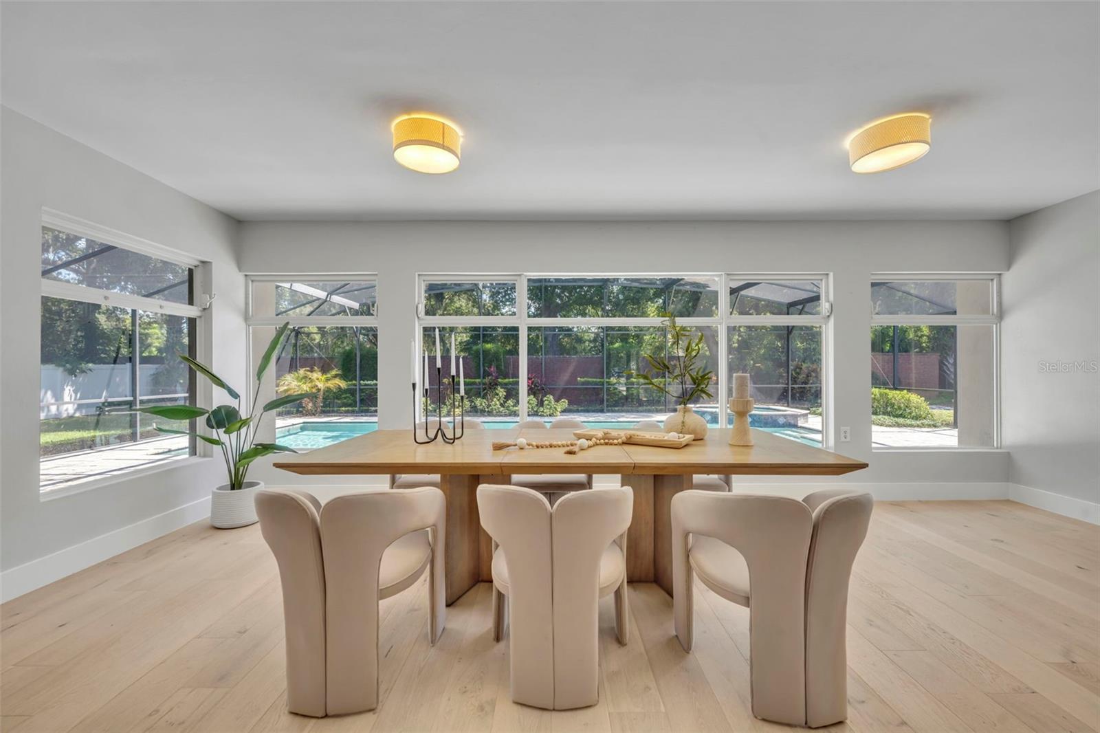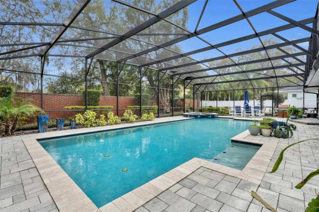 One story, 3-bedroom, 3 bath, RENOVATED home with resort-style backyard and screened lap pool is ready to move in to. Lot Size: 14, 331 Sq Ft / 1, 331 SqM. This home features a modern kitchen with a marble Breakfast bar and marble countertops, an Open floor plan with lots of natural light. New White-Oak wood floors installed throughout in September 2025. The huge primary Bedroom suite with sitting area and private bath, his and hers closets, opens to the screened pool and spa. A Secondary Bedroom Suite with full bath also opens to the pool and heated spa. Surrounded by lush greenery and mature trees this private outdoor space is anchored by a red brick rear wall for extra privacy. With its peaceful setting and prime location, this home is the epitome of Florida living, offering both a serene secluded backyard and easy access to shopping. Walk to Beeman Park located on Lake Sue. Close to Baldwin Park, Winter Park and downtown Orlando. A new water heater and Bosch HVAC system were installed late 2023! HVAC system has 10 year warranty through 2033 and transferrable AC maintenance plan for one year.