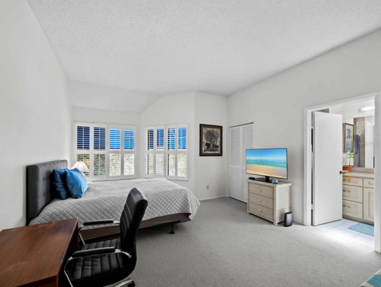 Bathed in natural light, this 2BR, 2.5BA townhome in Fairway Bay at Bay Isles offers an inviting blend of warmth, character, and coastal sophistication. Inside, soaring ceilings and neutral finishes highlight the home’s open design and timeless appeal. The galley kitchen, complete with a charming breakfast nook framed by plantation-shuttered windows, is the perfect place to enjoy morning sunshine. Skylights crown the adjacent dining area, infusing it with light and drama, while the spacious living room - with its fireplace and sliders to the enclosed patio - creates a natural gathering space. From here, a private walk-down provides direct access to Fairway Bay’s resort-style amenities. A guest half-bath adds convenience on the main level. Upstairs, a dramatic catwalk overlooking the dining space and skylights leads to two en-suite bedrooms. Each offers cathedral ceilings, while the primary suite impresses with dual vanities and a spa-like bath featuring a soaking tub beneath an arched skylight. This residence also includes a 2-car garage with a large bonus room—an ideal setting for a workshop, studio, or extra storage. As a resident of Fairway Bay, you will enjoy Deeded Beach Access at the Bay Isles Beach Club, 24-hour gated security, a heated pool, tennis & pickleball courts, fitness center, and all the privileges of Bay Isles living. Optional membership at the Longboat Key Golf & Tennis Country Club and deepwater slips are also available, elevating the lifestyle even further.