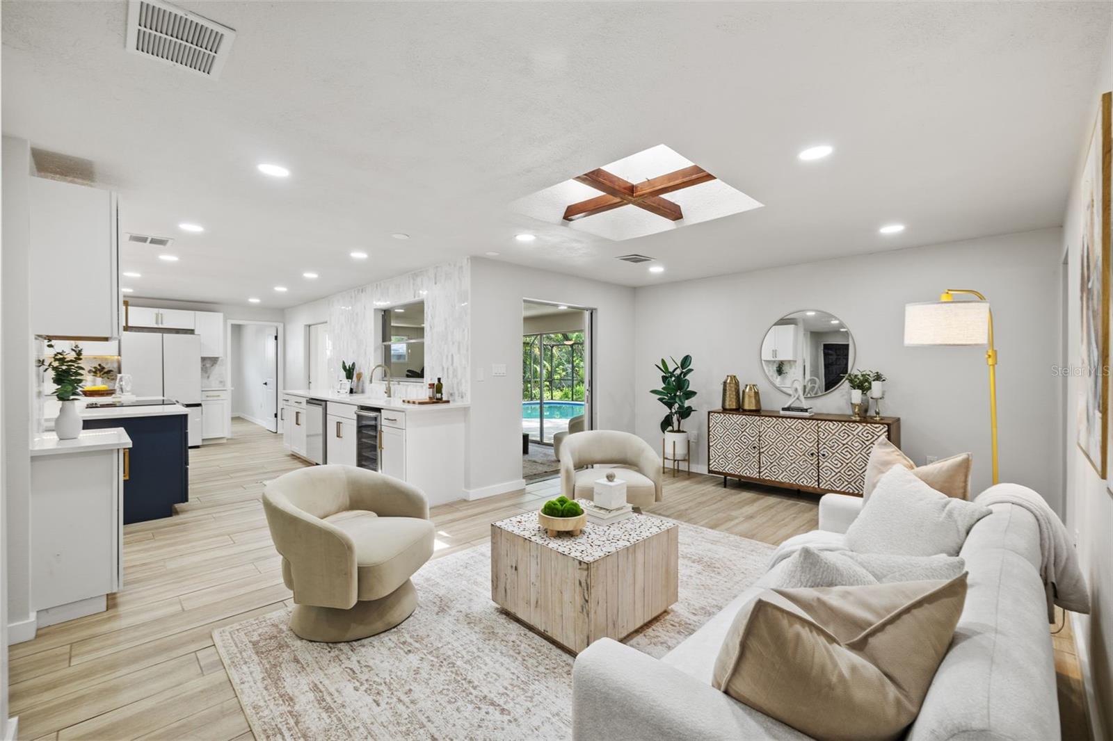BEAUTIFUL POOL HOME situated on a private cul de sac MINUTES from some of Florida's best white sand beaches, this gorgeous home is PERFECT for entertaining with large living spaces that flow into one another and an air conditioned bonus room overlooking the sparkling pool. The kitchen offers ample counter space and cabinetry/storage with quartz countertops, newer appliances, and a wine fridge. On one side of the house you'll find three bedrooms, a substantial laundry room, and a pool bath. On the other side of the house is the owner's suite with en suite bathroom complete with soaking tub, separate shower, and a double vanity. The big ticket items have been handled too! The roof and AC are both BRAND NEW!! This house is turn-key and ready to be your home sweet home!