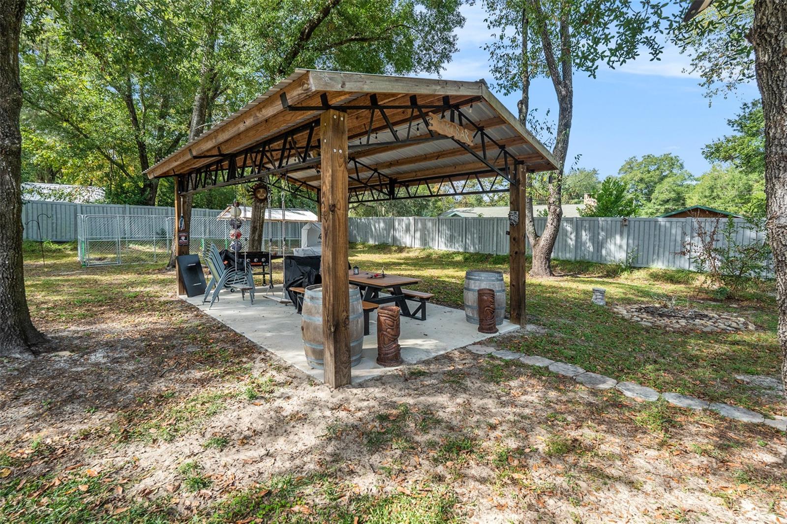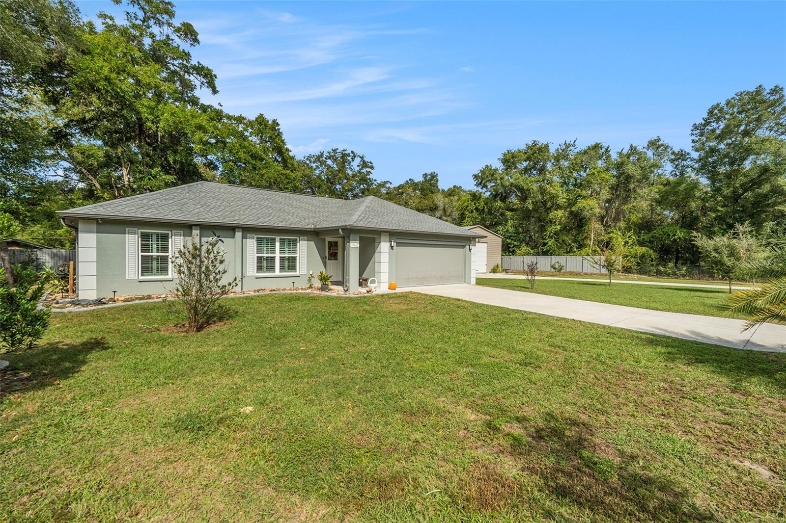 Back on market, no fault of seller. Welcome to 19063 Saint George Drive, Dunnellon, FL — a 2021-built home combining style, function, and space! This 3-bedroom, 2-bath residence sits on a 0.69-acre lot with premium upgrades throughout. The kitchen features granite countertops, upgraded cabinets, and an open layout that flows perfectly into the dining and living areas. Enjoy tile flooring throughout, Leaf Filter gutters for low-maintenance living, and a large fenced yard ideal for privacy or pets. The property also includes a spacious workshop that can fit a large RV, serve as a work or entertainment space, and comes equipped with EV/RV hookups. Located just 0.8 miles from Blue Run of Dunnellon Park, you’ll be minutes from kayaking, nature trails, and the stunning Rainbow River — while still close to shopping, dining, and local conveniences.(Pet on premise Appointment only ) Move-in ready and built for comfort — this home truly has it all!
