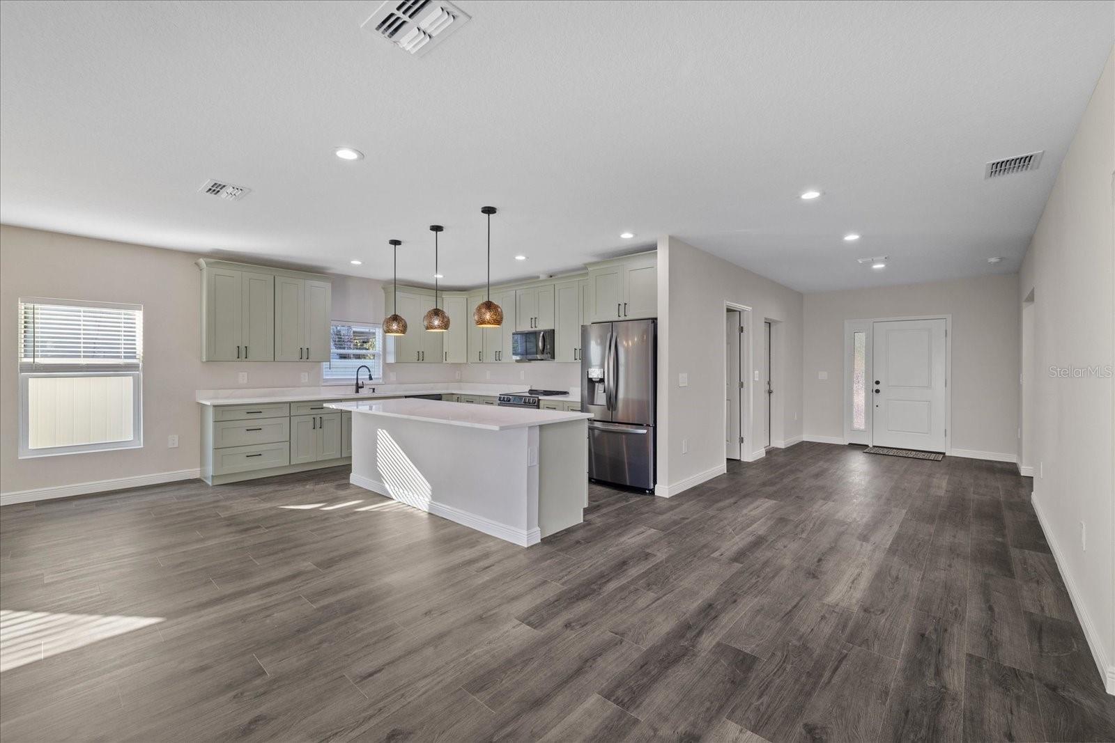 Step into comfort, space, and effortless flow in this beautifully designed 4-bedroom, 2-bath home. From the moment you enter through the welcoming front porch, the expansive foyer sets the tone—open, inviting, and perfect for both daily living and entertaining. At the heart of the home, the generous living room offers abundant natural light and easy connection to the dining area and spacious kitchen. With its large island, ample counter space, and open sightlines, the kitchen is ideal for gatherings, meal prep, or morning coffee rituals. The primary bedroom suite sits privately on its own corner of the home, featuring a large walk-in closet and direct access to a well-appointed bathroom. Three additional bedrooms—each nicely sized—provide flexibility for family, guests, or home-office needs. Convenience lives here: a dedicated utility room, a central hall bath, and thoughtful room placements make everyday routines smooth and stress-free. Step outdoors to enjoy a covered patio perfect for grilling, relaxing, or watching the sunset. The carport offers sheltered parking with quick access into the home. With its smart split-bedroom layout, multiple gathering spaces, and welcoming outdoor areas, this home delivers the perfect blend of comfort, style, and function. All that’s missing is you... Call now and make it your own!