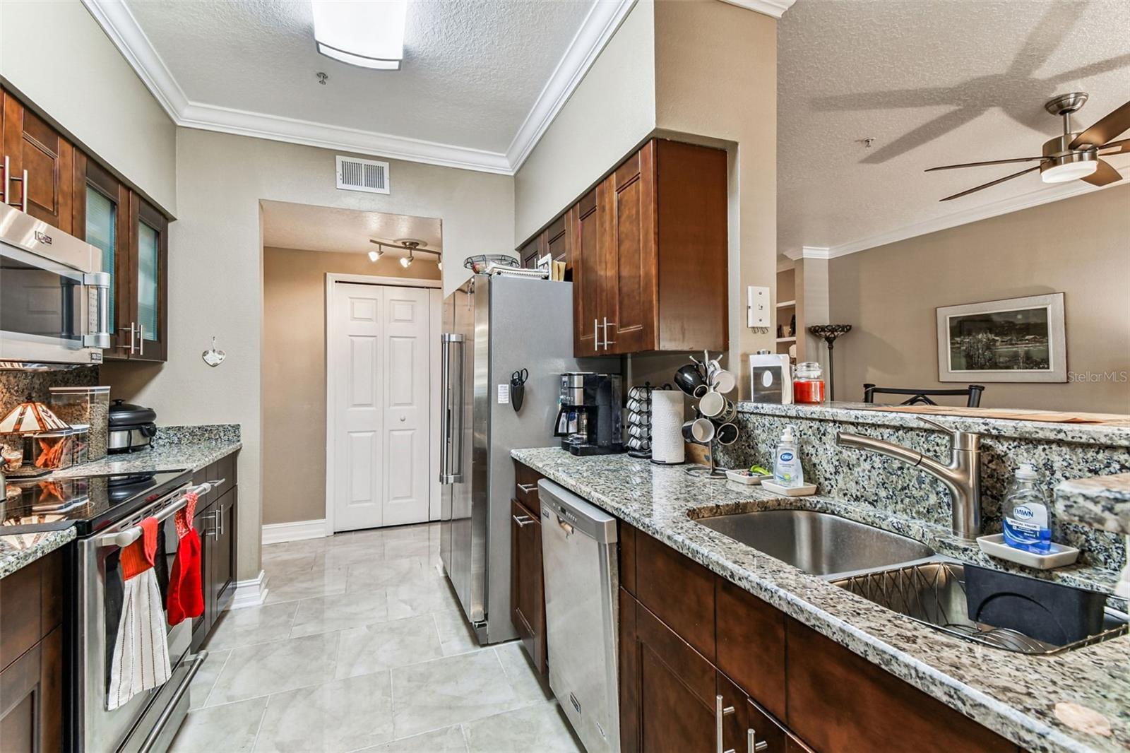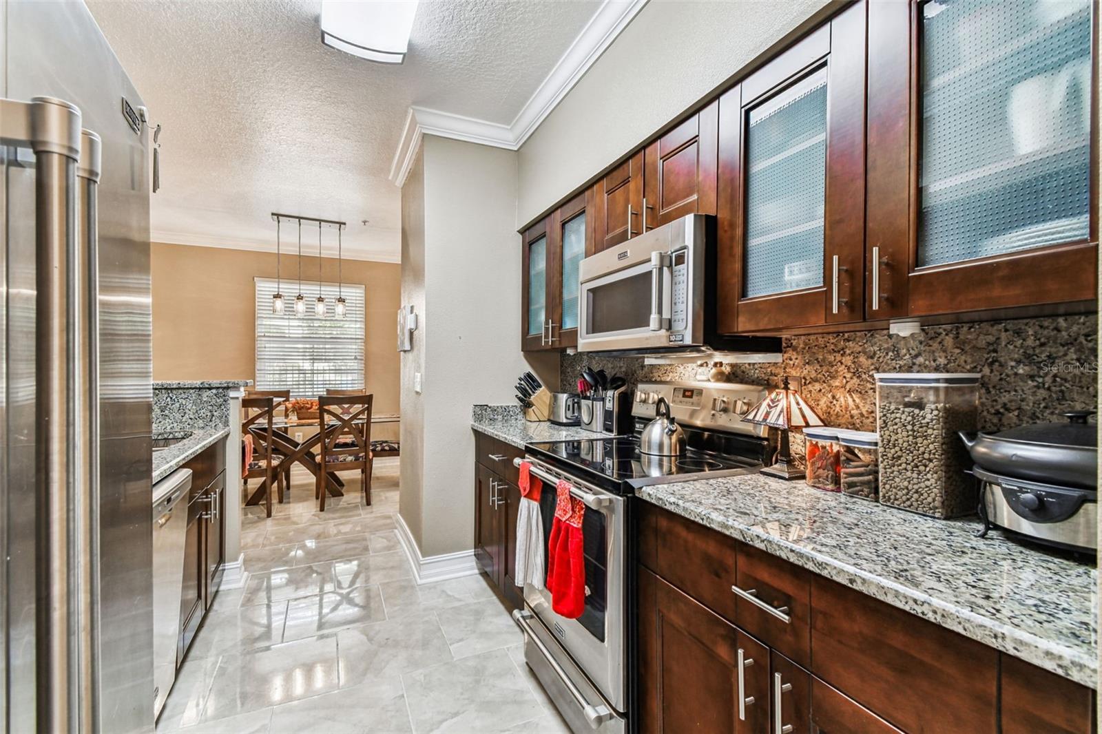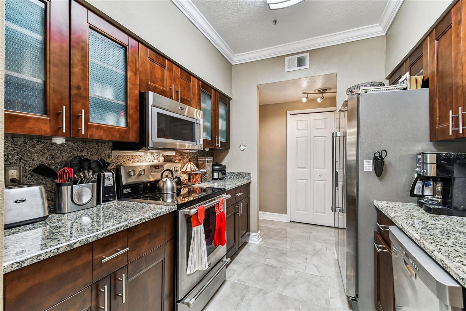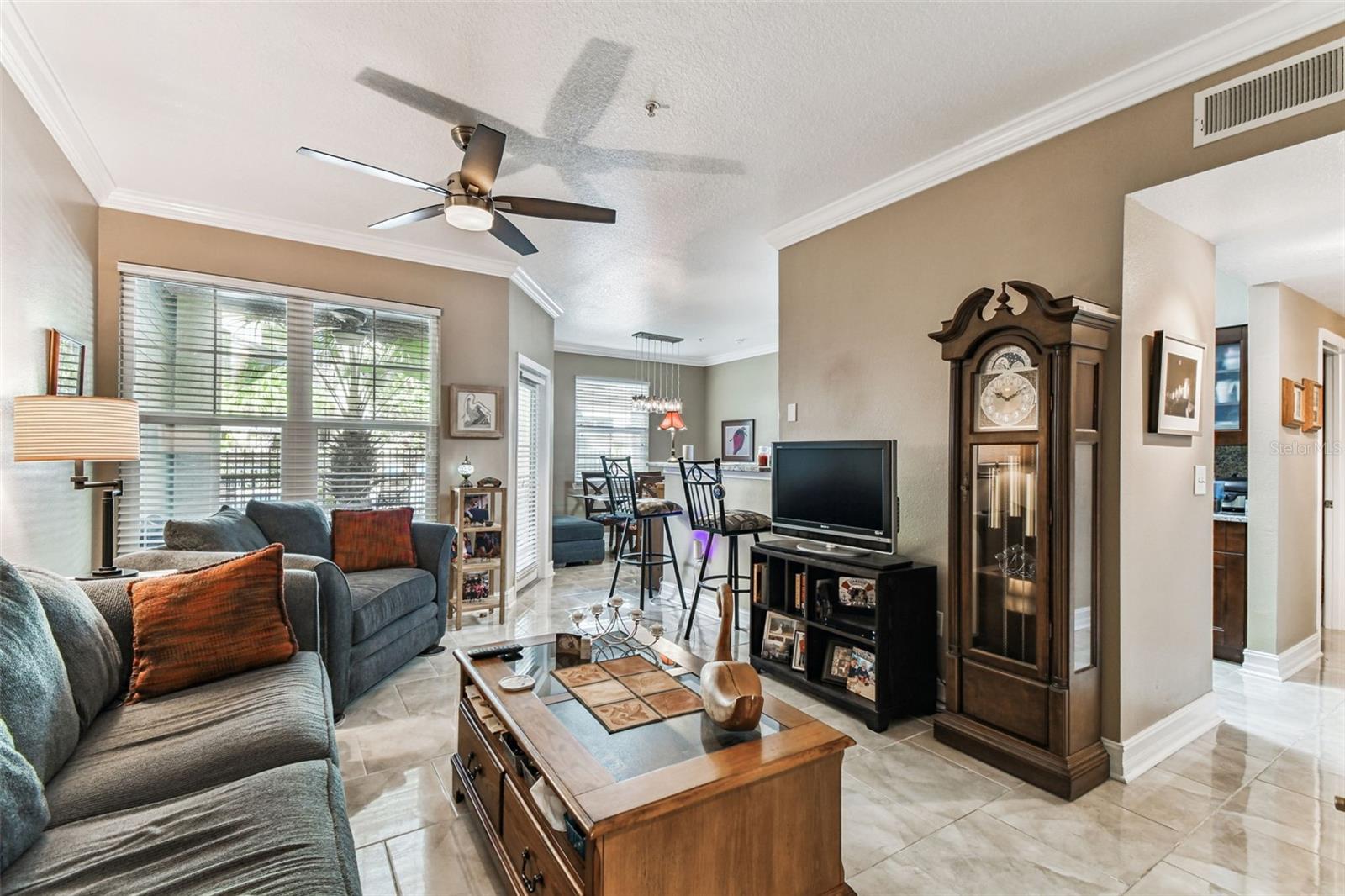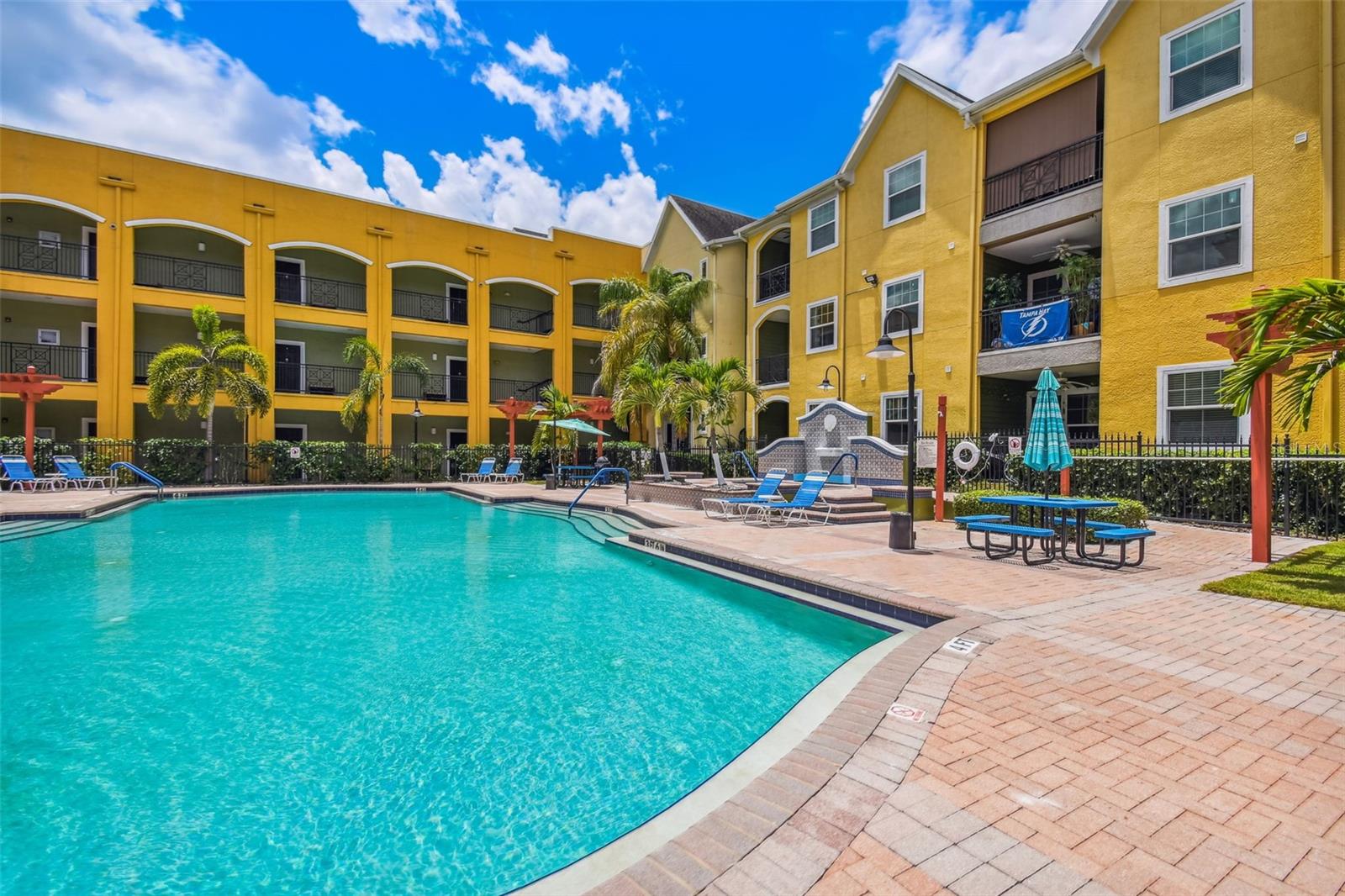 **MOTIVATED SELLER** Move in Before the Holidays!! Welcome to Unit 10104** Located in the heart of Tampa within The Quarter at Ybor…A RESORT STYLE COMMUNITY and you don’t want to miss this unique unit!! This FULLY REMODELED, FIRST-FLOOR CONDO offers rare POOL VIEWS and a PRIVATE COVERED PATIO complete with a roll-down shade for privacy. Inside, you’ll notice thoughtful upgrades throughout—CROWN MOLDING, STAGGERED TILE FLOORS throughout, TALL BASEBOARDS, and a warm neutral color palette. The entryway includes CUSTOM WOOD SHELVING, while the KITCHEN features ALL-WOOD CABINETRY with frosted glass accents, GRANITE COUNTERTOPS, STAINLESS STEEL APPLIANCES, UNDERMOUNT SINK, and a BREAKFAST BAR. Elegant GLASS PENDANT LIGHTING highlights the dining space, which gives direct access to the patio. The LAUNDRY ROOM is impressively outfitted with upper and lower cabinetry, GRANITE COUNTERS, and a WASHER AND DRYER. The PRIMARY SUITE includes a cozy sitting nook, a WALK-IN CLOSET WITH CUSTOM BUILT-INS, and a beautifully renovated EN-SUITE BATH featuring a GRANITE DOUBLE VANITY, FRAMELESS GLASS WALK-IN SHOWER, and FLOOR-TO-CEILING TILE with designer accents and niches. The 2ND BEDROOM also offers POOL VIEWS, a ceiling fan, and another CUSTOM WALK-IN CLOSET. The GUEST BATH mirrors the quality finishes of the rest of the home, with a GRANITE-TOPPED VANITY and a fully tiled TUB/SHOWER COMBO. Located IN THE QUARTER AT YBOR, in the heart of Historic Ybor City. The community has two pools, a spa, a pool table, charcoal grills, multiple courtyards, walking trails, a private movie theatre, a 24-hour fitness center, and a market store. Walking distance to restaurants, bars, breweries, art galleries, Saturday farmer's market, and shopping on 7th Ave. Two blocks from the Free trolley to Channelside, downtown, hockey arena, and Riverwalk, 20 minutes to Tampa International Airport Every inch of this condo has been carefully upgraded—A RARE FIND IN THE QUARTER AT YBOR.