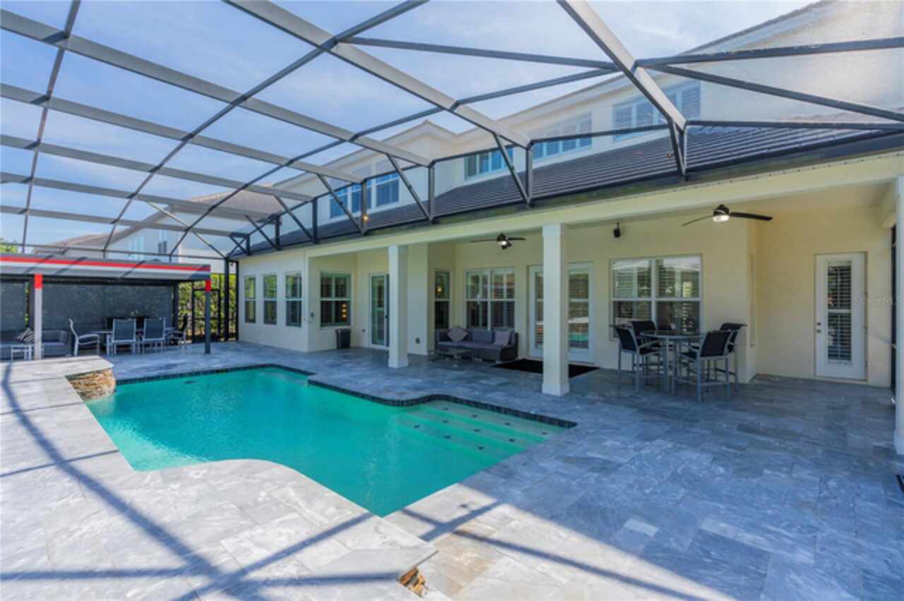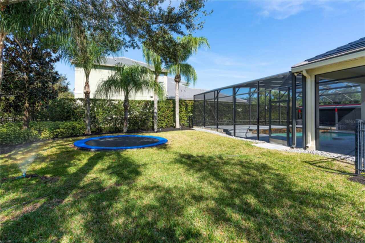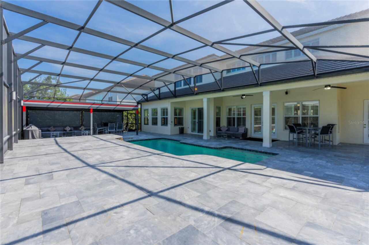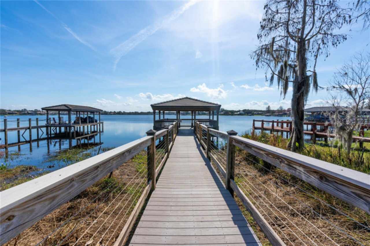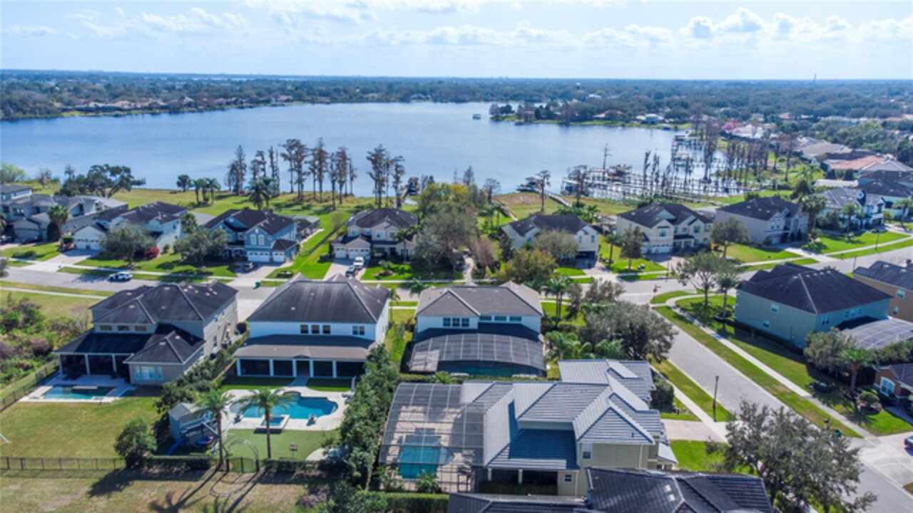 One or more photo(s) has been virtually staged. Amazing Location with Designer Upgrades & Resort-Style Living! Welcome to this true gem in sought-after Gated Community of Lake Roberts Landing, offering over $291, 000 in upgrades and luxury features inside and out. Perfectly positioned on a large corner lot directly across from the community dock, you can relax on your front porch with tranquil, partial views of Lake Roberts. Step inside through a 21-foot grand foyer, where a striking custom staircase with tempered glass and stainless-steel railings sets the tone. Soaring ceilings, elegant plantation shutters, and a whole-home Sonos sound system create a refined atmosphere. The light-filled living room opens through French doors to your private resort-style pool and lanai, while a spacious loft upstairs offers flexibility for a game room, office, or media retreat. The chef’s kitchen is the heart of the home, featuring 42” shaker cabinetry with crown molding, granite countertops, a large island with wrap-around breakfast bar, stacked stone backsplash, and premium stainless appliances. A guest suite with full bath is conveniently located on the first floor, while upstairs you’ll find three more bedrooms and a luxurious primary retreat with double doors, gray laminate flooring, a custom walk-in closet, and spa-like en suite. Designed for entertaining, the backyard feels like your own private oasis: a 42-foot covered lanai with slate tile, fenced yard with lush 10-foot hedges, and an Italian-designed pergola with electric retractable roof and screens. The sparkling pool, built-in trampoline, and outdoor living space make it ideal for gatherings or quiet relaxation. Peace of mind comes with a newer tile roof and dual AC systems. All of this in an unbeatable location near Winter Garden Village, Historic Downtown Winter Garden, Oakland, the Harvest District, shopping, dining, theme parks, hospitals, and major expressways. Big-town convenience meets small-town charm! This one-of-a-kind home must be seen in person to be fully appreciated—schedule your private tour today!