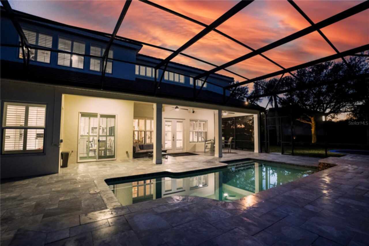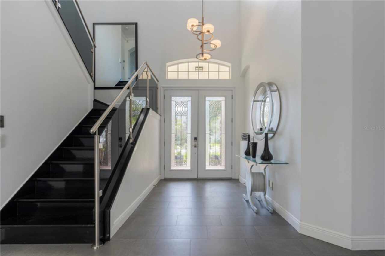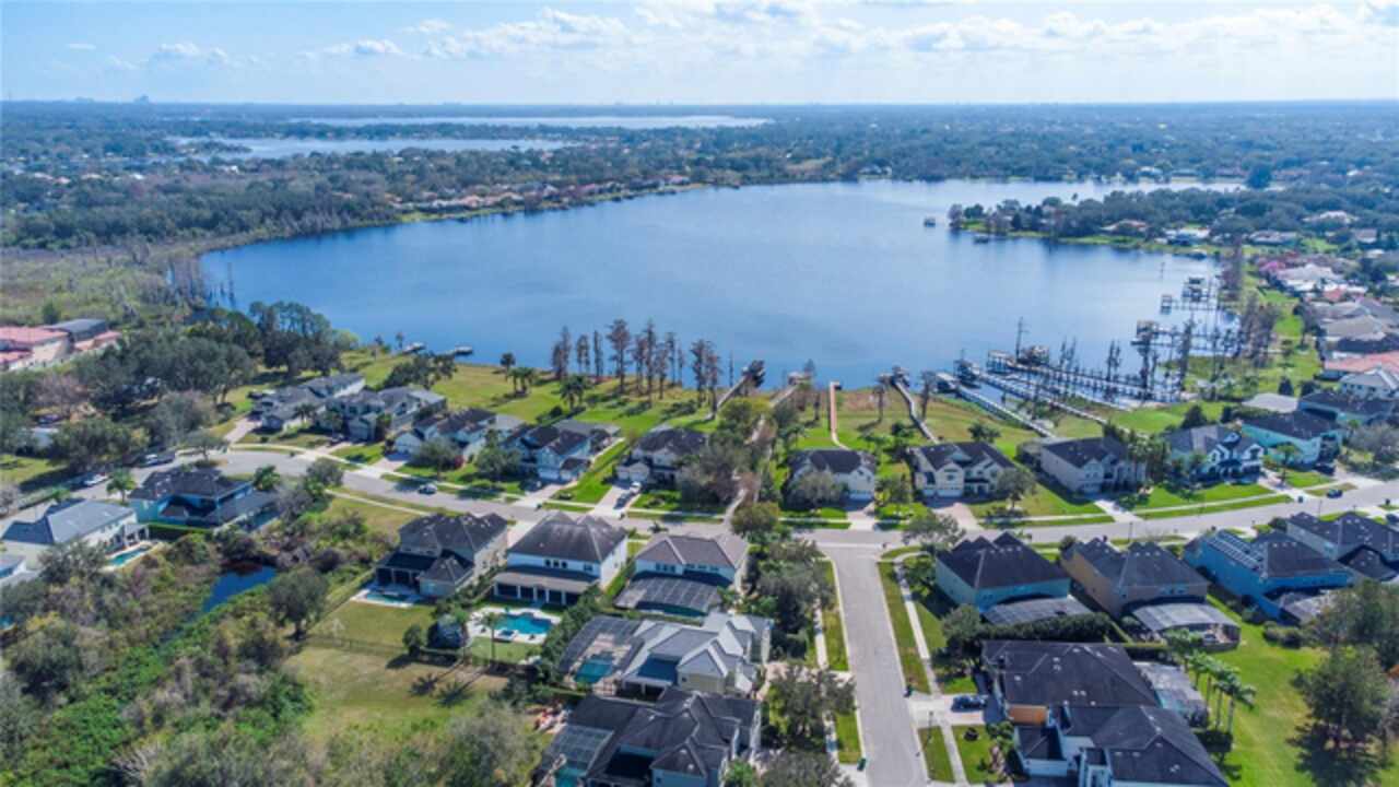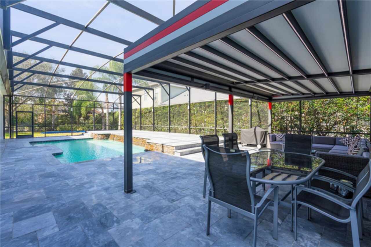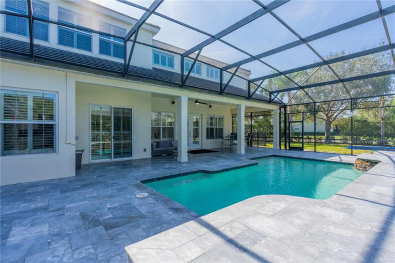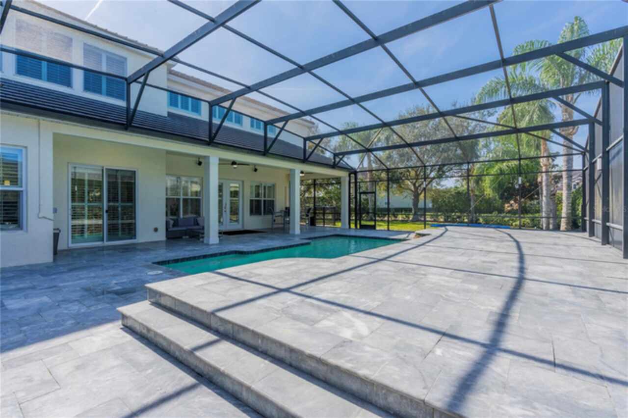 One or more photo(s) has been virtually staged. Amazing Location with Designer Upgrades & Resort-Style Living! Welcome to this true gem in sought-after Gated Community of Lake Roberts Landing, offering over $291, 000 in upgrades and luxury features inside and out. Perfectly positioned on a large corner lot directly across from the community dock, you can relax on your front porch with tranquil, partial views of Lake Roberts. Step inside through a 21-foot grand foyer, where a striking custom staircase with tempered glass and stainless-steel railings sets the tone. Soaring ceilings, elegant plantation shutters, and a whole-home Sonos sound system create a refined atmosphere. The light-filled living room opens through French doors to your private resort-style pool and lanai, while a spacious loft upstairs offers flexibility for a game room, office, or media retreat. The chef’s kitchen is the heart of the home, featuring 42” shaker cabinetry with crown molding, granite countertops, a large island with wrap-around breakfast bar, stacked stone backsplash, and premium stainless appliances. A guest suite with full bath is conveniently located on the first floor, while upstairs you’ll find three more bedrooms and a luxurious primary retreat with double doors, gray laminate flooring, a custom walk-in closet, and spa-like en suite. Designed for entertaining, the backyard feels like your own private oasis: a 42-foot covered lanai with slate tile, fenced yard with lush 10-foot hedges, and an Italian-designed pergola with electric retractable roof and screens. The sparkling pool, built-in trampoline, and outdoor living space make it ideal for gatherings or quiet relaxation. Peace of mind comes with a newer tile roof and dual AC systems. All of this in an unbeatable location near Winter Garden Village, Historic Downtown Winter Garden, Oakland, the Harvest District, shopping, dining, theme parks, hospitals, and major expressways. Big-town convenience meets small-town charm! This one-of-a-kind home must be seen in person to be fully appreciated—schedule your private tour today!