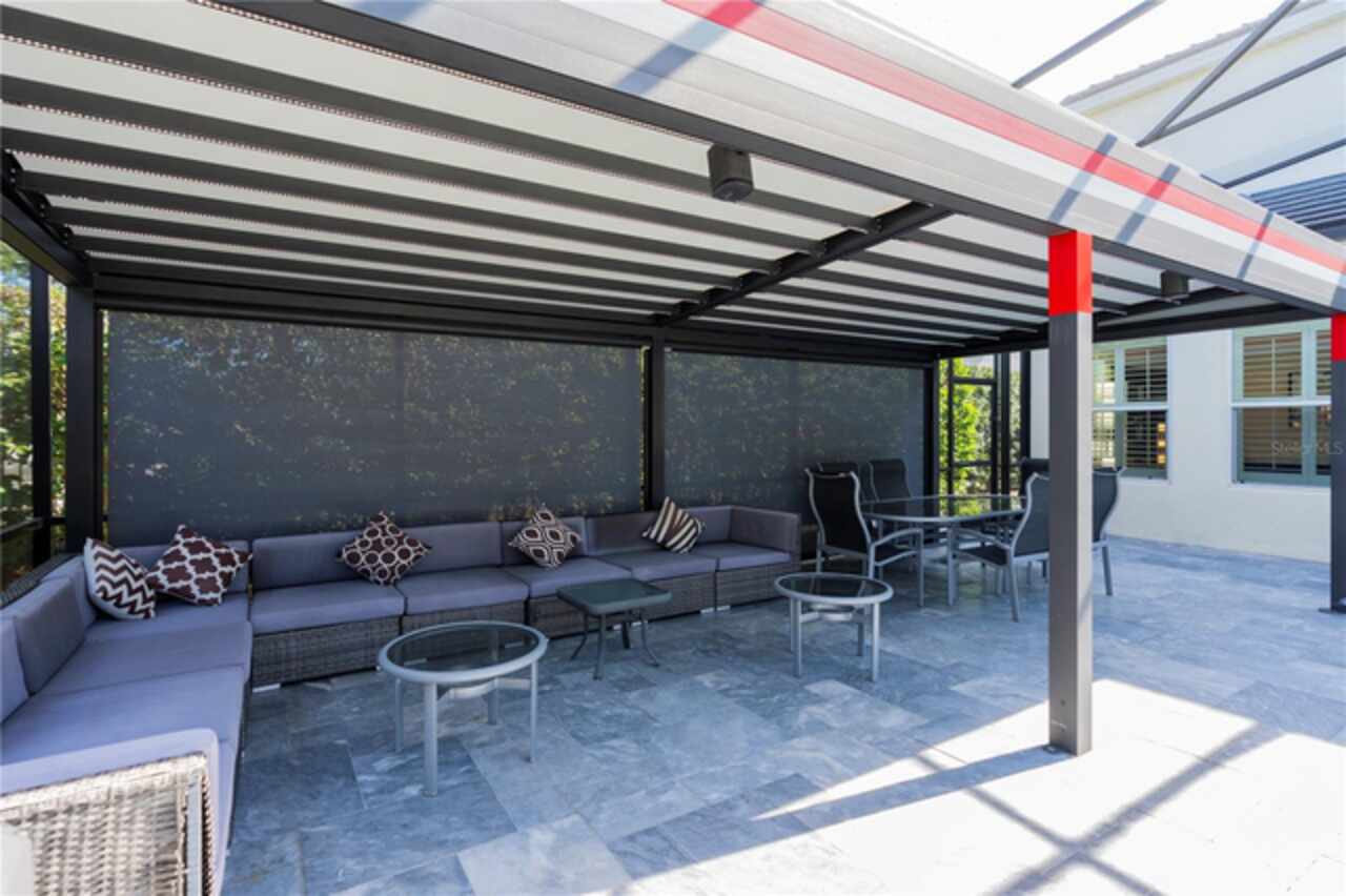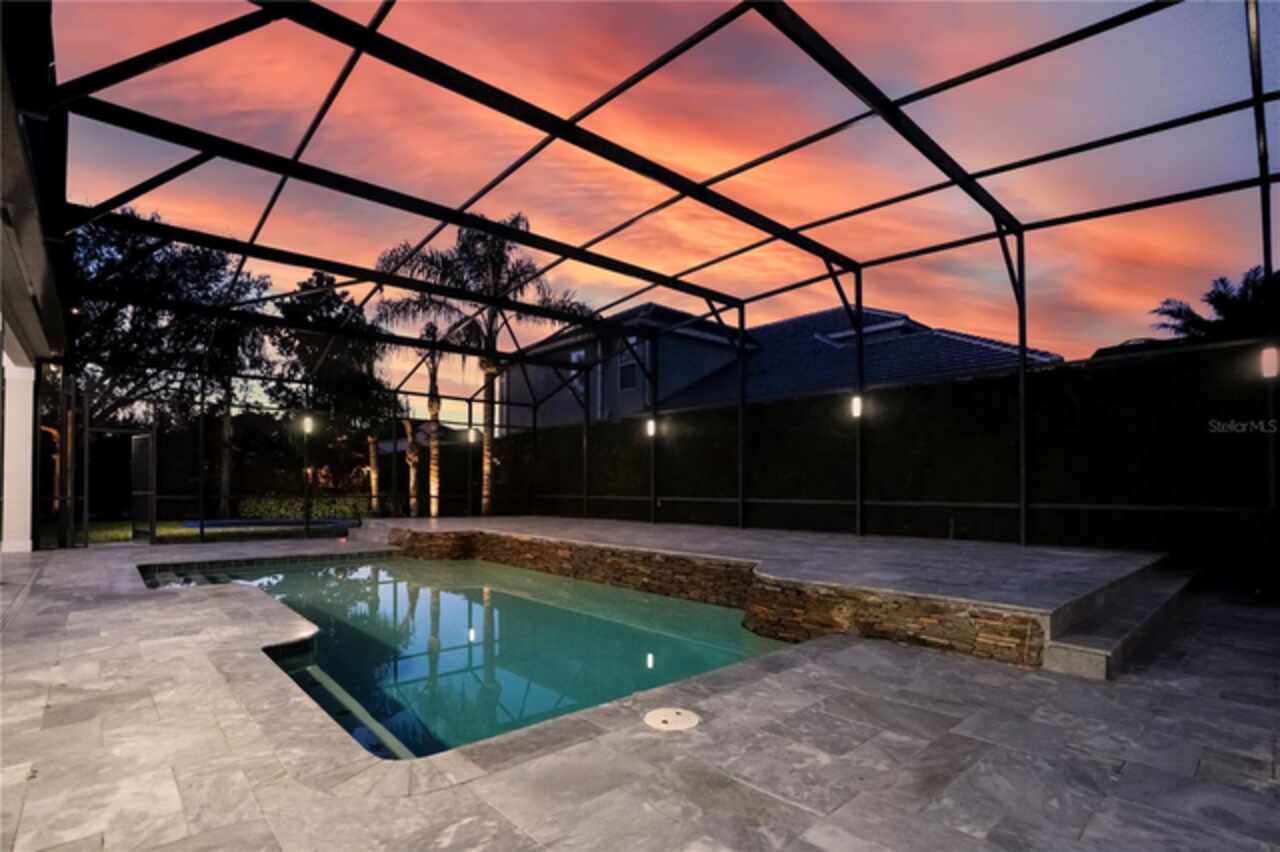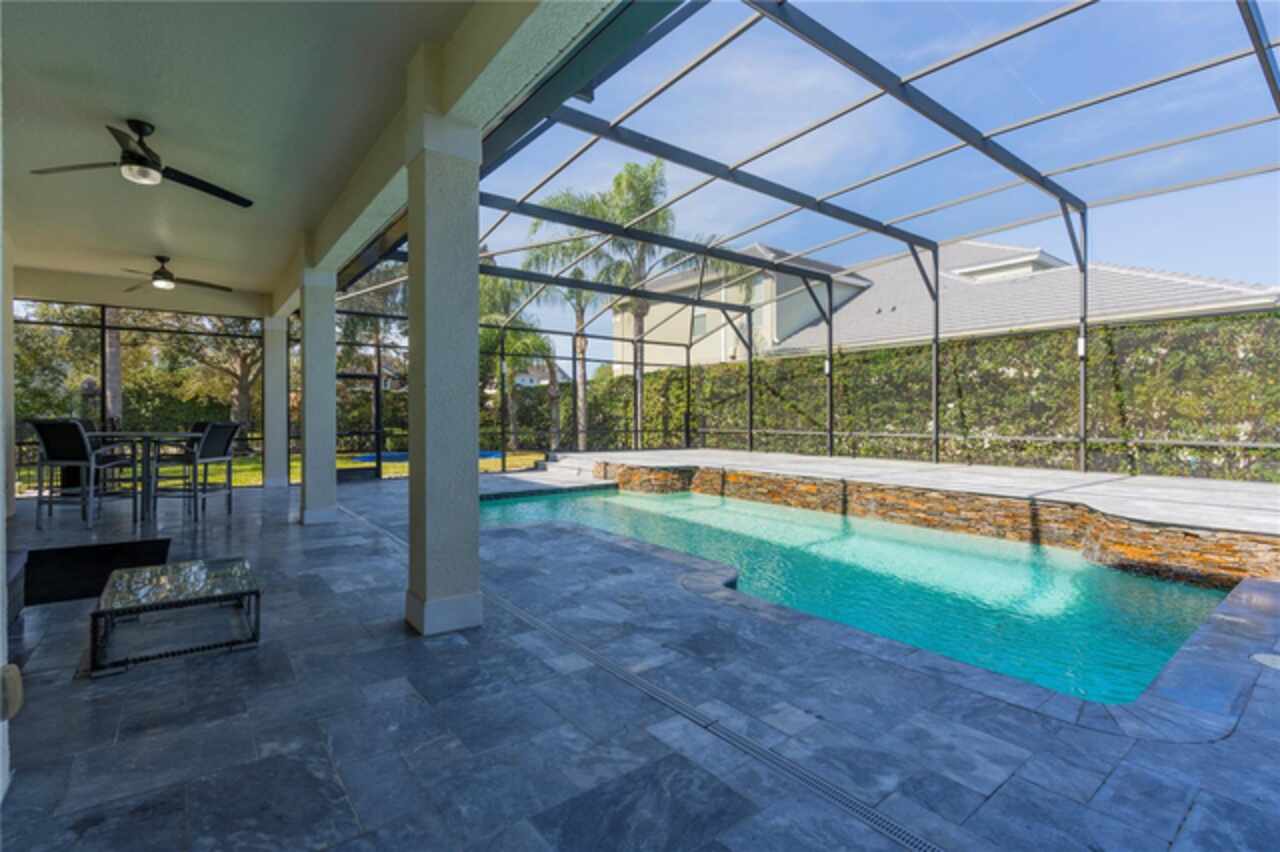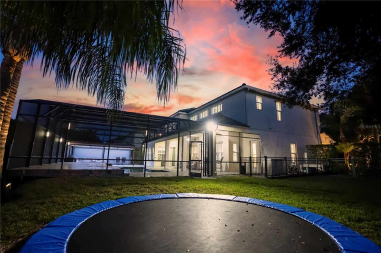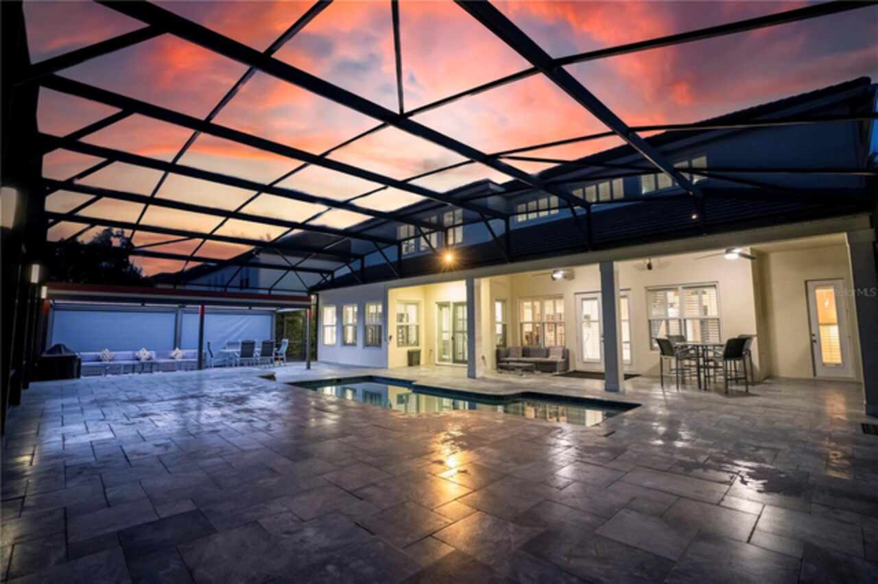 One or more photo(s) has been virtually staged. Amazing Location with Designer Upgrades & Resort-Style Living! Welcome to this true gem in sought-after Gated Community of Lake Roberts Landing, offering over $291, 000 in upgrades and luxury features inside and out. Perfectly positioned on a large corner lot directly across from the community dock, you can relax on your front porch with tranquil, partial views of Lake Roberts. Step inside through a 21-foot grand foyer, where a striking custom staircase with tempered glass and stainless-steel railings sets the tone. Soaring ceilings, elegant plantation shutters, and a whole-home Sonos sound system create a refined atmosphere. The light-filled living room opens through French doors to your private resort-style pool and lanai, while a spacious loft upstairs offers flexibility for a game room, office, or media retreat. The chef’s kitchen is the heart of the home, featuring 42” shaker cabinetry with crown molding, granite countertops, a large island with wrap-around breakfast bar, stacked stone backsplash, and premium stainless appliances. A guest suite with full bath is conveniently located on the first floor, while upstairs you’ll find three more bedrooms and a luxurious primary retreat with double doors, gray laminate flooring, a custom walk-in closet, and spa-like en suite. Designed for entertaining, the backyard feels like your own private oasis: a 42-foot covered lanai with slate tile, fenced yard with lush 10-foot hedges, and an Italian-designed pergola with electric retractable roof and screens. The sparkling pool, built-in trampoline, and outdoor living space make it ideal for gatherings or quiet relaxation. Peace of mind comes with a newer tile roof and dual AC systems. All of this in an unbeatable location near Winter Garden Village, Historic Downtown Winter Garden, Oakland, the Harvest District, shopping, dining, theme parks, hospitals, and major expressways. Big-town convenience meets small-town charm! This one-of-a-kind home must be seen in person to be fully appreciated—schedule your private tour today!