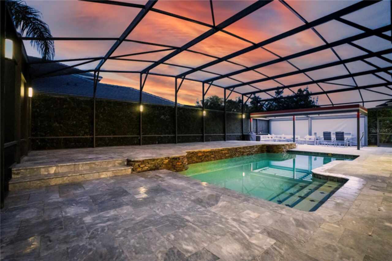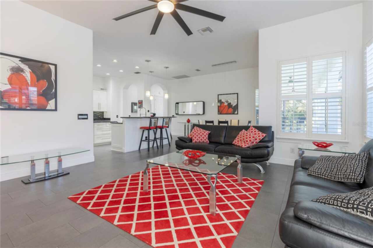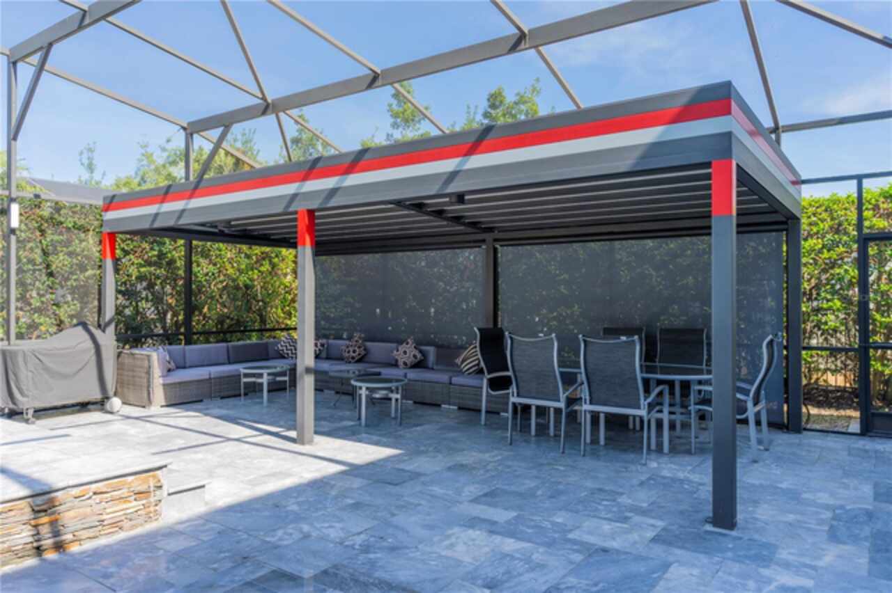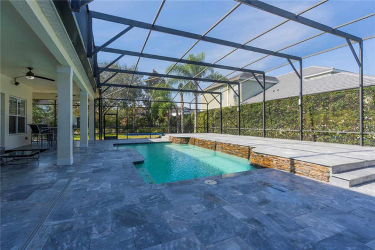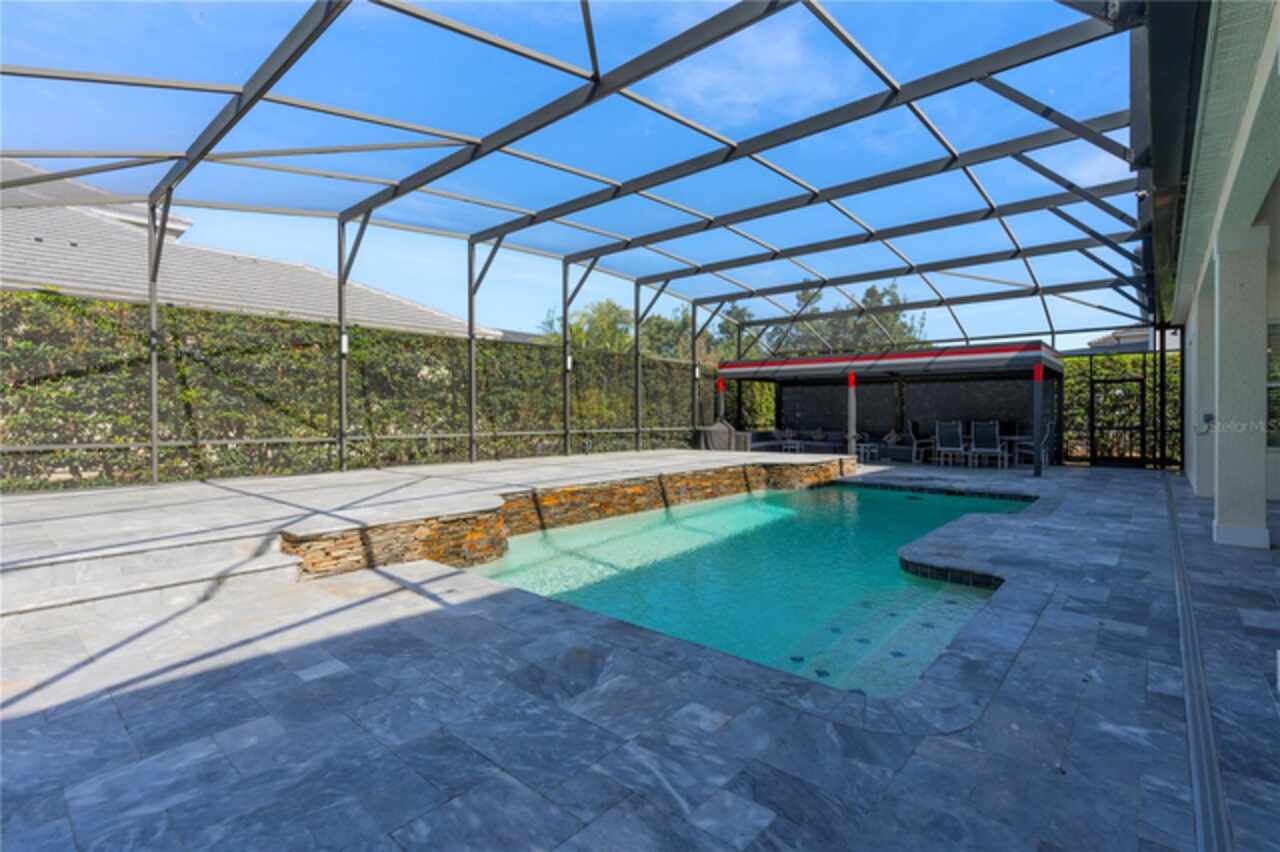 One or more photo(s) has been virtually staged. Amazing Location with Designer Upgrades & Resort-Style Living! Welcome to this true gem in sought-after Gated Community of Lake Roberts Landing, offering over $291, 000 in upgrades and luxury features inside and out. Perfectly positioned on a large corner lot directly across from the community dock, you can relax on your front porch with tranquil, partial views of Lake Roberts. Step inside through a 21-foot grand foyer, where a striking custom staircase with tempered glass and stainless-steel railings sets the tone. Soaring ceilings, elegant plantation shutters, and a whole-home Sonos sound system create a refined atmosphere. The light-filled living room opens through French doors to your private resort-style pool and lanai, while a spacious loft upstairs offers flexibility for a game room, office, or media retreat. The chef’s kitchen is the heart of the home, featuring 42” shaker cabinetry with crown molding, granite countertops, a large island with wrap-around breakfast bar, stacked stone backsplash, and premium stainless appliances. A guest suite with full bath is conveniently located on the first floor, while upstairs you’ll find three more bedrooms and a luxurious primary retreat with double doors, gray laminate flooring, a custom walk-in closet, and spa-like en suite. Designed for entertaining, the backyard feels like your own private oasis: a 42-foot covered lanai with slate tile, fenced yard with lush 10-foot hedges, and an Italian-designed pergola with electric retractable roof and screens. The sparkling pool, built-in trampoline, and outdoor living space make it ideal for gatherings or quiet relaxation. Peace of mind comes with a newer tile roof and dual AC systems. All of this in an unbeatable location near Winter Garden Village, Historic Downtown Winter Garden, Oakland, the Harvest District, shopping, dining, theme parks, hospitals, and major expressways. Big-town convenience meets small-town charm! This one-of-a-kind home must be seen in person to be fully appreciated—schedule your private tour today!