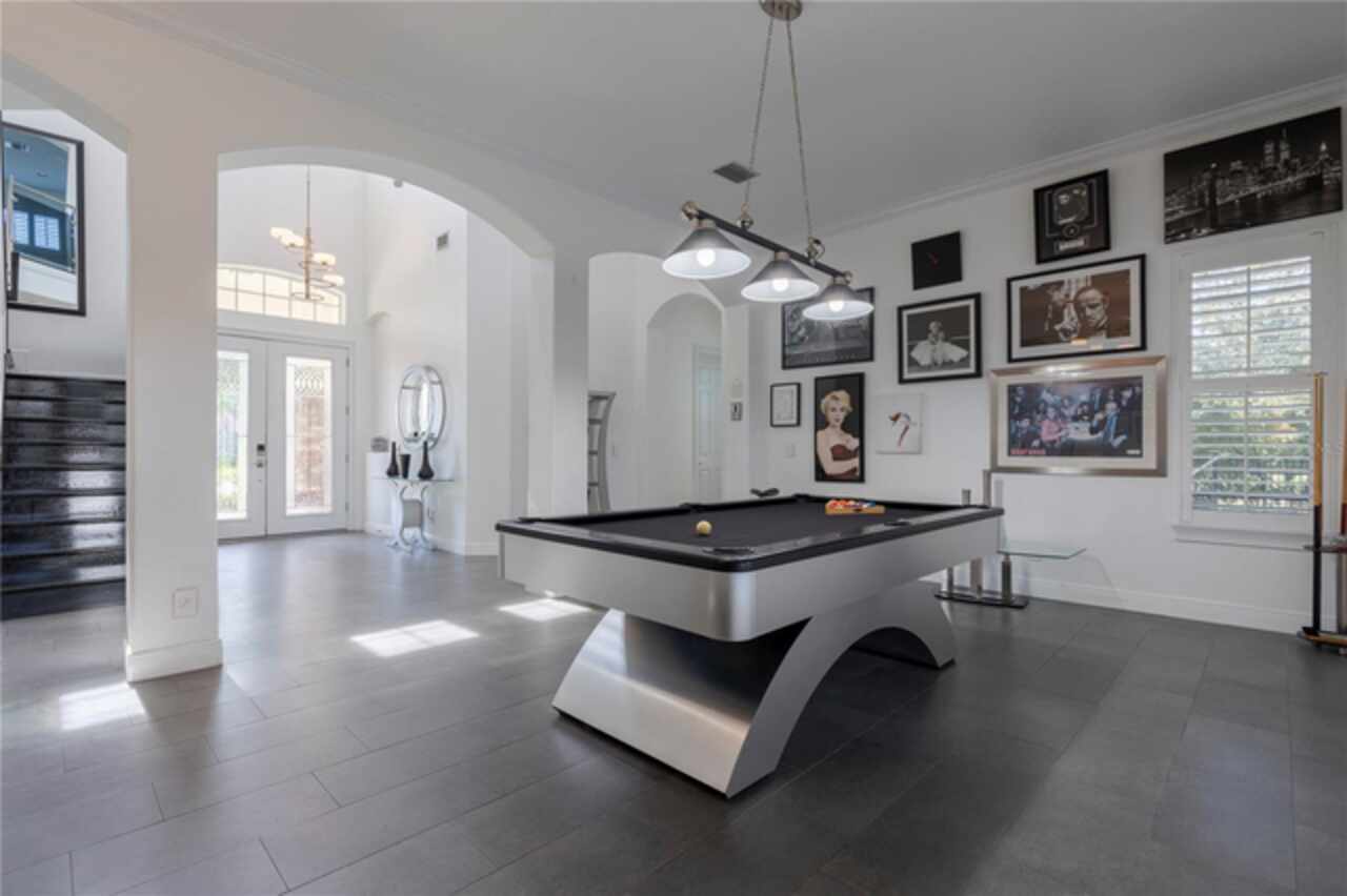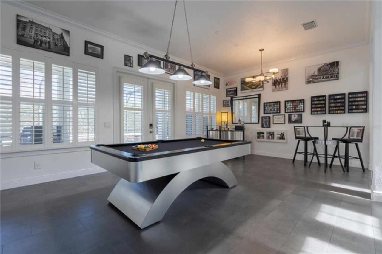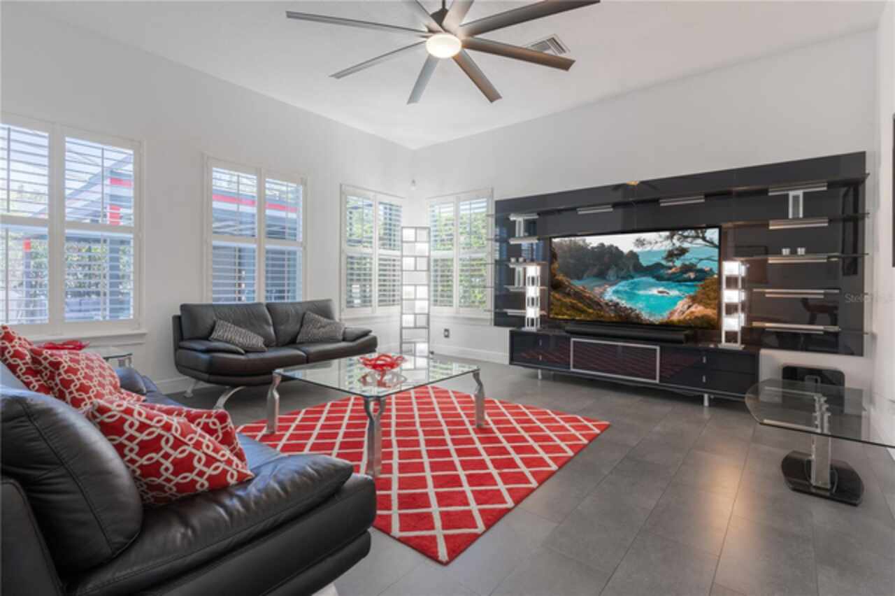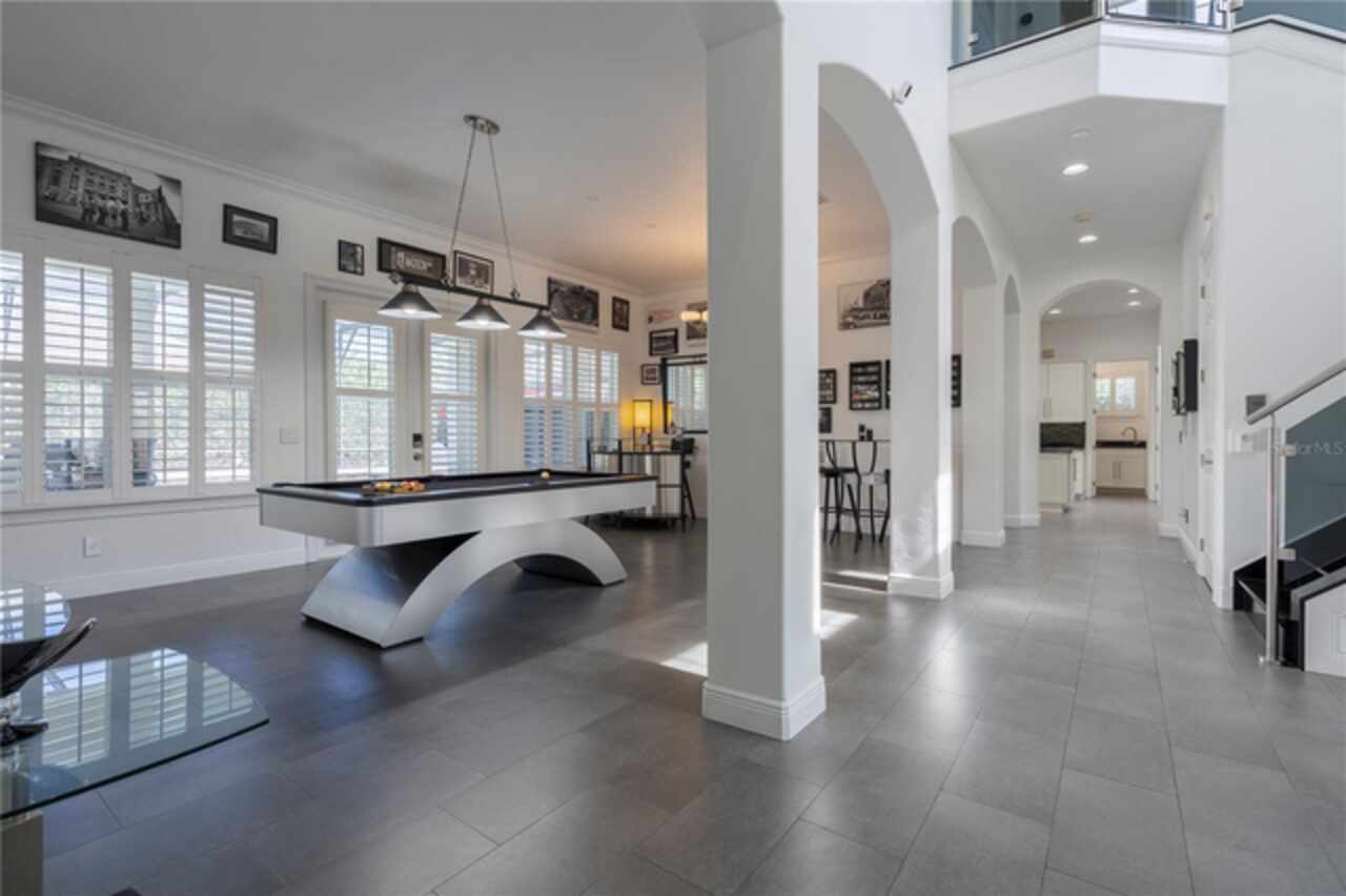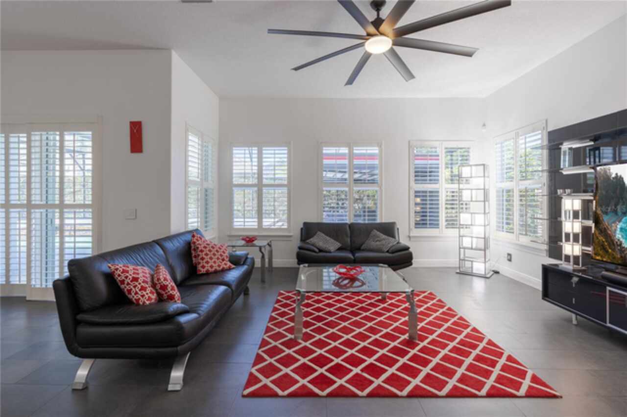 One or more photo(s) has been virtually staged. Amazing Location with Designer Upgrades & Resort-Style Living! Welcome to this true gem in sought-after Gated Community of Lake Roberts Landing, offering over $291, 000 in upgrades and luxury features inside and out. Perfectly positioned on a large corner lot directly across from the community dock, you can relax on your front porch with tranquil, partial views of Lake Roberts. Step inside through a 21-foot grand foyer, where a striking custom staircase with tempered glass and stainless-steel railings sets the tone. Soaring ceilings, elegant plantation shutters, and a whole-home Sonos sound system create a refined atmosphere. The light-filled living room opens through French doors to your private resort-style pool and lanai, while a spacious loft upstairs offers flexibility for a game room, office, or media retreat. The chef’s kitchen is the heart of the home, featuring 42” shaker cabinetry with crown molding, granite countertops, a large island with wrap-around breakfast bar, stacked stone backsplash, and premium stainless appliances. A guest suite with full bath is conveniently located on the first floor, while upstairs you’ll find three more bedrooms and a luxurious primary retreat with double doors, gray laminate flooring, a custom walk-in closet, and spa-like en suite. Designed for entertaining, the backyard feels like your own private oasis: a 42-foot covered lanai with slate tile, fenced yard with lush 10-foot hedges, and an Italian-designed pergola with electric retractable roof and screens. The sparkling pool, built-in trampoline, and outdoor living space make it ideal for gatherings or quiet relaxation. Peace of mind comes with a newer tile roof and dual AC systems. All of this in an unbeatable location near Winter Garden Village, Historic Downtown Winter Garden, Oakland, the Harvest District, shopping, dining, theme parks, hospitals, and major expressways. Big-town convenience meets small-town charm! This one-of-a-kind home must be seen in person to be fully appreciated—schedule your private tour today!