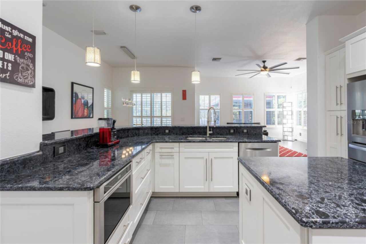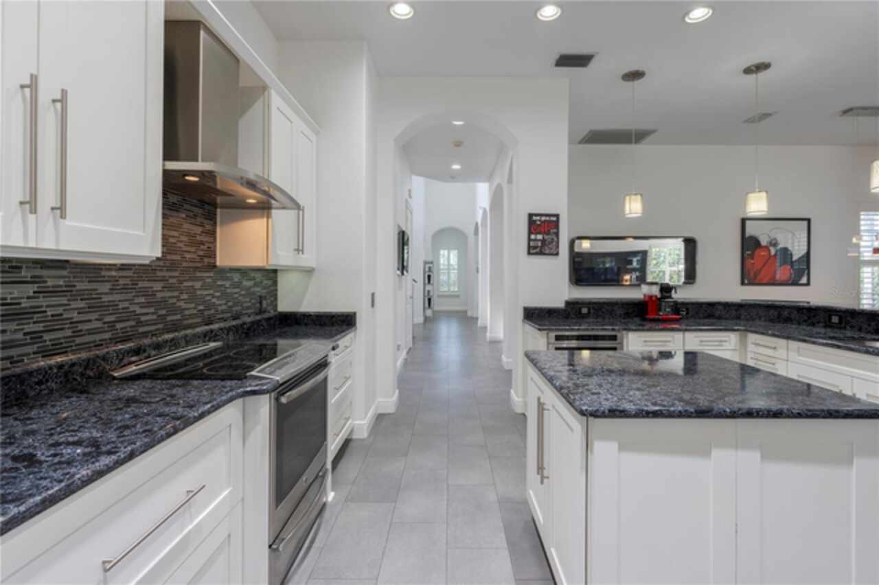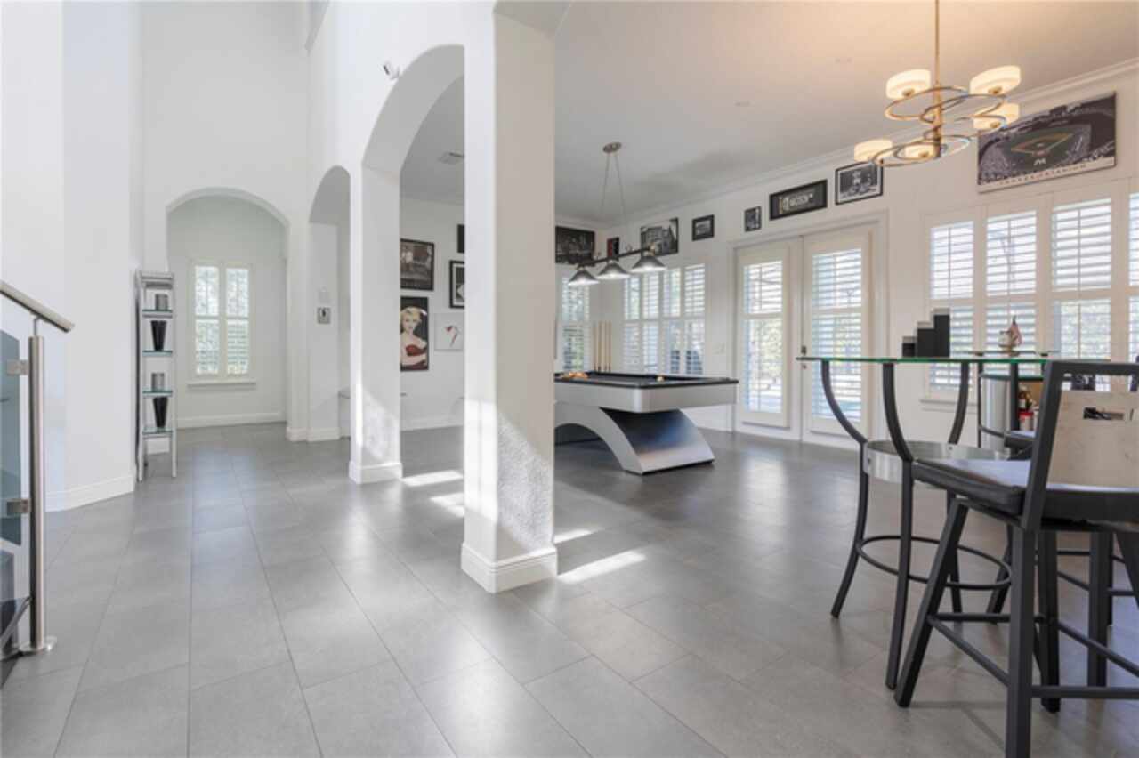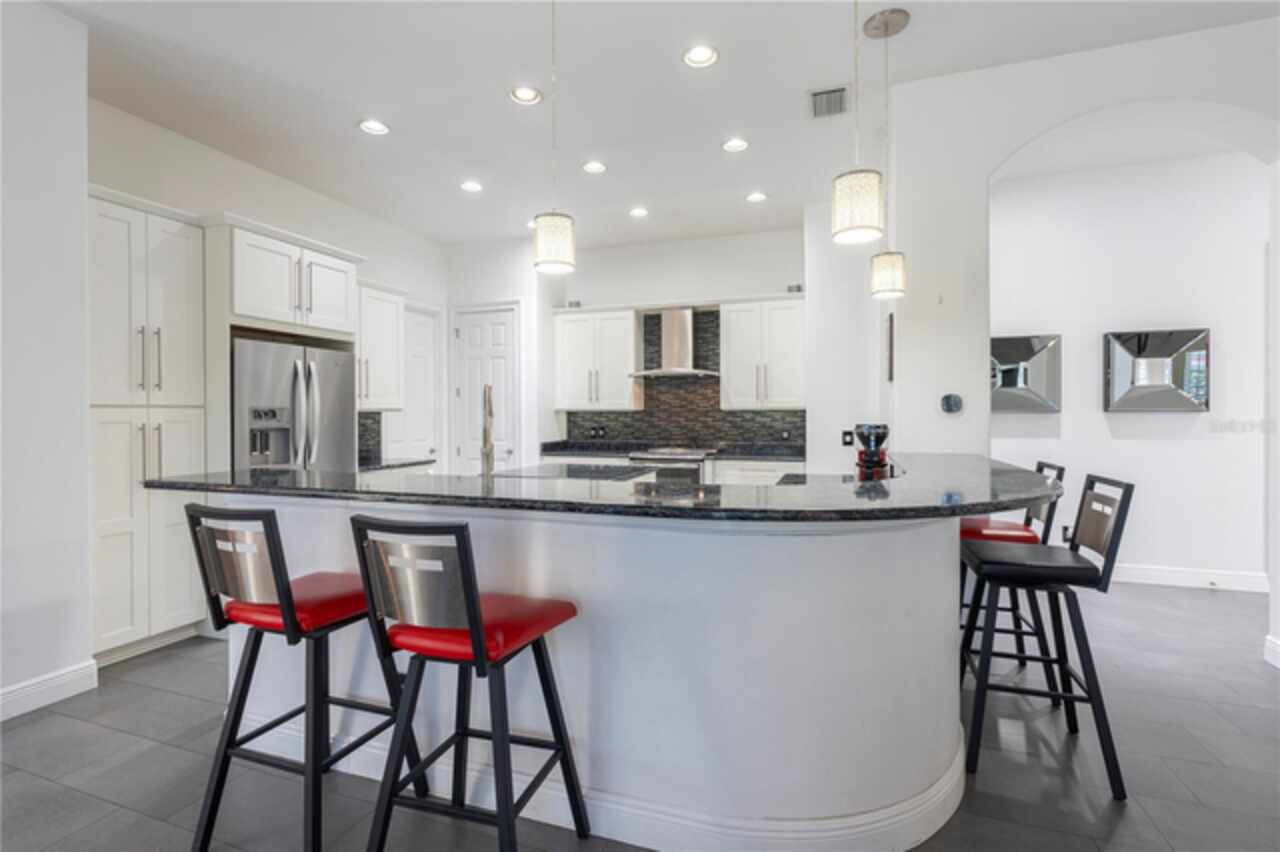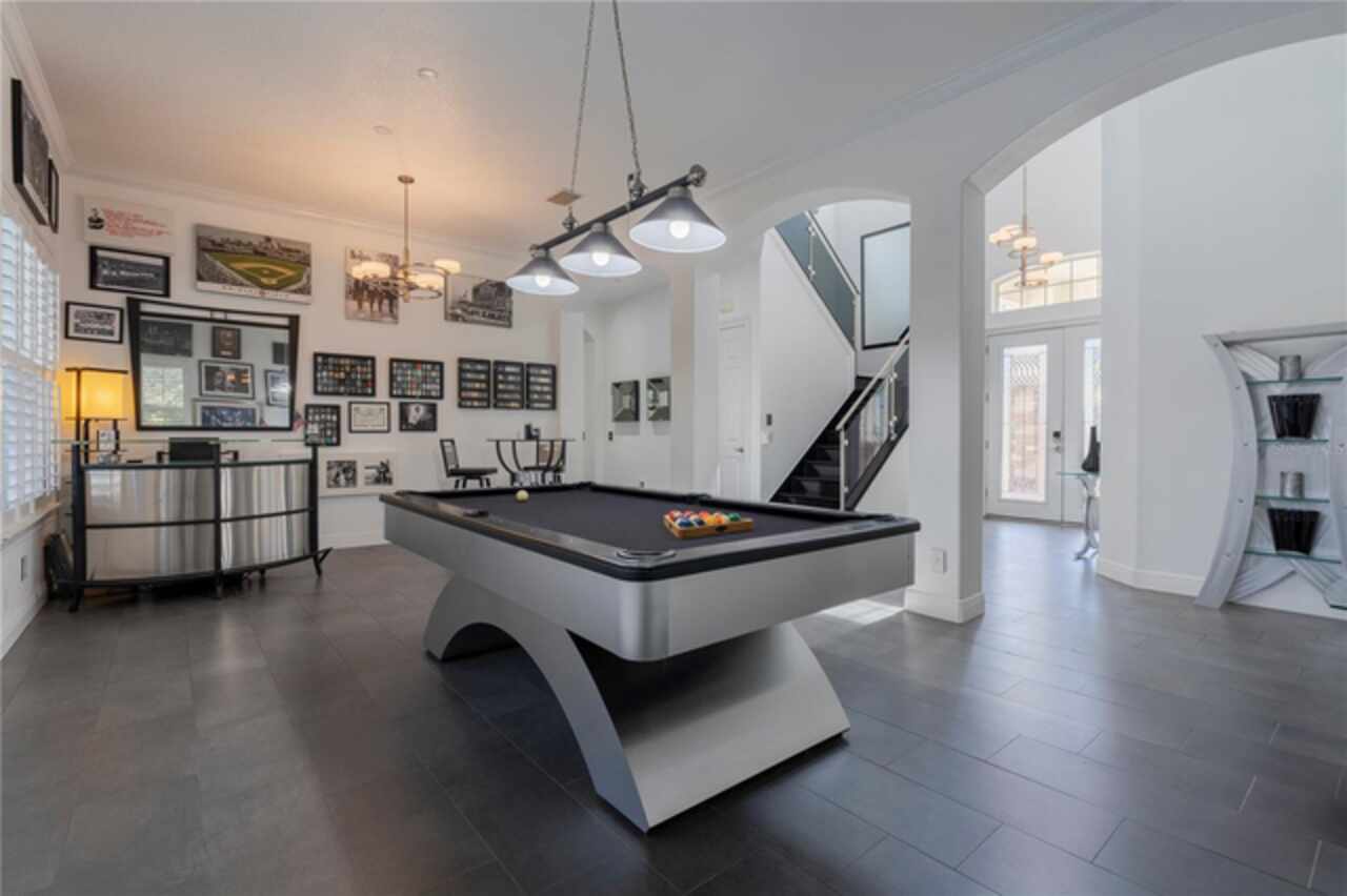 One or more photo(s) has been virtually staged. Amazing Location with Designer Upgrades & Resort-Style Living! Welcome to this true gem in sought-after Gated Community of Lake Roberts Landing, offering over $291, 000 in upgrades and luxury features inside and out. Perfectly positioned on a large corner lot directly across from the community dock, you can relax on your front porch with tranquil, partial views of Lake Roberts. Step inside through a 21-foot grand foyer, where a striking custom staircase with tempered glass and stainless-steel railings sets the tone. Soaring ceilings, elegant plantation shutters, and a whole-home Sonos sound system create a refined atmosphere. The light-filled living room opens through French doors to your private resort-style pool and lanai, while a spacious loft upstairs offers flexibility for a game room, office, or media retreat. The chef’s kitchen is the heart of the home, featuring 42” shaker cabinetry with crown molding, granite countertops, a large island with wrap-around breakfast bar, stacked stone backsplash, and premium stainless appliances. A guest suite with full bath is conveniently located on the first floor, while upstairs you’ll find three more bedrooms and a luxurious primary retreat with double doors, gray laminate flooring, a custom walk-in closet, and spa-like en suite. Designed for entertaining, the backyard feels like your own private oasis: a 42-foot covered lanai with slate tile, fenced yard with lush 10-foot hedges, and an Italian-designed pergola with electric retractable roof and screens. The sparkling pool, built-in trampoline, and outdoor living space make it ideal for gatherings or quiet relaxation. Peace of mind comes with a newer tile roof and dual AC systems. All of this in an unbeatable location near Winter Garden Village, Historic Downtown Winter Garden, Oakland, the Harvest District, shopping, dining, theme parks, hospitals, and major expressways. Big-town convenience meets small-town charm! This one-of-a-kind home must be seen in person to be fully appreciated—schedule your private tour today!