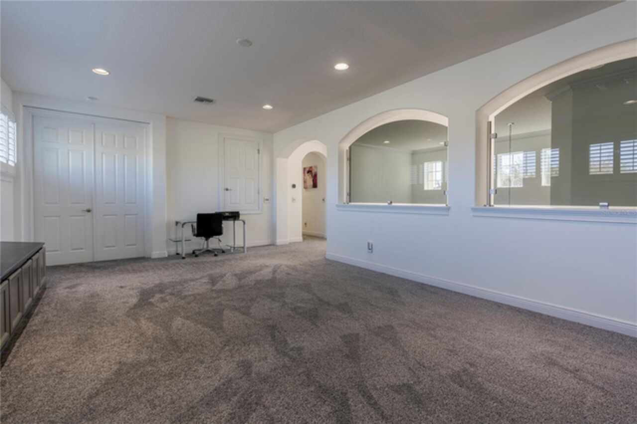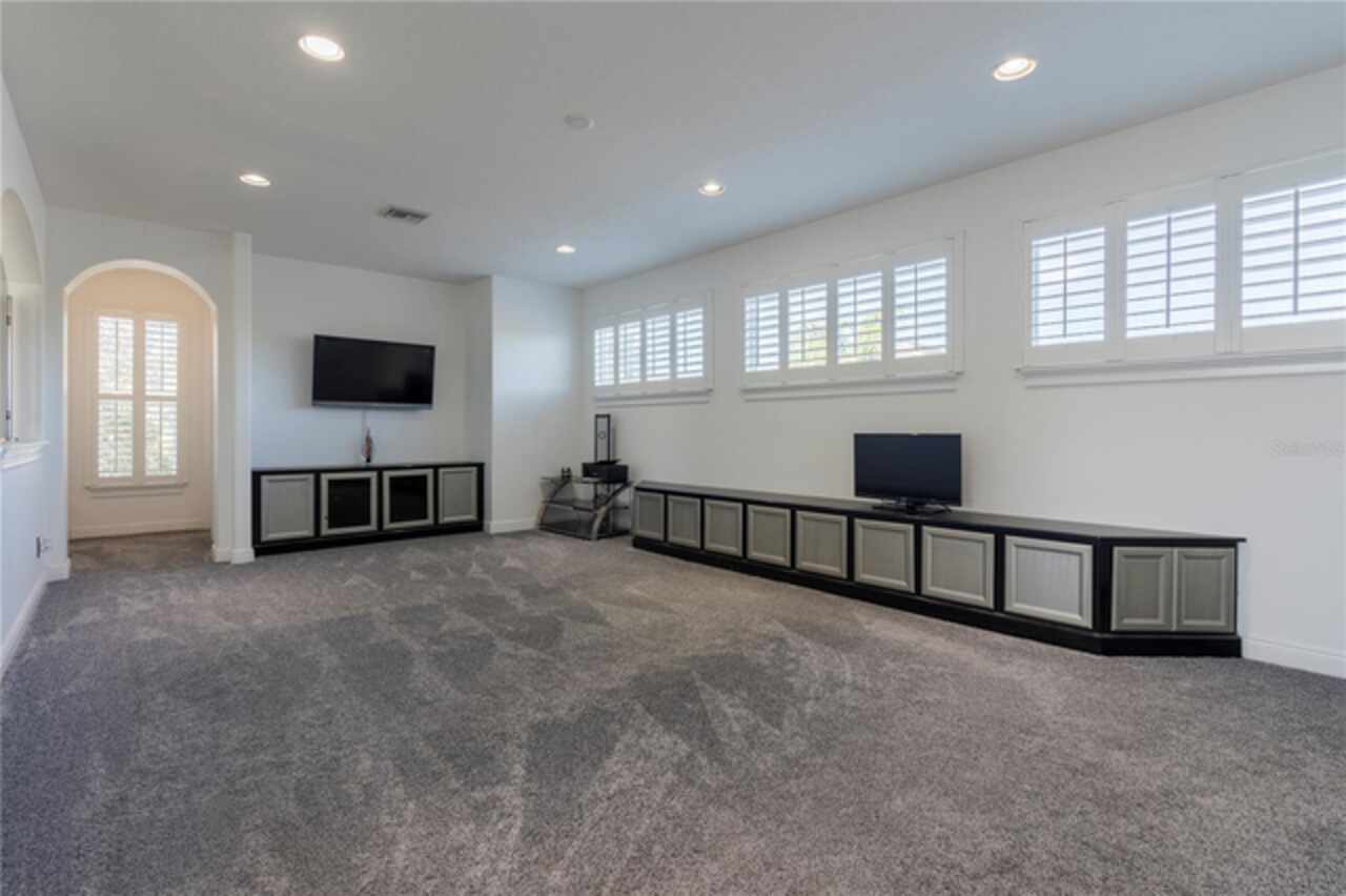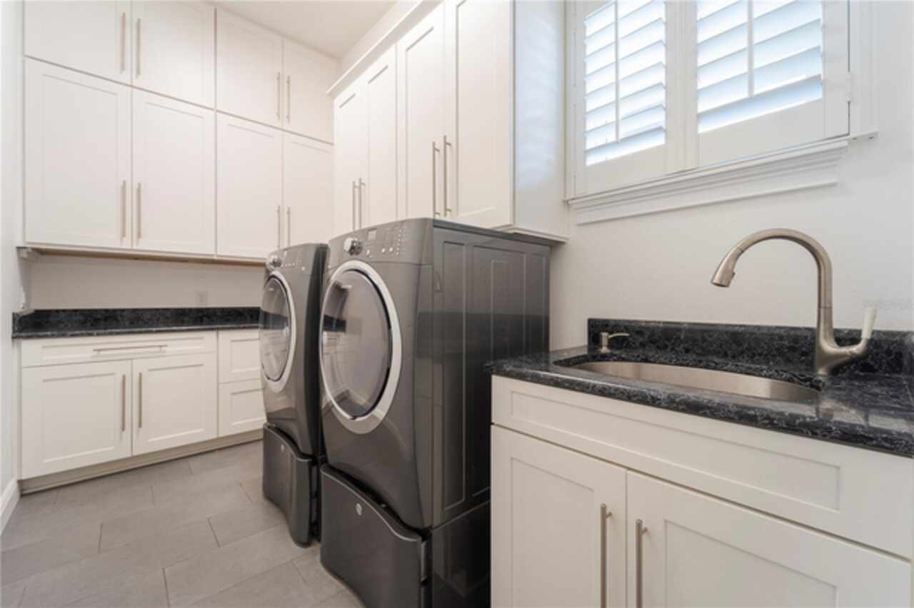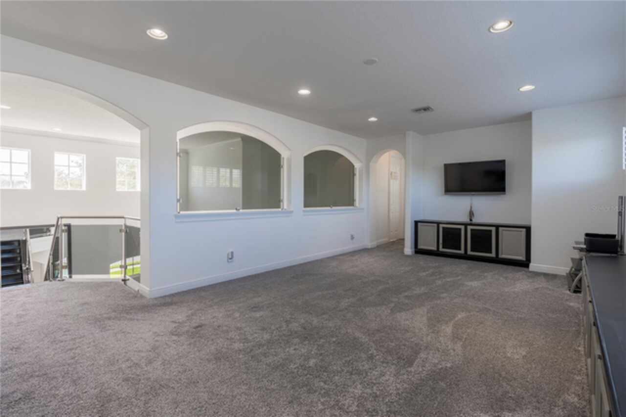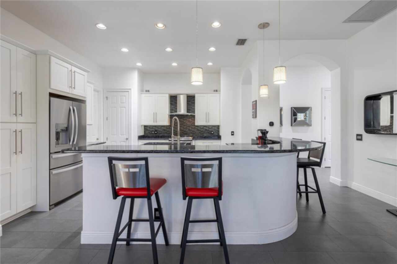 One or more photo(s) has been virtually staged. Amazing Location with Designer Upgrades & Resort-Style Living! Welcome to this true gem in sought-after Gated Community of Lake Roberts Landing, offering over $291, 000 in upgrades and luxury features inside and out. Perfectly positioned on a large corner lot directly across from the community dock, you can relax on your front porch with tranquil, partial views of Lake Roberts. Step inside through a 21-foot grand foyer, where a striking custom staircase with tempered glass and stainless-steel railings sets the tone. Soaring ceilings, elegant plantation shutters, and a whole-home Sonos sound system create a refined atmosphere. The light-filled living room opens through French doors to your private resort-style pool and lanai, while a spacious loft upstairs offers flexibility for a game room, office, or media retreat. The chef’s kitchen is the heart of the home, featuring 42” shaker cabinetry with crown molding, granite countertops, a large island with wrap-around breakfast bar, stacked stone backsplash, and premium stainless appliances. A guest suite with full bath is conveniently located on the first floor, while upstairs you’ll find three more bedrooms and a luxurious primary retreat with double doors, gray laminate flooring, a custom walk-in closet, and spa-like en suite. Designed for entertaining, the backyard feels like your own private oasis: a 42-foot covered lanai with slate tile, fenced yard with lush 10-foot hedges, and an Italian-designed pergola with electric retractable roof and screens. The sparkling pool, built-in trampoline, and outdoor living space make it ideal for gatherings or quiet relaxation. Peace of mind comes with a newer tile roof and dual AC systems. All of this in an unbeatable location near Winter Garden Village, Historic Downtown Winter Garden, Oakland, the Harvest District, shopping, dining, theme parks, hospitals, and major expressways. Big-town convenience meets small-town charm! This one-of-a-kind home must be seen in person to be fully appreciated—schedule your private tour today!
