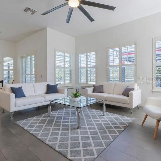 Ceiling Fans(s), High Ceilings, Kitchen/Family Room Combo, Living Room/Dining Room Combo, Open Floorplan, PrimaryBedroom Upstairs, Solid Wood Cabinets, Stone Counters, Thermostat, Walk-In Closet(s), Window Treatments