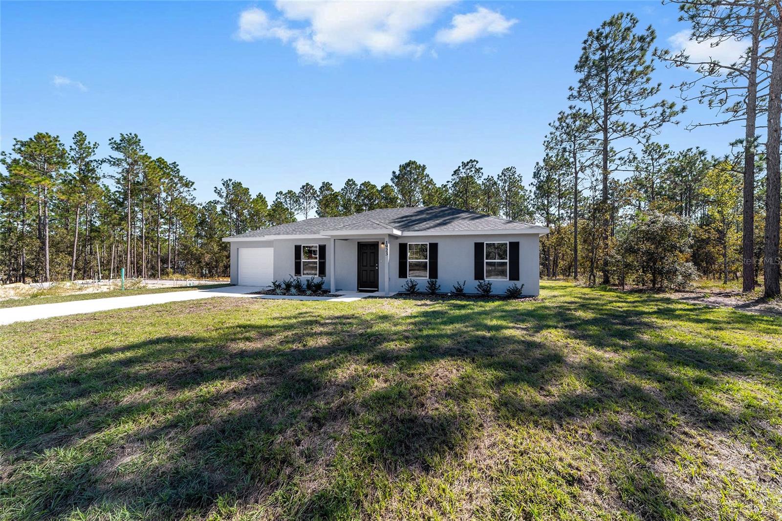 This split plan is open, light & bright. From the moment you walk through the front door you will feel the openness with the cathedral ceiling in the foyer, living room, and dining room! The kitchen comes complete with new stainless steel range, microwave, and dishwasher with ample counter space and cabinetry! A spacious pantry is conveniently located near the kitchen. Enjoy the morning cup of coffee at the breakfast bar or on the back patio. Do laundry with ease in the air-conditioned laundry room. This home rests on just under a 1/4 acre lot ~ enough room for the family & pets to play, but not too much yard work. The community center hosts regular activities and has outdoor pavilions available for event rentals. Amenities include basketball courts, tennis courts, pickleball courts, playgrounds, and a boat ramp and dock! All this with no HOA! The home is conveniently located to an abundance of outdoor recreational activities! It is just a short drive to the Withlacoochee or Rainbow Springs State Park for swimming, canoeing, tubing., fishing, boating, camping, and hiking the nature trails just to name a few! The World Equestrian Center is just minutes away. Builder is including a 1 year full warranty and a 2-10 home warranty! Any dimensions listed are approximate. Photos/Virtual Tour are to show interior and exterior colors and finishes and may or may not be of this actual listing. Garage orientation and floor plan may vary for actual home. BUILDER WILL PAY UP TO $4000.00 TOWARDS BUYERS CLOSING COSTS WITH FULL PRICE OFFER!