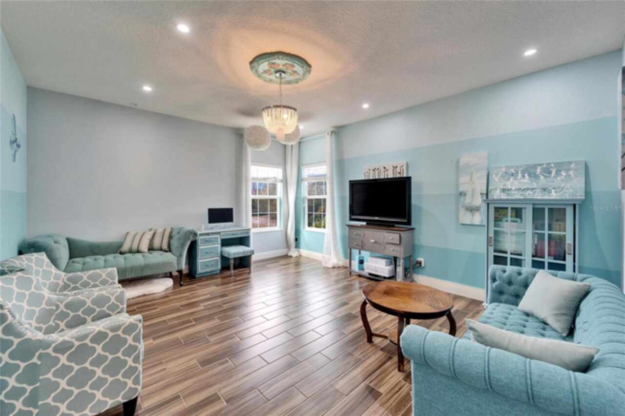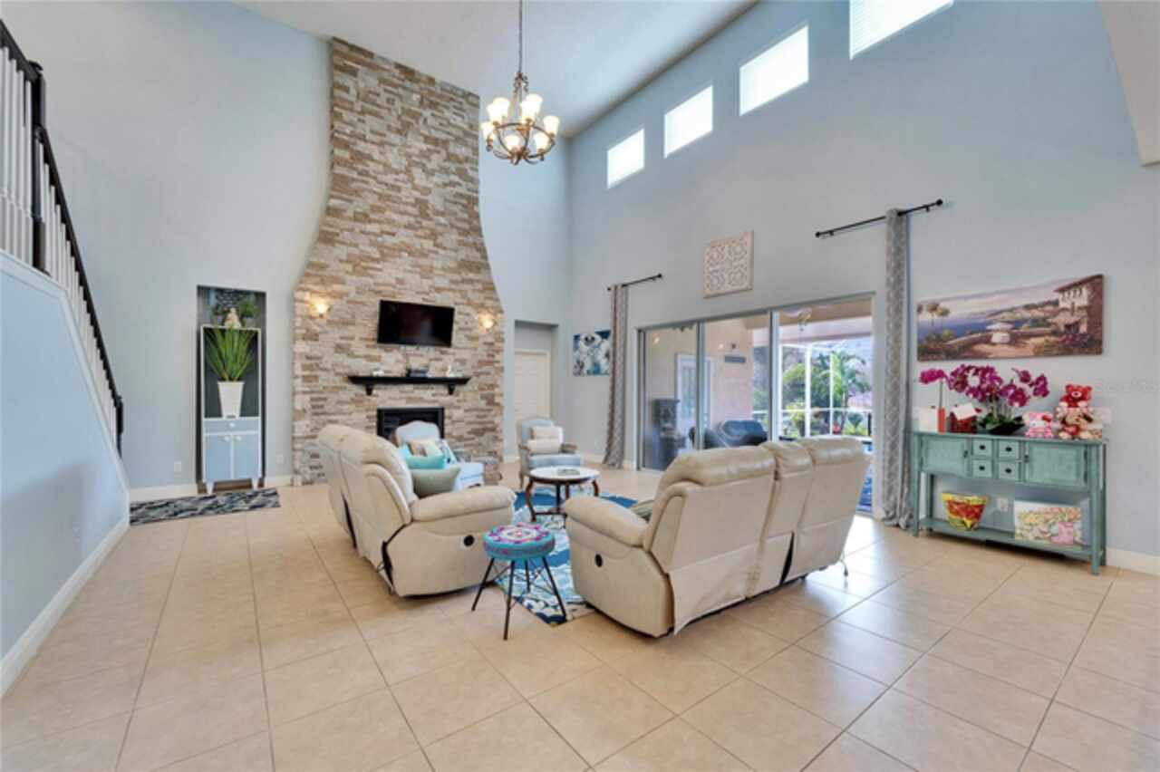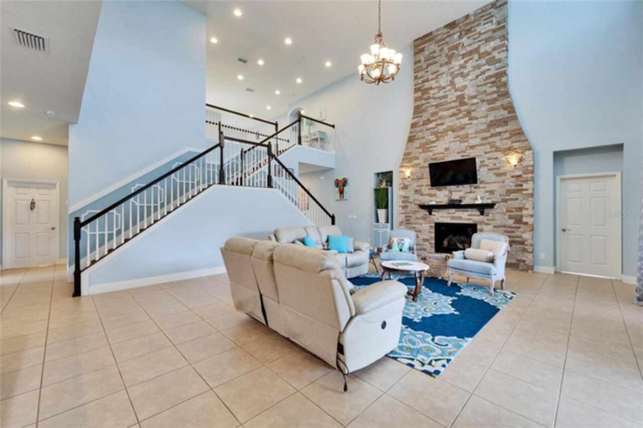 Luxury abounds in this stunning meticulously maintained original owner home. Situated on one of the most desired premium water view, conservation lots in the gated community of Lakeshore Ranch. Privacy like no other on the nearly ½ acre secluded lot at the end of the Cul-De-Sac. This 4082 sq. ft. pool home offers 5 Bedrooms, Media Room, Office, and 4 ½ baths. The award-winning Gasparilla is an innovative two-story design perfect for active families and most especially those who love to entertain. The dramatic foyer, dining room and great room feature soaring 20-foot ceilings, a gorgeous custom grand floor to ceiling stone gas fireplace. The gourmet kitchen includes an over-sized island, abundant solid wood cabinetry, gas stove, double oven, stainless steel appliances and a comfortable breakfast area. The owner’s retreat showcases a luxurious master bath with a garden tub, walk-in shower, large double sink vanity, and an over-sized walk in California Closet. Elegant open double stairway leads to the additional spacious bedrooms, 2 full baths and large Media room with balcony. Many upgraded features throughout the home include, custom trim work, freshly designer painted, ceiling medallions, crown molding, wood look ceramic tile. The expansive outdoor living area includes a covered lanai, outdoor kitchen, a screened in brand new saltwater pool, beautiful paver decking, and mature landscaping. From your fully fenced back yard enjoy watching the wildlife that frequent the conservation area. Total Serenity! The community is golf cart friendly, complete with a covered playground, fishing pier, clubhouse, basketball and tennis courts, Dog Park, fitness center, 3 pools, 24-hour guard gated entrance. Conveniently located near golf, shopping, dining and just a quick trip to downtown Tampa or the airport