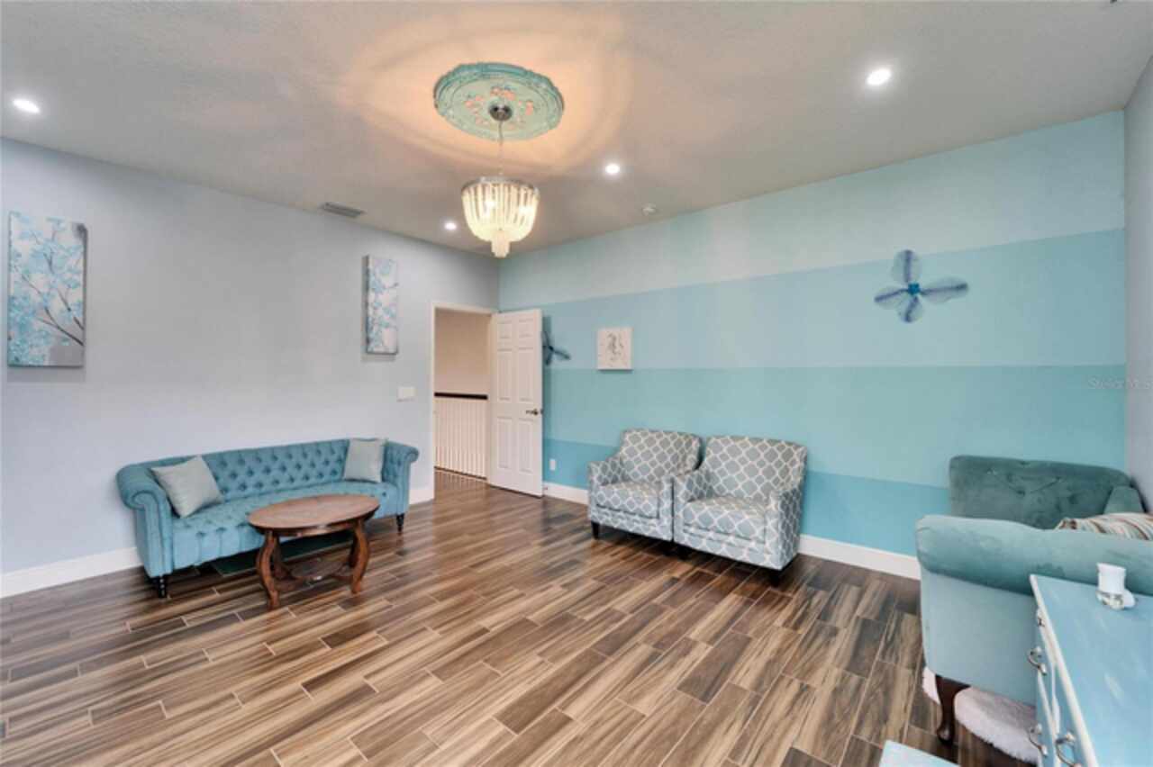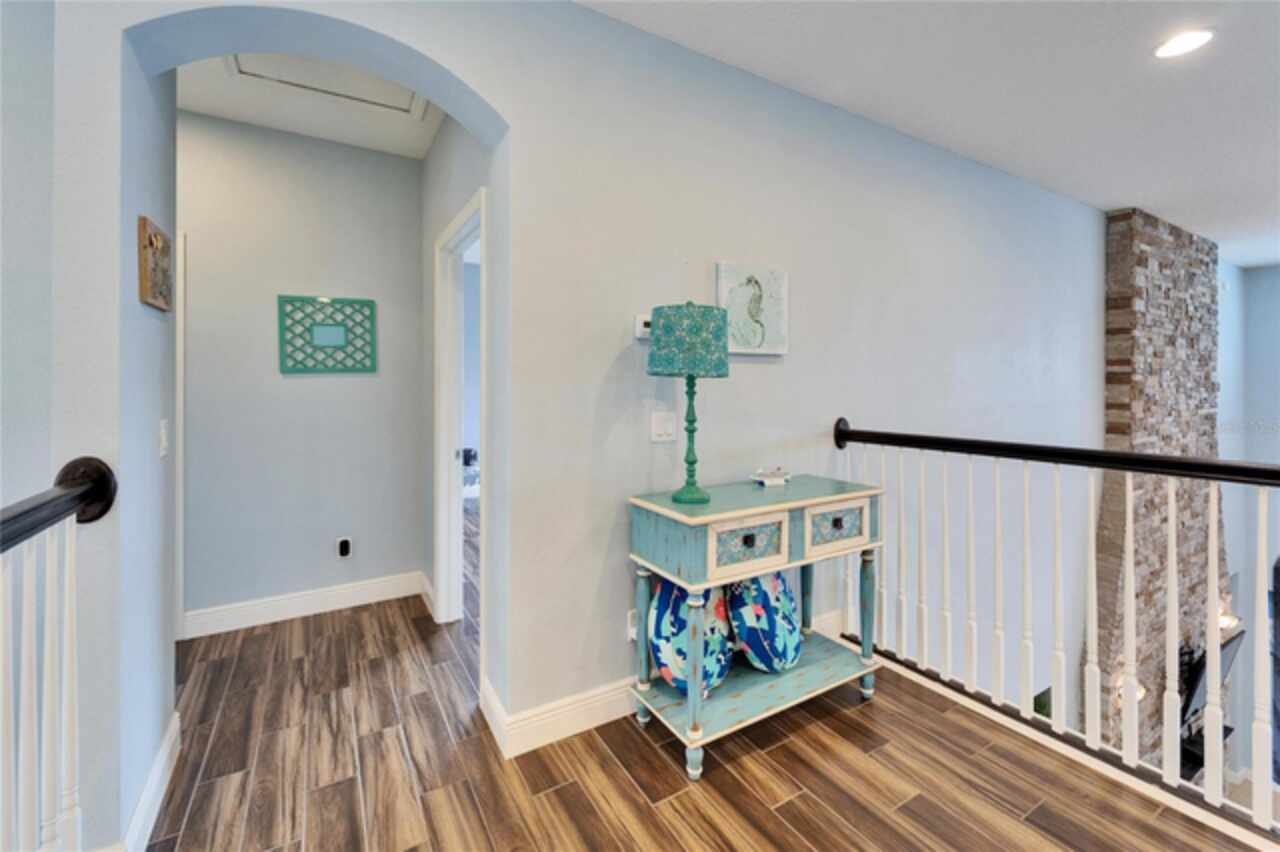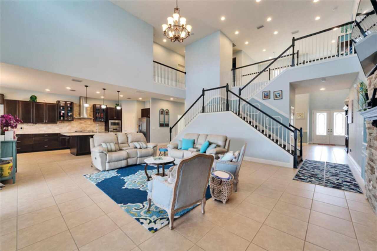 Luxury abounds in this stunning meticulously maintained original owner home. Situated on one of the most desired premium water view, conservation lots in the gated community of Lakeshore Ranch. Privacy like no other on the nearly ½ acre secluded lot at the end of the Cul-De-Sac. This 4082 sq. ft. pool home offers 5 Bedrooms, Media Room, Office, and 4 ½ baths. The award-winning Gasparilla is an innovative two-story design perfect for active families and most especially those who love to entertain. The dramatic foyer, dining room and great room feature soaring 20-foot ceilings, a gorgeous custom grand floor to ceiling stone gas fireplace. The gourmet kitchen includes an over-sized island, abundant solid wood cabinetry, gas stove, double oven, stainless steel appliances and a comfortable breakfast area. The owner’s retreat showcases a luxurious master bath with a garden tub, walk-in shower, large double sink vanity, and an over-sized walk in California Closet. Elegant open double stairway leads to the additional spacious bedrooms, 2 full baths and large Media room with balcony. Many upgraded features throughout the home include, custom trim work, freshly designer painted, ceiling medallions, crown molding, wood look ceramic tile. The expansive outdoor living area includes a covered lanai, outdoor kitchen, a screened in brand new saltwater pool, beautiful paver decking, and mature landscaping. From your fully fenced back yard enjoy watching the wildlife that frequent the conservation area. Total Serenity! The community is golf cart friendly, complete with a covered playground, fishing pier, clubhouse, basketball and tennis courts, Dog Park, fitness center, 3 pools, 24-hour guard gated entrance. Conveniently located near golf, shopping, dining and just a quick trip to downtown Tampa or the airport