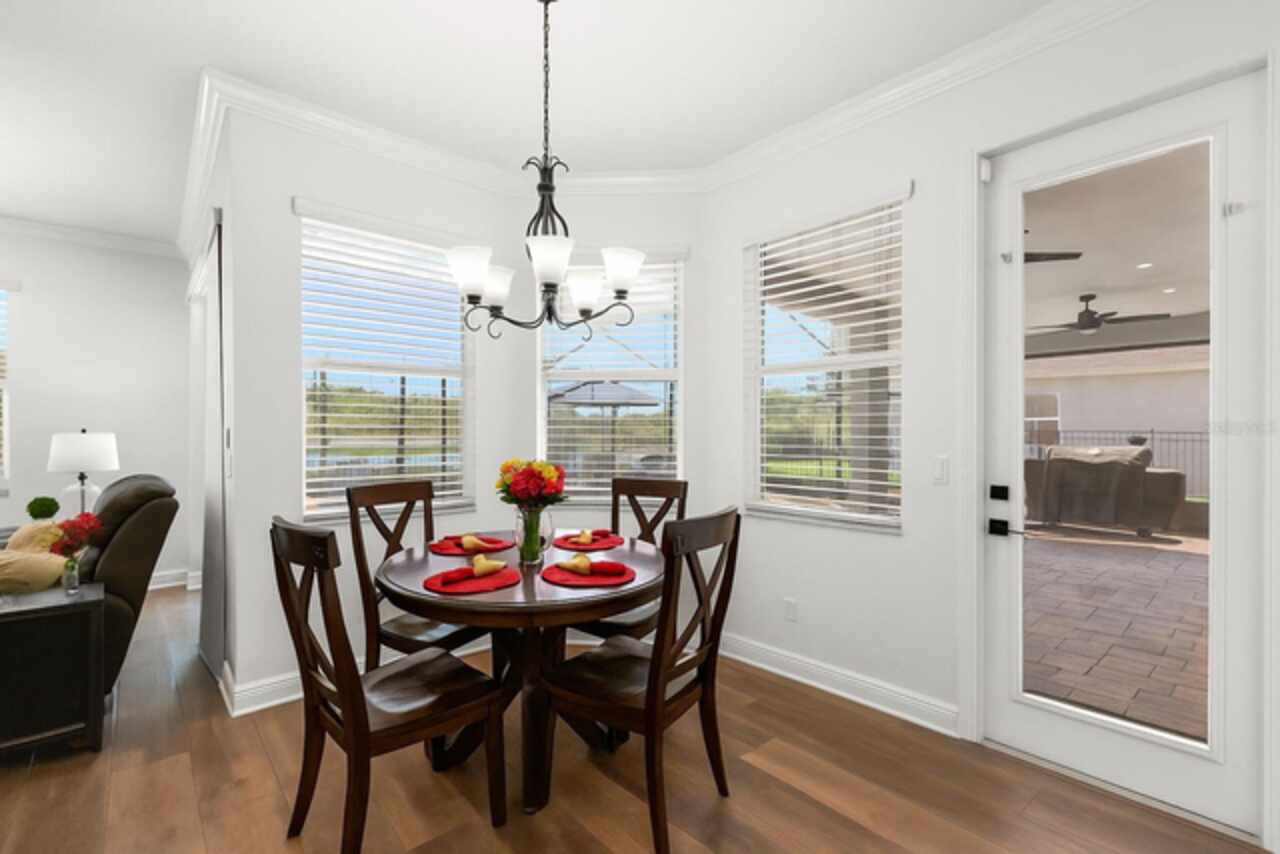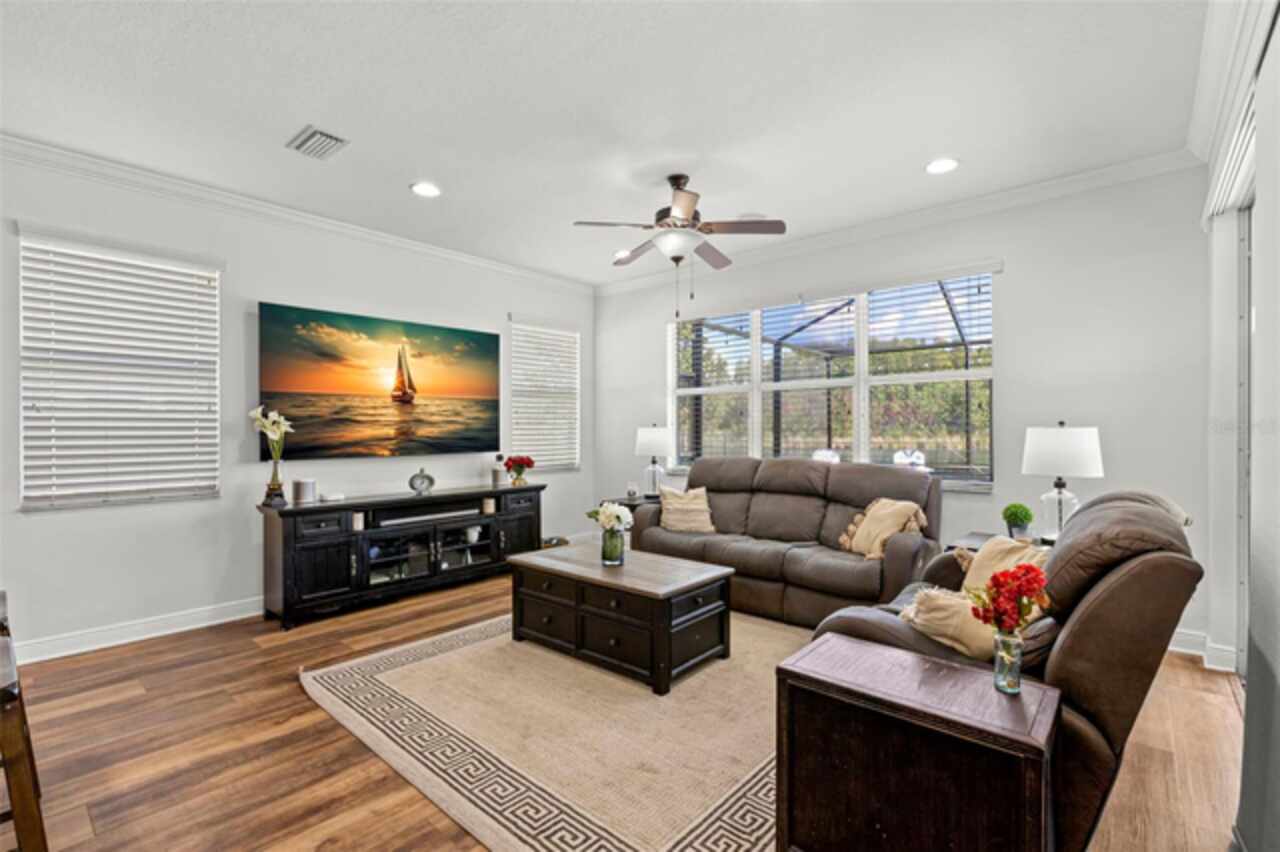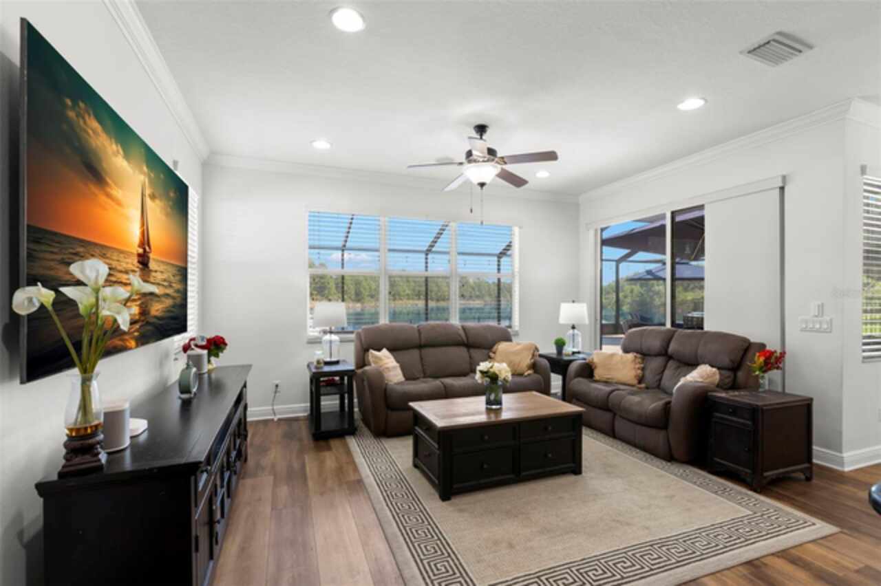 One or more photo(s) has been virtually staged. SELLERS OFFERING CONCESSIONS! Welcome to Lakeshore Ranch – Your Dream Home Awaits! Step into this stunning former model home, perfectly positioned on LAKE MARIEL with serene conservation views. From the moment you enter, you’ll be captivated by the open sightline that draws your eye straight through the home to the sparkling water just beyond your backyard. Inside, you’ll find designer finishes and countless recent upgrades. The dedicated home office makes working from home a breeze, while the chef’s kitchen features newer appliances (2022), 42” cabinetry, a gas range, and a large island with breakfast bar—perfect for entertaining or enjoying a quiet evening in. The first floor and stairway include stunning, wide plank wood laminate flooring installed in 2022. Outside, unwind in the oversized, covered, and enclosed lanai, freshly re-screened in 2024, while soaking in peaceful lake and conservation views. Nature watch from your own backyard, where you can see deer, fox, birds and the occasional alligator glide by. Hosting friends and family is effortless—gather for dinner, host game night on the lanai, or open the sliding doors, turn up the central sound system, and dance under the stars. When it’s time to relax, retreat to your private media room for movie night. Upstairs, the primary suite is an oasis with a cozy sitting area and gorgeous views of the lake and conservation area from the bedroom and the private sundeck, complete with new tile installed in 2023. The large walk in closets were customized for organization utilization of space. The primary bath includes spilt vanities and a separate spa-like soaking tub and shower space. The upstairs also includes 3 more spacious bedrooms (one with en suite) and a large loft area, offering flexibility for every lifestyle. The home’s thoughtful improvements ensure peace of mind for years to come and include: the Upstairs A/C unit was replaced in 2022, the Downstairs A/C unit, ducts, and smart thermostat was replaced in 2023, the Exterior was painted and the landscape refreshed in 2023. Also, the Exterior lighting was updated in 2023 and the Interior is freshly painted (2025). Living in Lakeshore Ranch means enjoying world-class amenities that include: a resort-style clubhouse with 3 pools & a fire pit, a state-of-art fitness facility, a yoga room, a business center, basketball & tennis courts, dog park, playground, fishing dock, amphitheater and over 250 acres of open space. Located in one of Land O’ Lakes most desirable neighborhoods, and conveniently close to Tampa International Airport, downtown Tampa, and Award Winning Beaches—yet tucked away in a community that feels private and serene. With upgrades inside and out, this home offers the perfect blend of luxury, comfort, and modern convenience. Don’t miss your chance to make it yours!