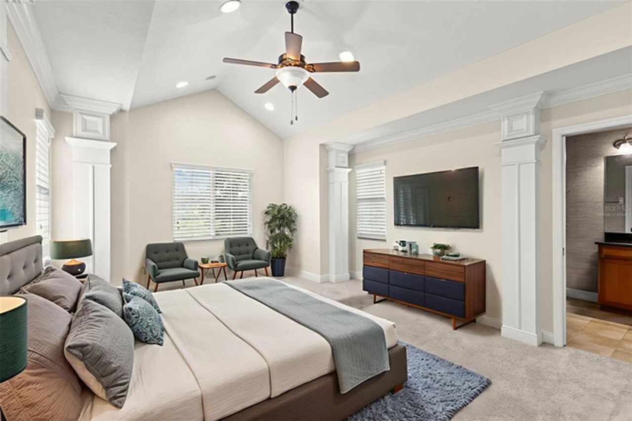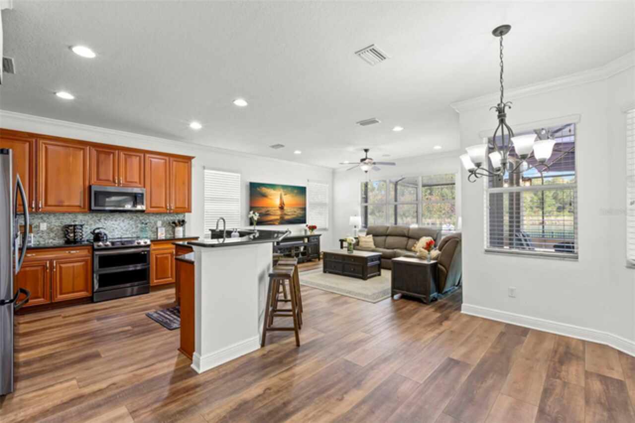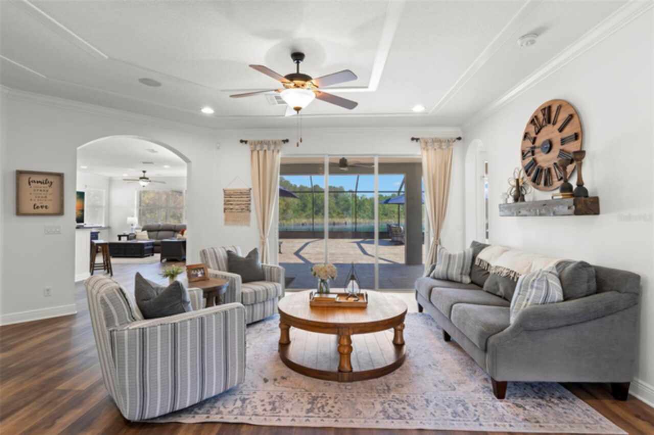 One or more photo(s) has been virtually staged. SELLERS OFFERING CONCESSIONS! Welcome to Lakeshore Ranch – Your Dream Home Awaits! Step into this stunning former model home, perfectly positioned on LAKE MARIEL with serene conservation views. From the moment you enter, you’ll be captivated by the open sightline that draws your eye straight through the home to the sparkling water just beyond your backyard. Inside, you’ll find designer finishes and countless recent upgrades. The dedicated home office makes working from home a breeze, while the chef’s kitchen features newer appliances (2022), 42” cabinetry, a gas range, and a large island with breakfast bar—perfect for entertaining or enjoying a quiet evening in. The first floor and stairway include stunning, wide plank wood laminate flooring installed in 2022. Outside, unwind in the oversized, covered, and enclosed lanai, freshly re-screened in 2024, while soaking in peaceful lake and conservation views. Nature watch from your own backyard, where you can see deer, fox, birds and the occasional alligator glide by. Hosting friends and family is effortless—gather for dinner, host game night on the lanai, or open the sliding doors, turn up the central sound system, and dance under the stars. When it’s time to relax, retreat to your private media room for movie night. Upstairs, the primary suite is an oasis with a cozy sitting area and gorgeous views of the lake and conservation area from the bedroom and the private sundeck, complete with new tile installed in 2023. The large walk in closets were customized for organization utilization of space. The primary bath includes spilt vanities and a separate spa-like soaking tub and shower space. The upstairs also includes 3 more spacious bedrooms (one with en suite) and a large loft area, offering flexibility for every lifestyle. The home’s thoughtful improvements ensure peace of mind for years to come and include: the Upstairs A/C unit was replaced in 2022, the Downstairs A/C unit, ducts, and smart thermostat was replaced in 2023, the Exterior was painted and the landscape refreshed in 2023. Also, the Exterior lighting was updated in 2023 and the Interior is freshly painted (2025). Living in Lakeshore Ranch means enjoying world-class amenities that include: a resort-style clubhouse with 3 pools & a fire pit, a state-of-art fitness facility, a yoga room, a business center, basketball & tennis courts, dog park, playground, fishing dock, amphitheater and over 250 acres of open space. Located in one of Land O’ Lakes most desirable neighborhoods, and conveniently close to Tampa International Airport, downtown Tampa, and Award Winning Beaches—yet tucked away in a community that feels private and serene. With upgrades inside and out, this home offers the perfect blend of luxury, comfort, and modern convenience. Don’t miss your chance to make it yours!