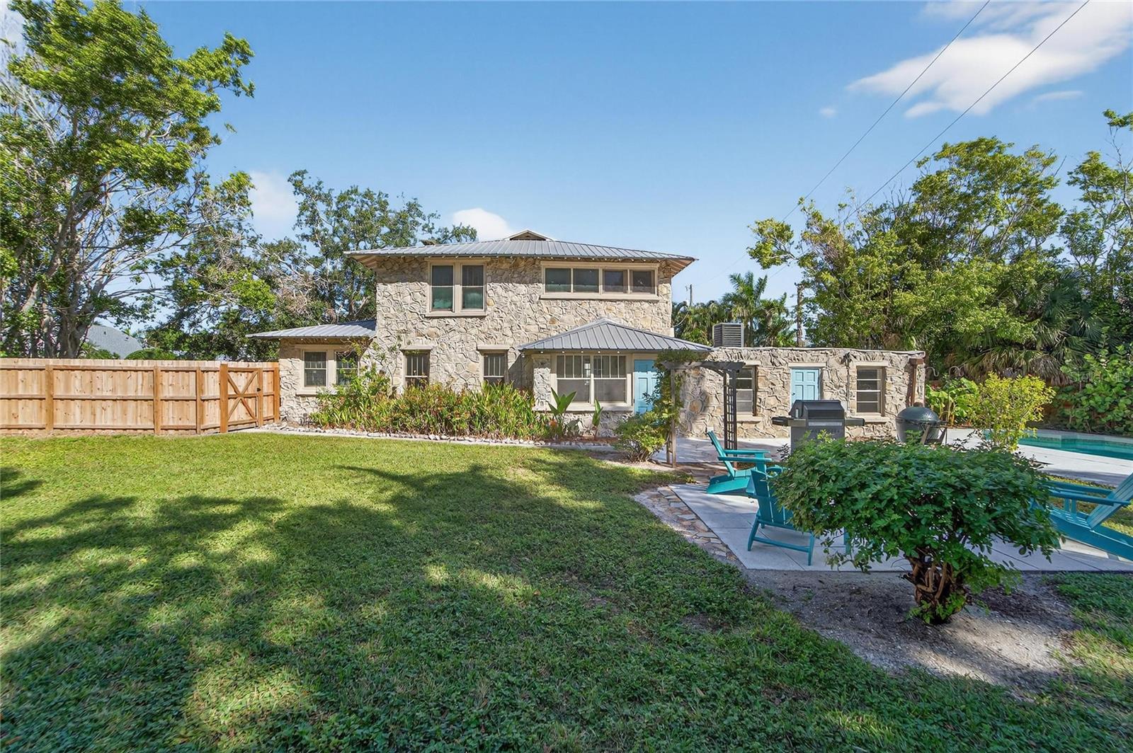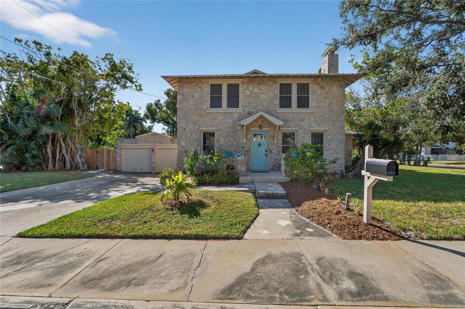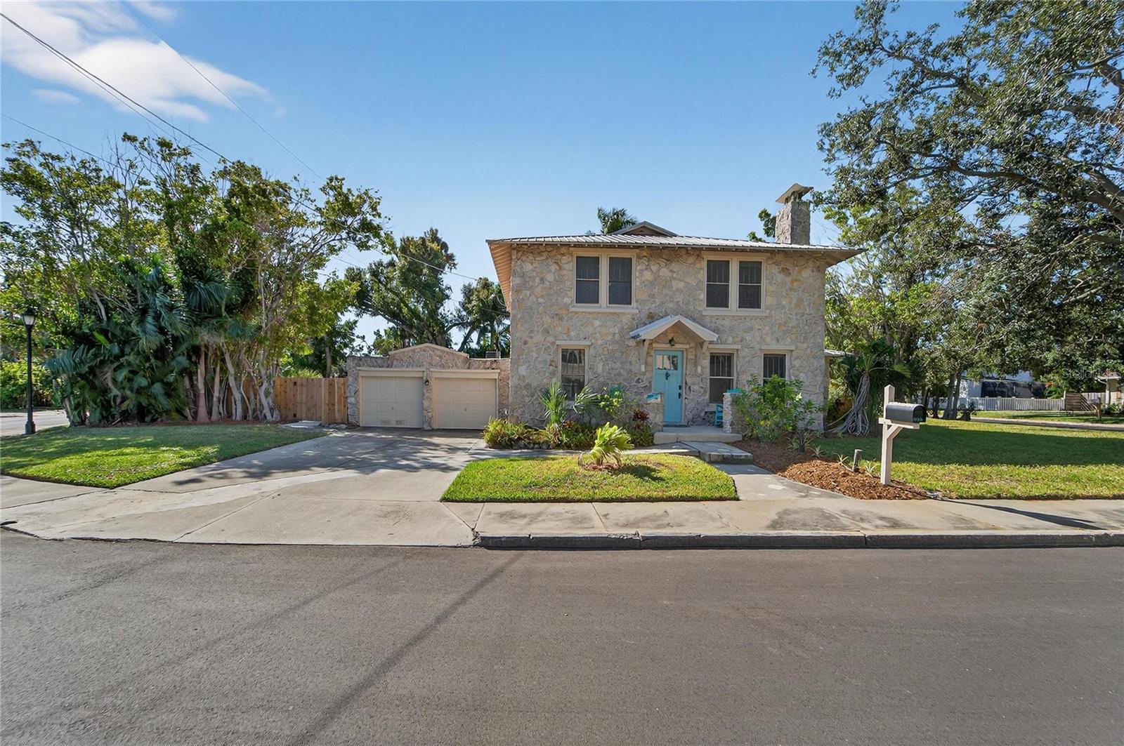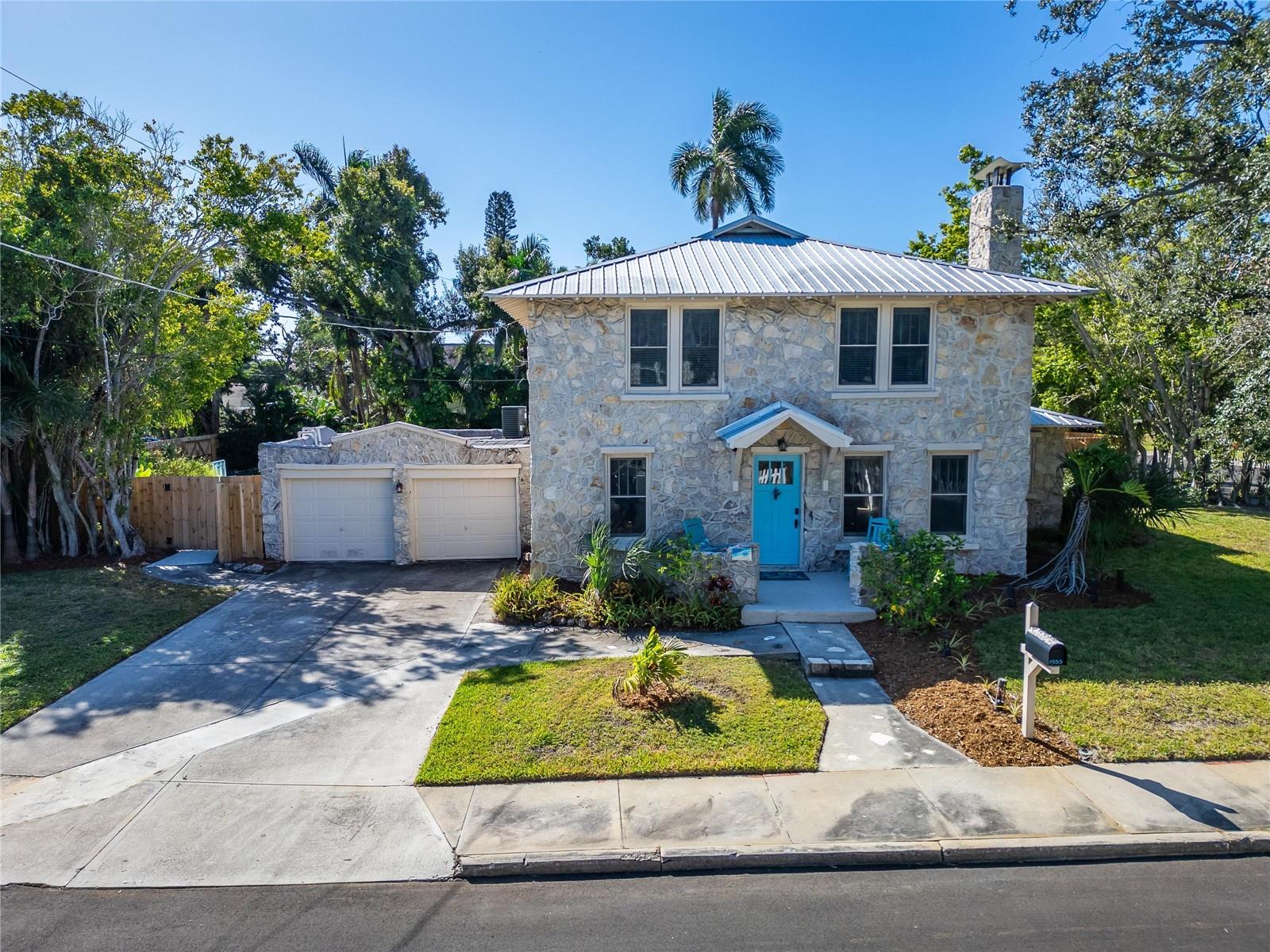 One or more photo(s) has been virtually staged. RARE OPPORTUNITY TO OWN THIS HISTORIC CHARMER! This stunning stone home is a true gem—offering timeless character and modern conveniences. Set on an oversized corner lot (16, 740 sq ft), this rare pool home combines beauty, function, and lifestyle in one remarkable package. Meticulously maintained, the home boasts fresh interior paint, newly painted exterior trim, and professionally sealed stonework. Inside, stone and wood floors have been expertly treated and sealed, ensuring both elegance and durability. A metal roof, newer A/C units, a new pool pump and solar heating for the pool, provide peace of mind for years to come. The first floor offers versatile living with a spacious living room, inviting family room, office/den, modern kitchen with dining room, and a full bathroom plus an enclosed porch. Upstairs, the second floor includes a primary bedroom, two additional guest bedrooms, an updated full bath, plus a bonus room ideal for a home office, TV lounge, or cozy reading retreat. The outdoor living is unmatched—a sparkling pool, lush mature landscaping with irrigation, and a brand-new fence with side gate access, making it easy to park a boat or recreational toys. The fence is complete with electrical connections for outdoor lighting, perfect for evening gatherings. A property of this caliber—combining historic charm, modern updates, and an enviable location—is truly a rare find. Don’t miss the chance to call this extraordinary home yours. Located close to the Manatee River/Wares Creek, Bradenton Riverwalk, restaurants, shops, and cultural attractions, including the charming Village of the Arts and Lecom Park. This home was not affected by flooding in 2024 hurricanes. Move-in ready & waiting for its next story!