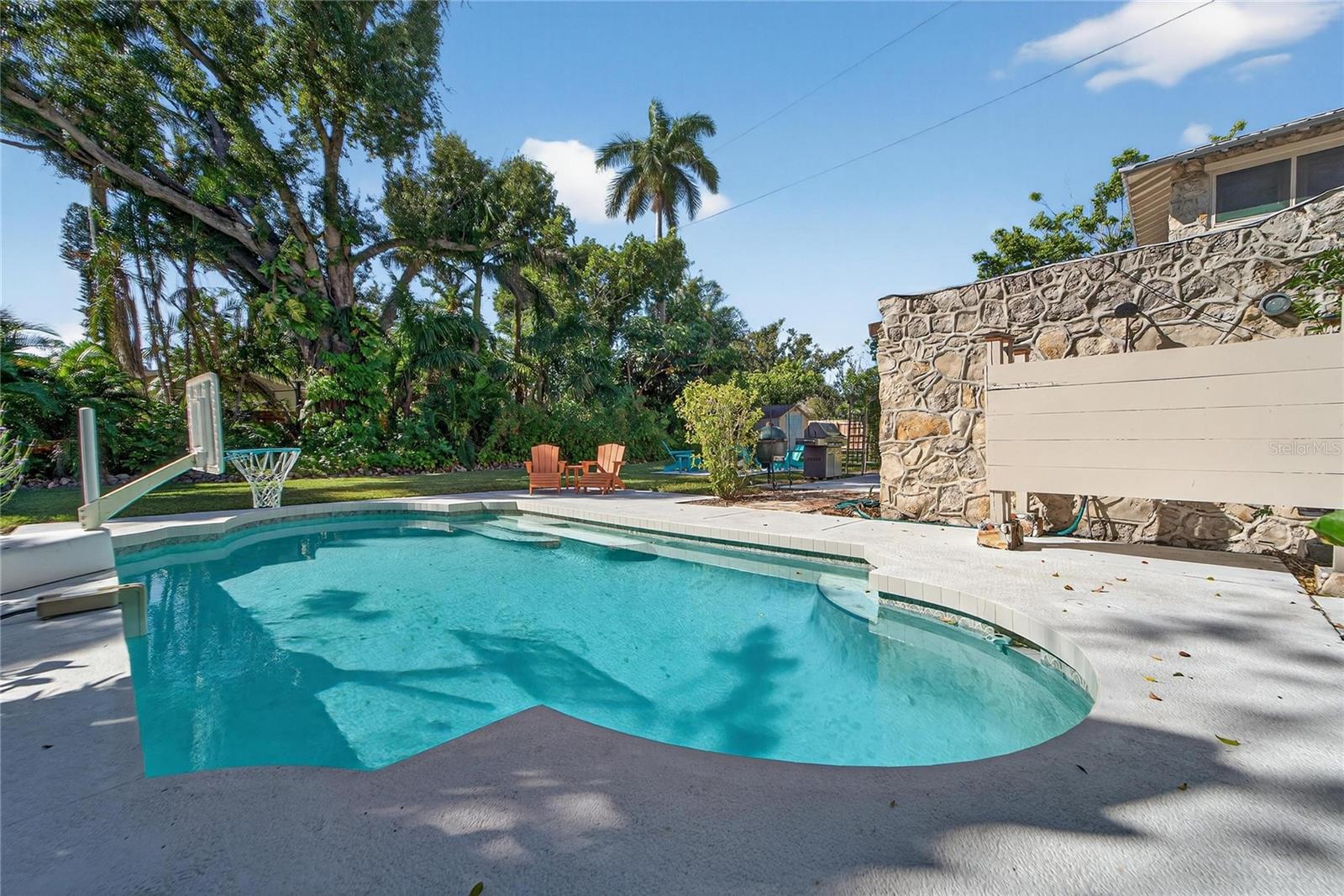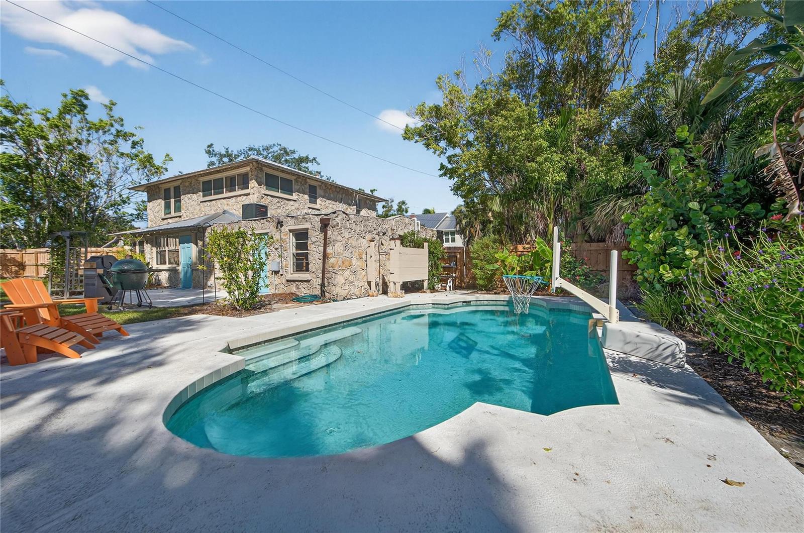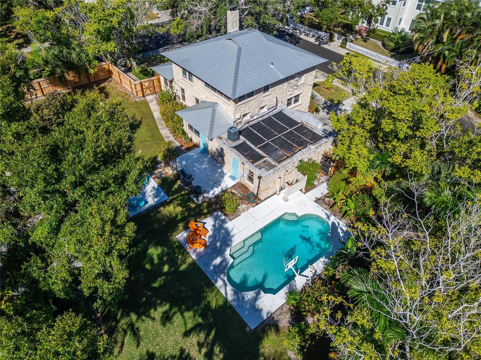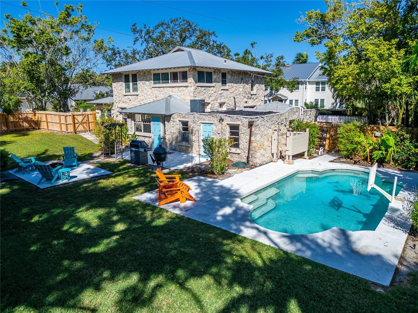 One or more photo(s) has been virtually staged. RARE OPPORTUNITY TO OWN THIS HISTORIC CHARMER! This stunning stone home is a true gem—offering timeless character and modern conveniences. Set on an oversized corner lot (16, 740 sq ft), this rare pool home combines beauty, function, and lifestyle in one remarkable package. Meticulously maintained, the home boasts fresh interior paint, newly painted exterior trim, and professionally sealed stonework. Inside, stone and wood floors have been expertly treated and sealed, ensuring both elegance and durability. A metal roof, newer A/C units, a new pool pump and solar heating for the pool, provide peace of mind for years to come. The first floor offers versatile living with a spacious living room, inviting family room, office/den, modern kitchen with dining room, and a full bathroom plus an enclosed porch. Upstairs, the second floor includes a primary bedroom, two additional guest bedrooms, an updated full bath, plus a bonus room ideal for a home office, TV lounge, or cozy reading retreat. The outdoor living is unmatched—a sparkling pool, lush mature landscaping with irrigation, and a brand-new fence with side gate access, making it easy to park a boat or recreational toys. The fence is complete with electrical connections for outdoor lighting, perfect for evening gatherings. A property of this caliber—combining historic charm, modern updates, and an enviable location—is truly a rare find. Don’t miss the chance to call this extraordinary home yours. Located close to the Manatee River/Wares Creek, Bradenton Riverwalk, restaurants, shops, and cultural attractions, including the charming Village of the Arts and Lecom Park. This home was not affected by flooding in 2024 hurricanes. Move-in ready & waiting for its next story!