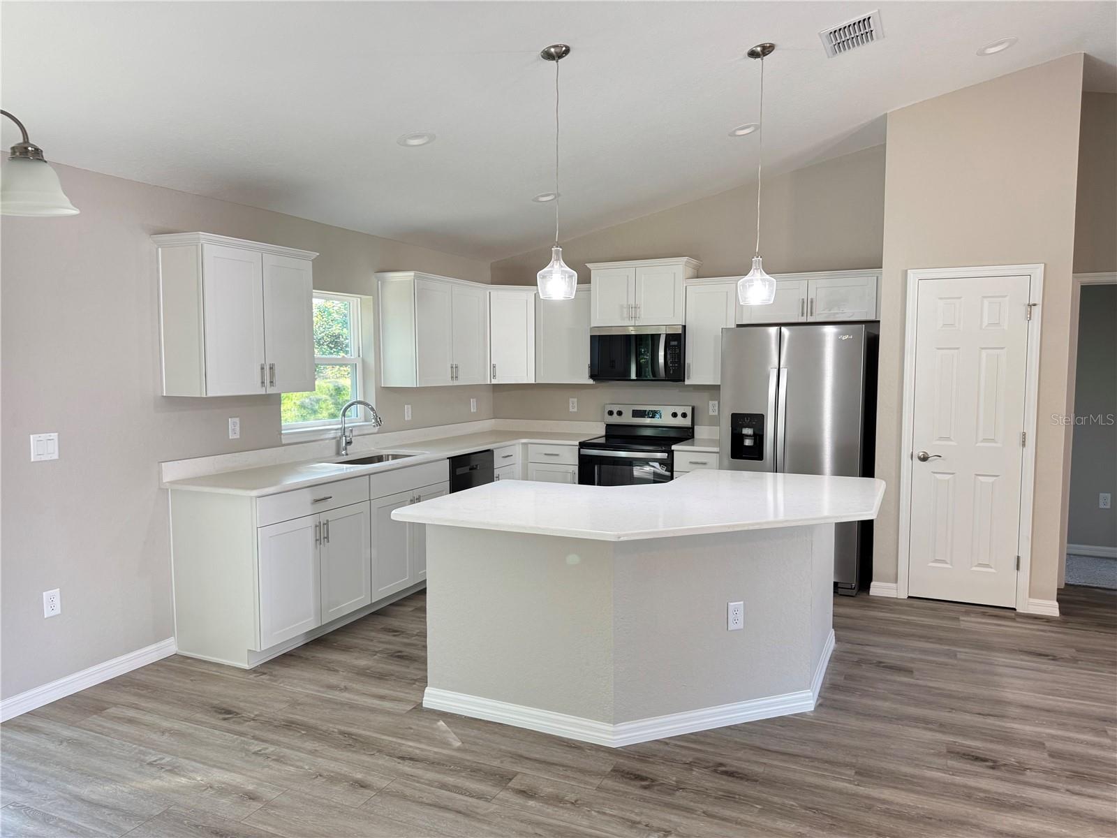 One or more photo(s) has been virtually staged. MOVE IN READY!! Beautiful new construction home in Rainbow Springs Country Club! Luxury Plank Vinyl flooring throughout all living and common areas, tile in bathrooms, and carpet in the bedrooms. Open floor plan with dining area and eat-in kitchen, all done in neutral, pleasing colors. Inside laundry with W & D hook-ups. Walk-in closet + regular size closet in Master bedroom. Stainless steel appliance package in the kitchen. Cabinets are white shaker-style with light luxury quartz countertops. Stacked stone on the exterior entrance. Please see attached documents from Builder (Builders Contract Addendum & Warranty) Actual photos coming soon, attached are our virtually staged model home for reference. Any photos depicted are for illustration purposes only and only to show layout. Floor plan displayed is our standard plan and garage orientation may vary on actual home. Interior and exterior colors, finishes, and garage orientation will vary for actual home. Information is deemed correct, but no guarantee made. Any dimensions listed are approximate.