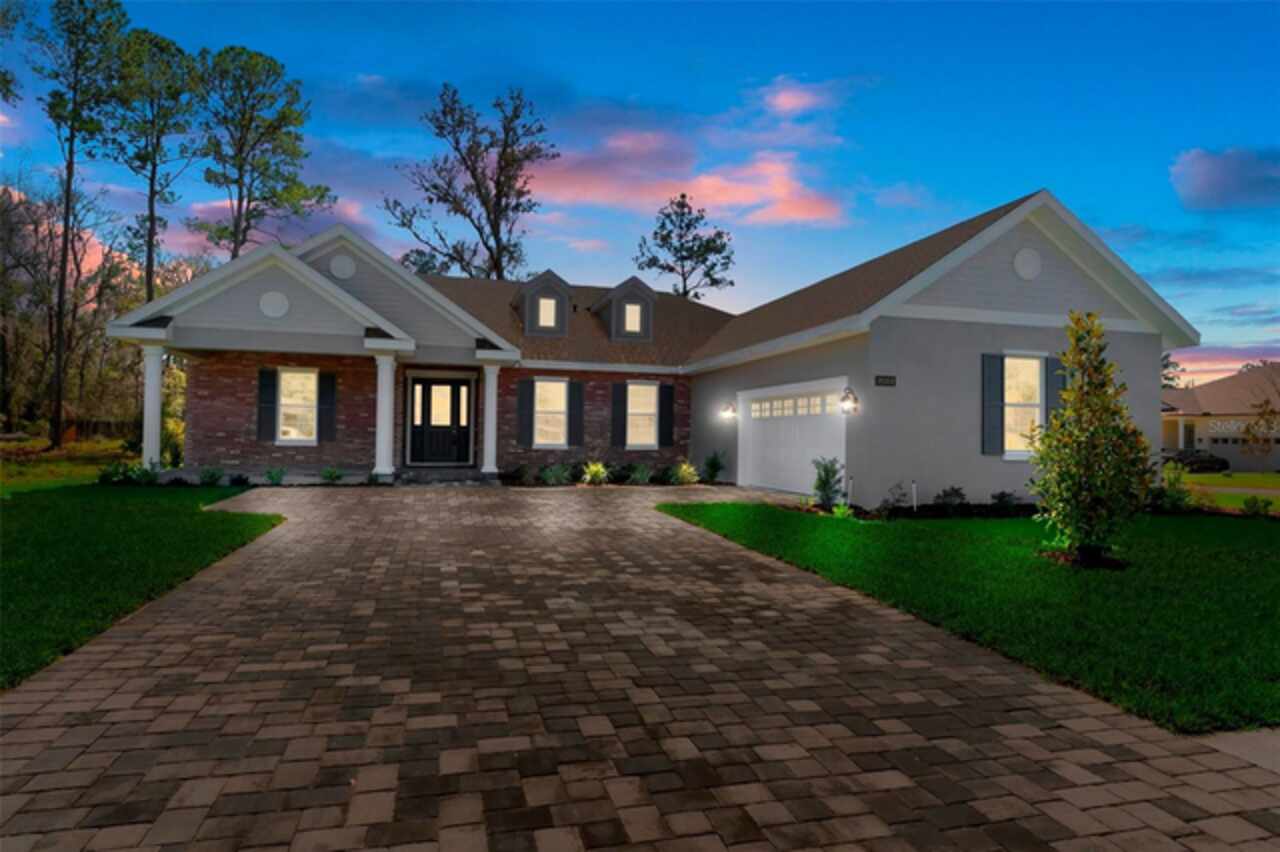 One or more photo(s) has been virtually staged. Under Construction. This stunning and luxurious model home, built by Spire Homes, a semi-custom builder, abounds with beautiful interior appointments and includes the washer, dryer, refrigerator, plantation shutters throughout, and all decor and furnishings!! It is located in the premier golf course and lifestyle community of Southern Hills Plantation, in the Estates neighborhood. The lovely front exterior entry creates a warm and welcoming ambiance. Starting at the entry foyer, you will walk into a fabulous open, airy, spacious floor plan. This home features a gourmet chef's delight kitchen with a large island opening to the great room, allowing for easy conversation and entertaining. The soft-close cabinetry throughout this beautiful home includes high-end quartz countertops, subway tile backsplash, and under-mount lighting. You'll also love the 5-burner gas cooktop, gas tankless water heater, and the pre-plumbing, giving you the choice of gas or electric dryer. A huge walk-through butler's pantry and an en-suite guest bed/bath offer fabulous uniqueness to this home. You will love the 8-foot doors and 5 1/4'' baseboards throughout! The owner's suite and bath are awe-inspiring. LVP flooring comes with a Lifetime residential warranty for further peace of mind in all main living areas. The expansive 35' extended lanai offers Florida outdoor living at its best. The lanai also offers a pre-plumbed gas drop for the further enjoyment of outdoor living and entertainment—total serenity. The oversized side-entry garage allows for significant extra storage and sets the tone for the home's exterior ambiance. The homesite showcases a corner homesite. Southern Hills Plantation offers a premier, manned, and gated entrance showcasing a Pete Dye 18-hole Signature Golf Course where outdoor lifestyle living is at its finest. The elegant plantation-styled Southern Hills Clubhouse overlooks stunning rolling topography and the Pete Dye Signature golf course. You'll love the Har-Tru clay surface tennis courts, pickleball courts, a full-service fitness center, a swimming pool and spa, formal and informal restaurants, a putting green, and a driving range. If you are looking for a fabulous semi-custom home in a premier community, this home is for you! Some photos are virtually staged. All information in this listing is intended to be accurate and not warranted. The buyer or buyers' agent should verify all information as correct and current. Some photos may be virtually staged.