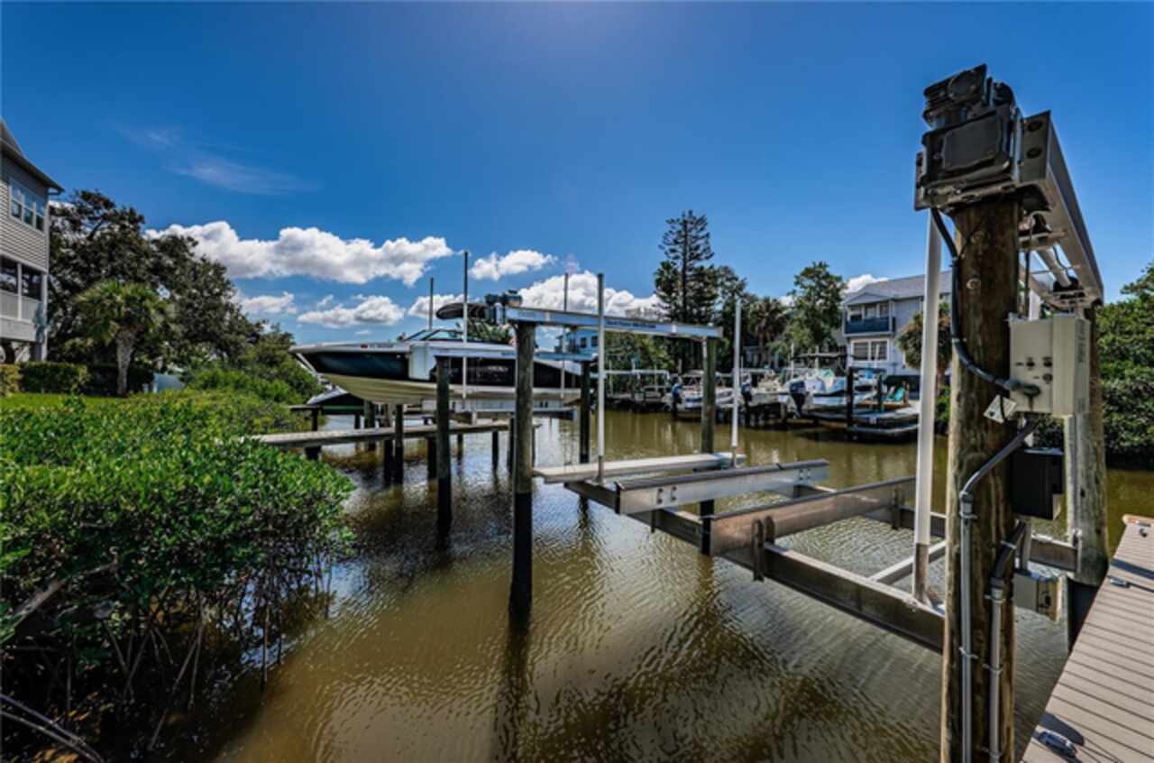 Discover Coastal Luxury at its finest in this breathtaking 4-bedroom, 3-bathroom, townhouse nestled in an exclusive gated community on famous Indian Rocks Beach. Boating enthusiasts will love the opportunity to keep your boat on the deeded slip featuring a 10, 000-pound lift. Step inside this elegant residence to discover a carefully curated home where every detail has been thoughtfully designed and appointed. The chef’s kitchen is a masterpiece, featuring custom cabinetry, stone countertops and upgraded stainless-steel appliances. The open-concept living area, adorned with full ship lap wall covering, flows effortlessly to the spacious screened in balcony showcasing picturesque Intracoastal water views. Back inside enjoy the ambiance of an electric fireplace with optional heat for those rare chilly nights. Retreat to the tranquil owner's suite, featuring a large sitting area that is the perfect spot to wind down and relax while gazing out at the water. The spa-inspired en-suite is complete with dual sinks, a generous walk-in shower, and a spacious walk-in closet. This meticulously maintained townhouse features upgraded impact windows for peace of mind and energy efficiency. Complete with the convenience of an elevator allowing easy access to all levels. The first floor features a lovely patio with access from the oversized tandem garage that has space for at least two vehicles, along with ample storage for all your toys and essentials. Can come Completely FURNISHED and TURNKEY with upgraded features including new generator, new water heater and A/C with ultraviolet light, and much more. Full list available upon request. HOA Fee will reduce to only $703.33 per month starting January 2026! Stop by for a dip in the community pool after a day at the beach or just lounge and enjoy the scenery. Embrace the Indian Rocks Beach lifestyle with sugar-sand beaches just across the street, a variety of eclectic shopping, and diverse dining to explore and enjoy.