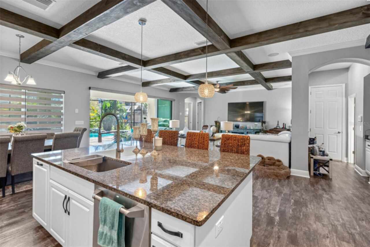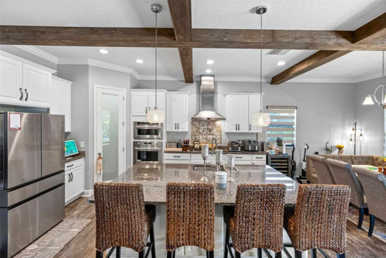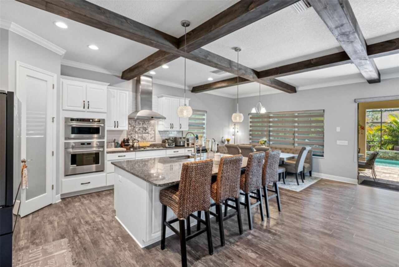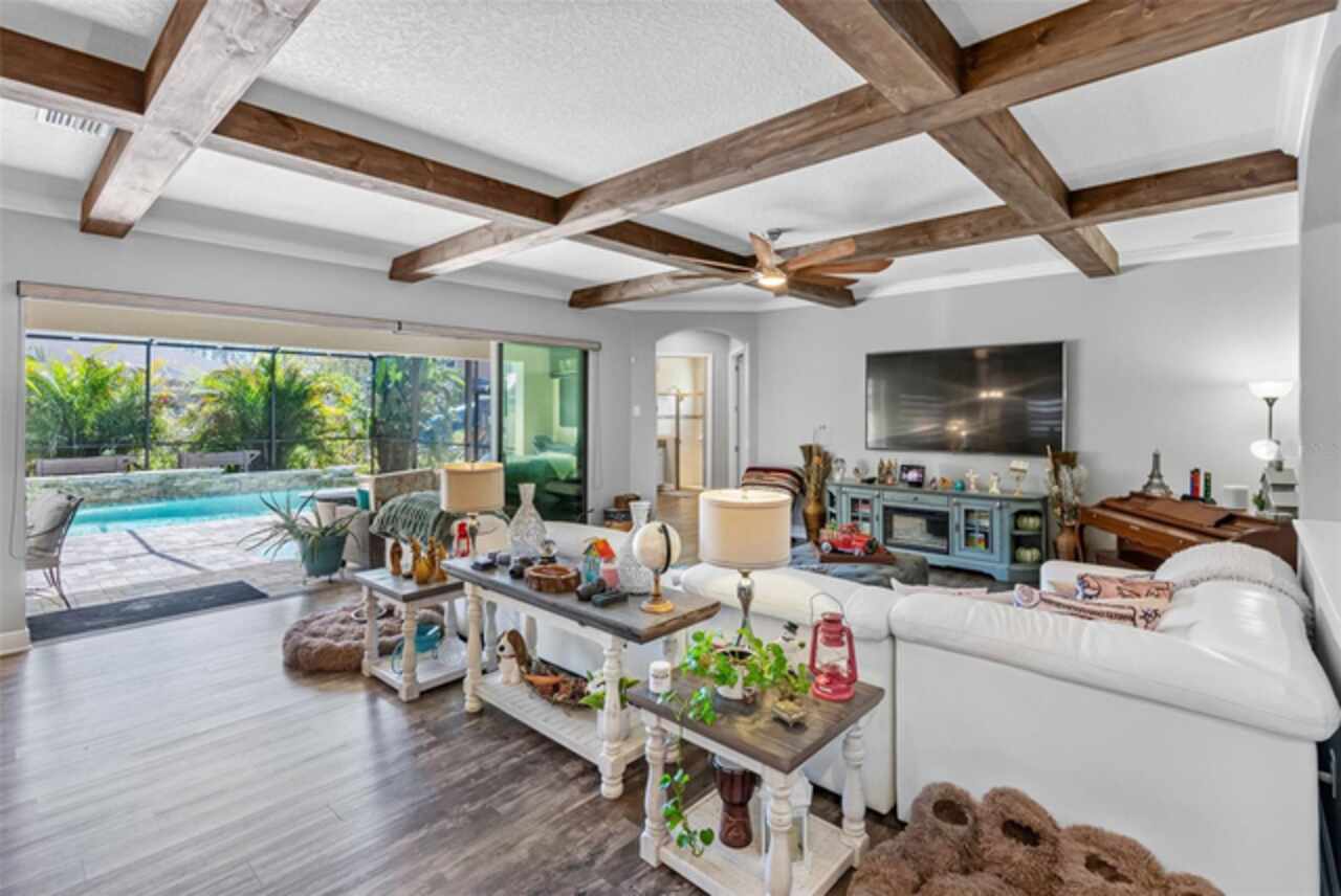** Price improvement** Set within the tranquil heart of Land O’ Lakes, this Homes by WestBay Madeira III pool estate redefines modern luxury. Every detail of its 4, 218 sq. ft. layout has been carefully curated to balance sophistication, comfort, and effortless living. From the moment you enter, soaring ceilings with exposed wood beams create a sense of grandeur, while the open flow invites both intimate gatherings and grand-scale entertaining. The gourmet kitchen, anchored by an expansive island and outfitted with top-tier appliances, is as functional as it is stunning. Beyond the glass, a private resort oasis awaits—complete with a newly designed pool, integrated spa, and full summer kitchen, offering the ultimate setting for year-round entertaining inside a massive screened in area. Retreat upstairs to a serene owner’s sanctuary, where a spa-style bath and private balcony provide the perfect escape. A second covered balcony extends from the front suite, capturing morning light and evening breezes in equal measure. Thoughtful upgrades—including a 22kW Generac whole-home generator—blend luxury with peace of mind. This home is not only elegant but exceptionally livable, designed to meet every modern demand.