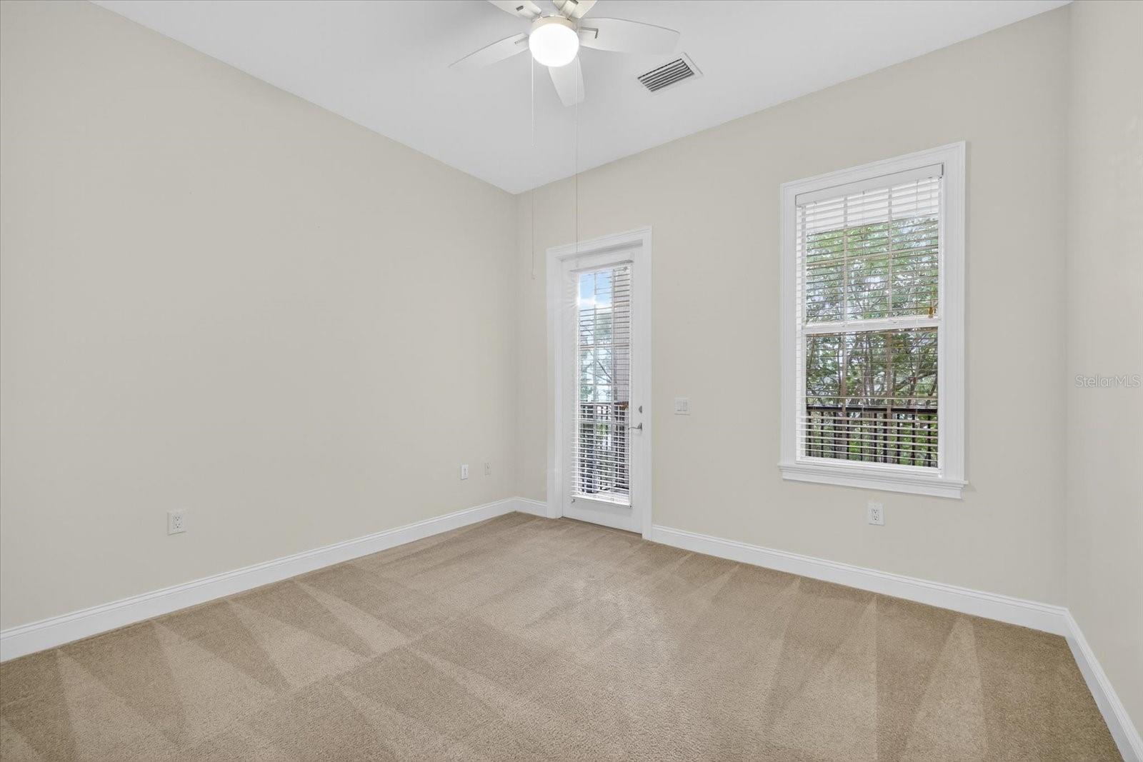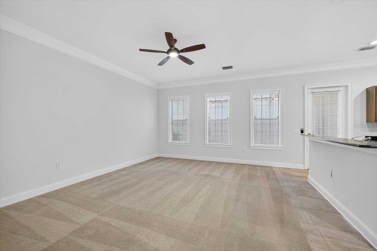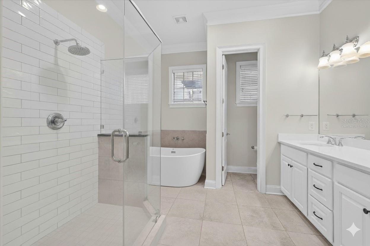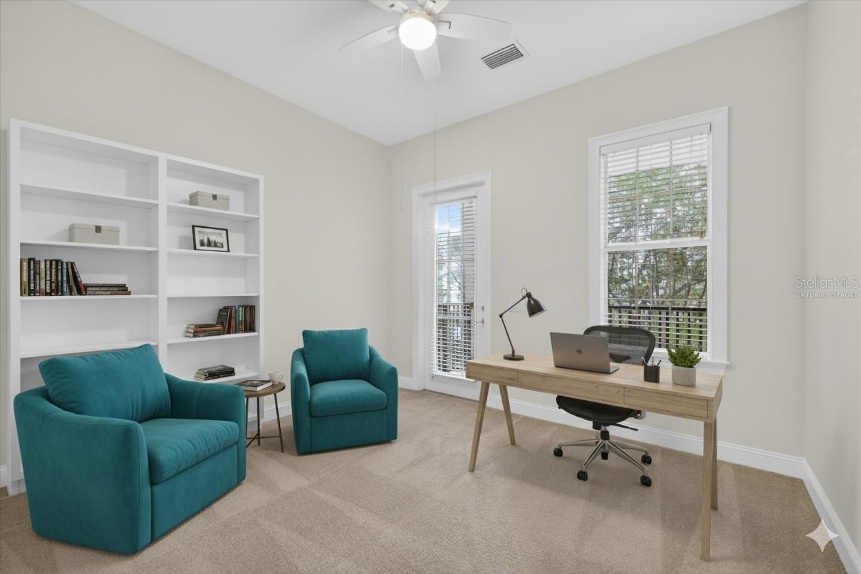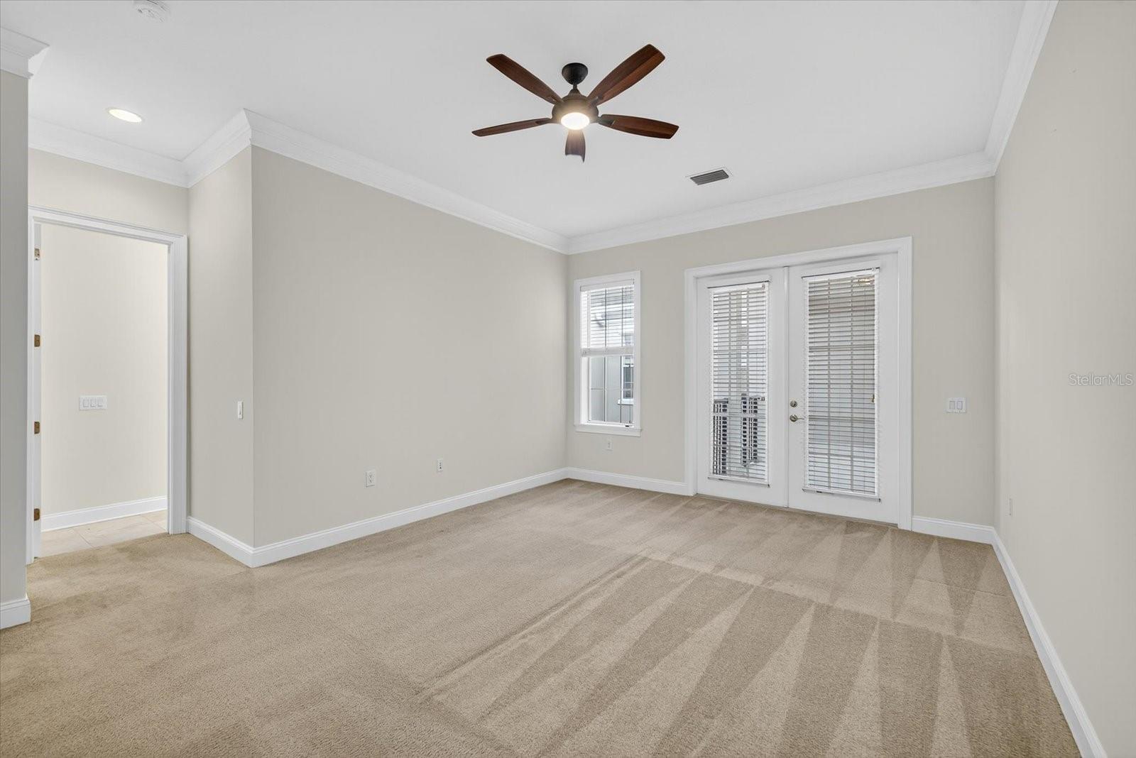 One or more photo(s) has been virtually staged. Nestled in Back Bay at Carillon Park, this oversized 4 Bedroom, 3.5 bath townhome presents a rare opportunity for luxury living. From the moment you approach the extended, welcoming front porch, you sense this home is special. Step inside and be greeted by a grand entryway where a statement staircase ascends before you. The formal living and dining area immediately captivates with its majestic high ceilings, elegant crown molding, and stately pillars. Bathed in natural light from large windows overlooking the parkway, this enticing space is designed for memorable gatherings, flowing seamlessly from living to dining, and serviced by a chic butler’s pantry. The heart of the home is the versatile kitchen connected to the family room with high ceilings and plenty of natural light. The kitchen features newer stainless steel appliances (2022) including a refrigerator with an instant-access door and a touch-activated light panel. Organization is effortless with a spacious pantry and generous cabinet space. The layout opens to the family room, ensuring the cook is always part of the conversation and can enjoy views of the private central courtyard. This is a spacious and comfortable area, wired for built in speakers. Here, you can easily slide open the large windows connected to the courtyard to invite a fresh, natural breeze. The quiet, paved courtyard is the home's hidden gem, a secluded sanctuary for alfresco dining, morning coffee, or grilling under the stars, all while infusing the surrounding rooms with abundant natural light. Upstairs, the private quarters are spacious and inviting. The primary suite boasts high ceilings and French doors that open to a romantic breezeway. This unique architectural feature connects to the in-law suite and overlooks the tranquil courtyard below. The en-suite bathroom is a spa-like haven with an extra-large layout, a separate soaking tub and shower, and includes a massive walk-in closet. Two additional generous bedrooms, complete with built-in closets and access to a charming shared upstairs balcony, provide perfect accommodations for family or a dedicated office space. A large laundry closet completes the upstairs space. The property’s most unique feature is the updated in-law suite. With its own private ground-level access, en-suite full bathroom (newly built in 2024), kitchenette area, and dedicated split AC unit, this space offers limitless possibilities. Whether a private haven for guests, a sprawling game room, a secluded home office, or a creative studio, its high ceilings and dual-aspect windows create a bright and inspiring atmosphere. The convenience extends to a two-car garage with high ceilings for ample storage. And as part of a premier HOA community, residents enjoy exclusive access to a swimming pool, clubhouse, and a fully-equipped gym. Located just off Ulmerton Road, this home offers walkable ease to local establishments. Stroll to local bars and restaurants, the local Publix, the upscale Echelon City Center, the newly opened Top Golf Saint Pete, or enjoy the serene walking paths around Carillon Lake. With only one stoplight between your driveway and Tampa International Airport, travel is a breeze. Enjoy a short drive to the vibrant waterfront of Downtown St. Petersburg or a small commute to Downtown Tampa. Your central location in Pinellas County means the Gulf beaches and premier shopping are just a short drive away.