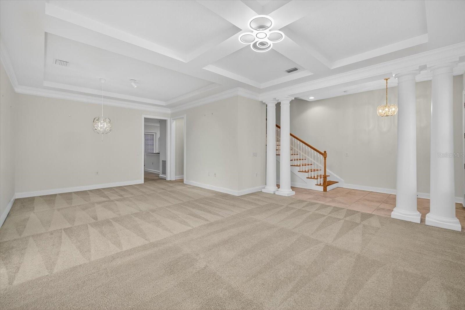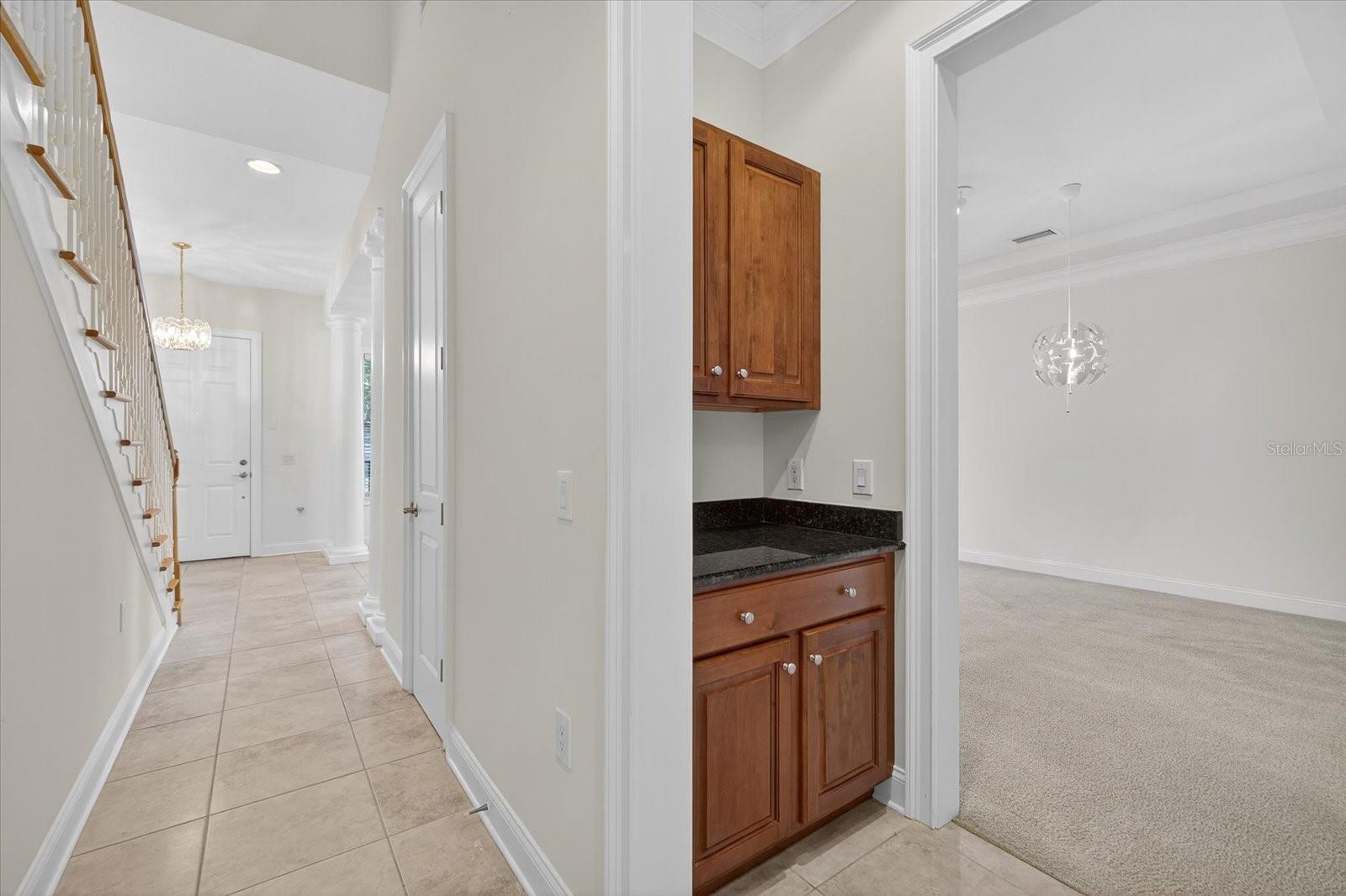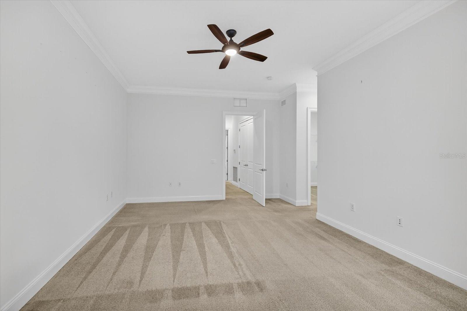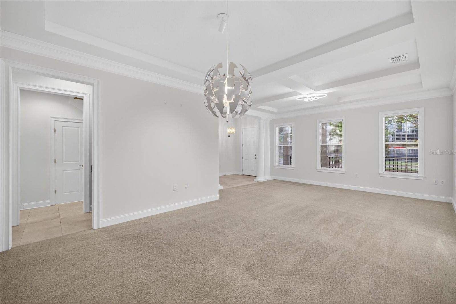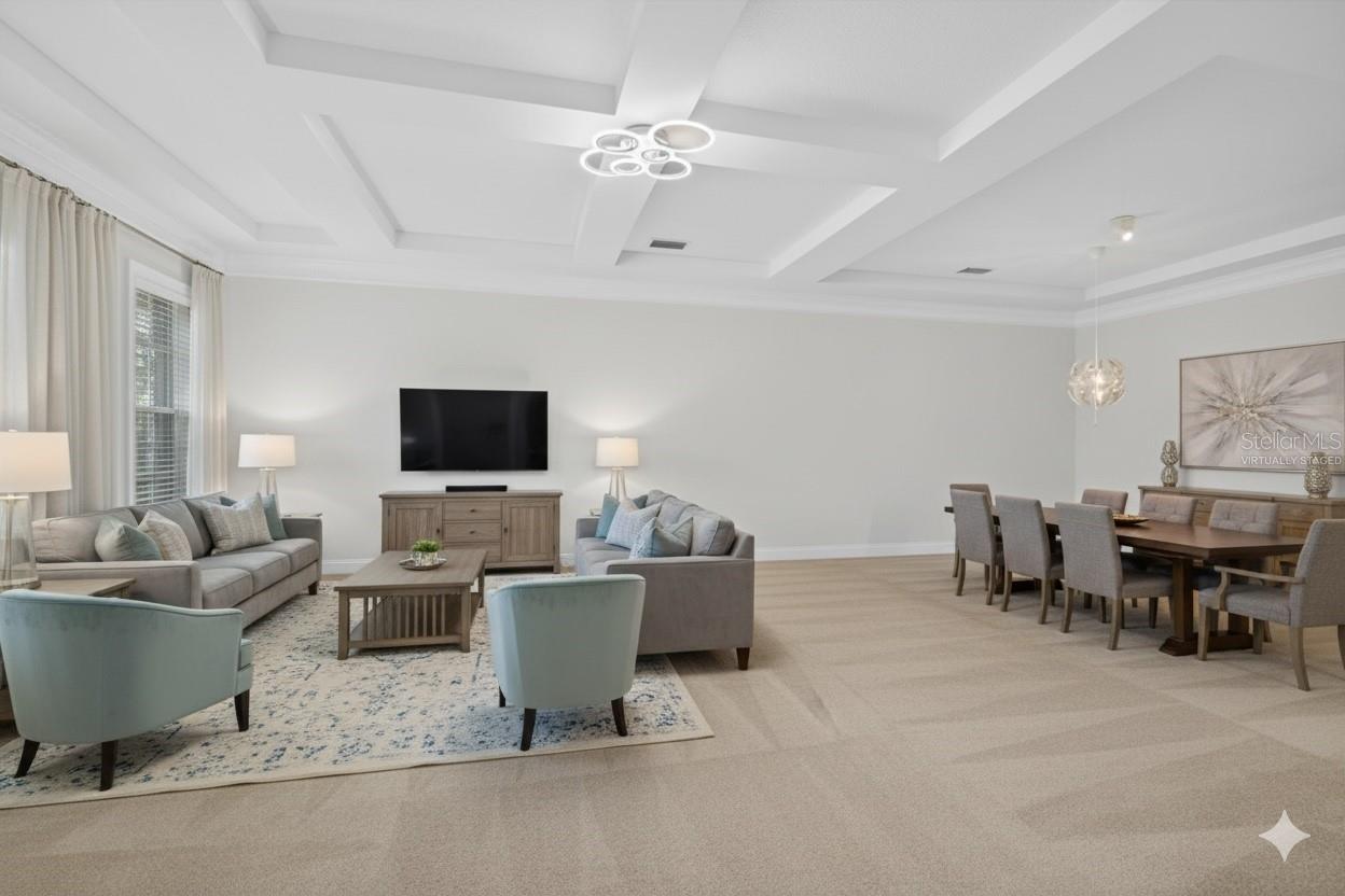 One or more photo(s) has been virtually staged. Nestled in Back Bay at Carillon Park, this oversized 4 Bedroom, 3.5 bath townhome presents a rare opportunity for luxury living. From the moment you approach the extended, welcoming front porch, you sense this home is special. Step inside and be greeted by a grand entryway where a statement staircase ascends before you. The formal living and dining area immediately captivates with its majestic high ceilings, elegant crown molding, and stately pillars. Bathed in natural light from large windows overlooking the parkway, this enticing space is designed for memorable gatherings, flowing seamlessly from living to dining, and serviced by a chic butler’s pantry. The heart of the home is the versatile kitchen connected to the family room with high ceilings and plenty of natural light. The kitchen features newer stainless steel appliances (2022) including a refrigerator with an instant-access door and a touch-activated light panel. Organization is effortless with a spacious pantry and generous cabinet space. The layout opens to the family room, ensuring the cook is always part of the conversation and can enjoy views of the private central courtyard. This is a spacious and comfortable area, wired for built in speakers. Here, you can easily slide open the large windows connected to the courtyard to invite a fresh, natural breeze. The quiet, paved courtyard is the home's hidden gem, a secluded sanctuary for alfresco dining, morning coffee, or grilling under the stars, all while infusing the surrounding rooms with abundant natural light. Upstairs, the private quarters are spacious and inviting. The primary suite boasts high ceilings and French doors that open to a romantic breezeway. This unique architectural feature connects to the in-law suite and overlooks the tranquil courtyard below. The en-suite bathroom is a spa-like haven with an extra-large layout, a separate soaking tub and shower, and includes a massive walk-in closet. Two additional generous bedrooms, complete with built-in closets and access to a charming shared upstairs balcony, provide perfect accommodations for family or a dedicated office space. A large laundry closet completes the upstairs space. The property’s most unique feature is the updated in-law suite. With its own private ground-level access, en-suite full bathroom (newly built in 2024), kitchenette area, and dedicated split AC unit, this space offers limitless possibilities. Whether a private haven for guests, a sprawling game room, a secluded home office, or a creative studio, its high ceilings and dual-aspect windows create a bright and inspiring atmosphere. The convenience extends to a two-car garage with high ceilings for ample storage. And as part of a premier HOA community, residents enjoy exclusive access to a swimming pool, clubhouse, and a fully-equipped gym. Located just off Ulmerton Road, this home offers walkable ease to local establishments. Stroll to local bars and restaurants, the local Publix, the upscale Echelon City Center, the newly opened Top Golf Saint Pete, or enjoy the serene walking paths around Carillon Lake. With only one stoplight between your driveway and Tampa International Airport, travel is a breeze. Enjoy a short drive to the vibrant waterfront of Downtown St. Petersburg or a small commute to Downtown Tampa. Your central location in Pinellas County means the Gulf beaches and premier shopping are just a short drive away.