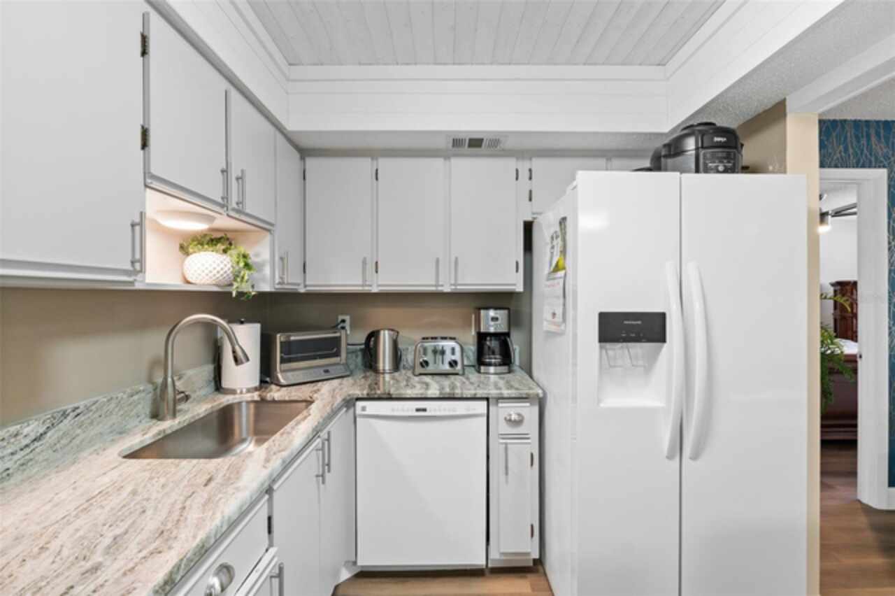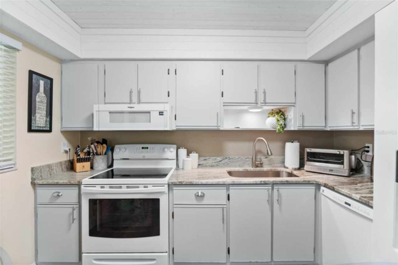 CHARMING GEM of a condo in the beautiful Oaks IV community! This second-floor 3/2 unit has upgrades and extra special details galore. Walk through the front door into a bright kitchen with beautiful stone-brick facade L-shaped half-wall. Luxurious granite countertops and solid wood cabinets. The living room is spacious and features a built-in electric heater with color-changing effects. The primary bedroom has an en suite bathroom. Two additional bedrooms share a second guest bathroom. Laminate flooring throughout. Stacked washer and dryer housed in interior closet. TVs convey with purchase of this home. Furnishings are negotiable. Newer appliances: water heater, washer and dryer are only a few months old. Refrigerator is one year. Well-maintained and nicely decorated. Mature oak trees add beauty and shade to The Oaks IV. These gorgeous trees make walking around the complex a delightful activity. Amenities include a clubhouse, picnic areas, shuffleboard courts, a heated swimming pool, and walking trails. Clubs abound and there are plenty of activities to fill up your days. Located in the heart of Port Charlotte, The Oaks IV is close to shopping, dining, medical centers, and waterfront parks. A short drive over the Peace River bridge gets you to Downtown Punta Gorda and its myriad top-notch restaurants. Don't wait--schedule your viewing today!