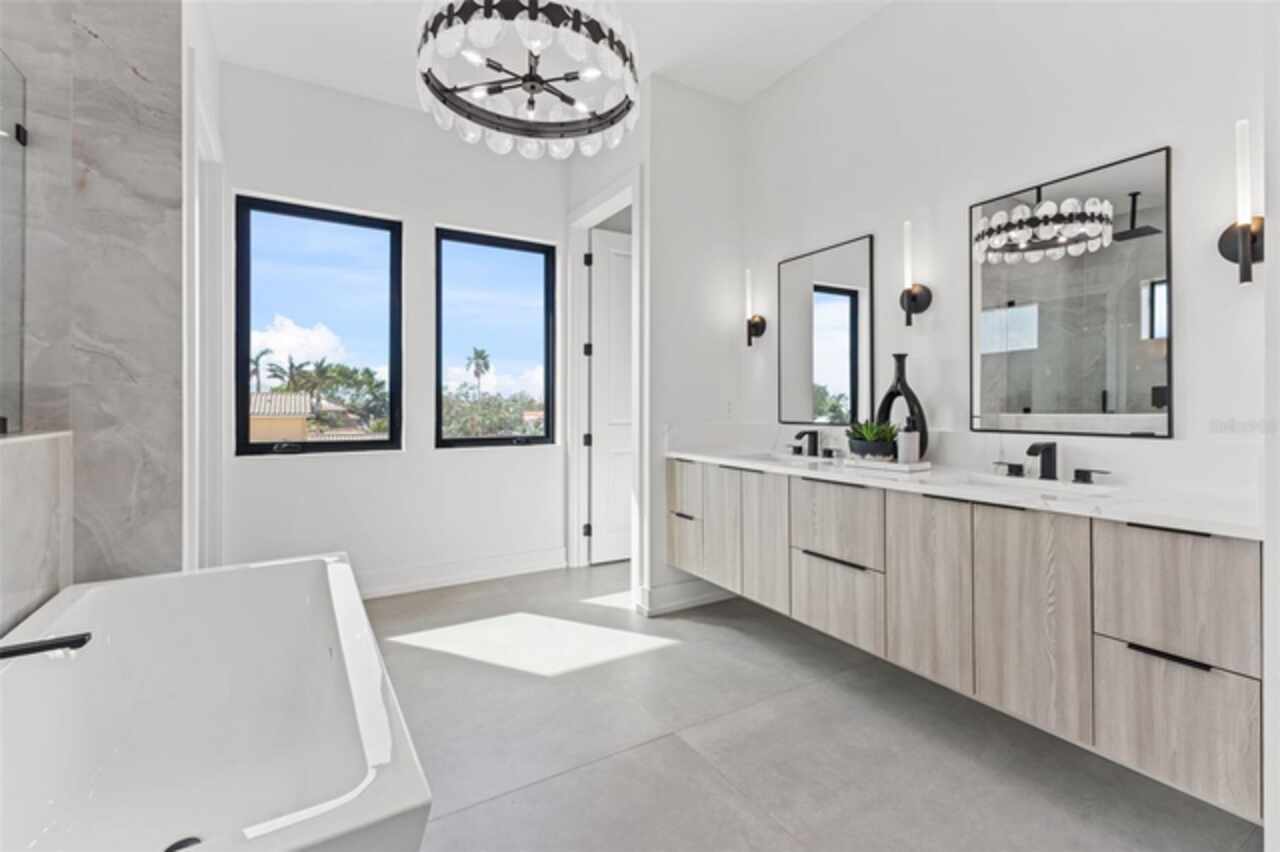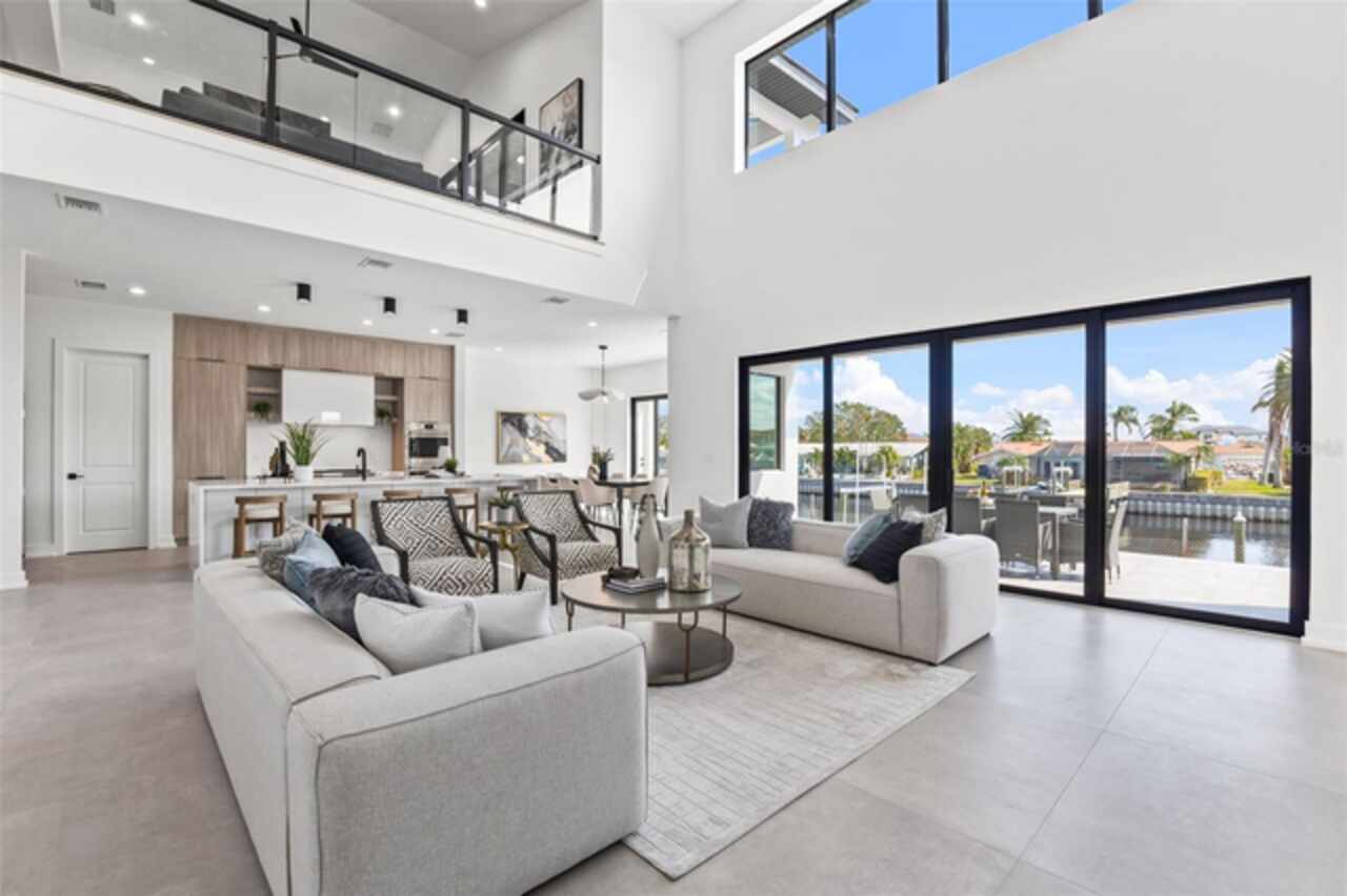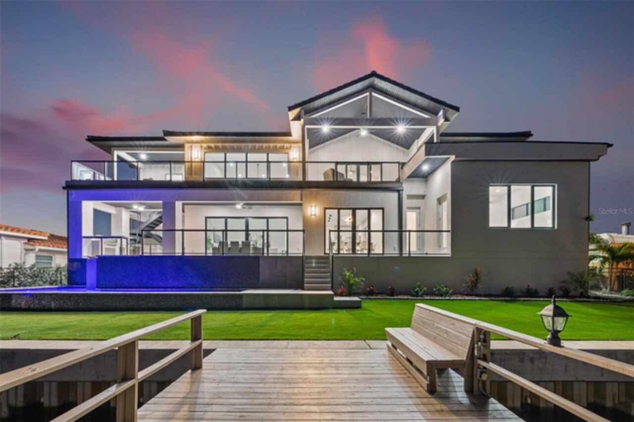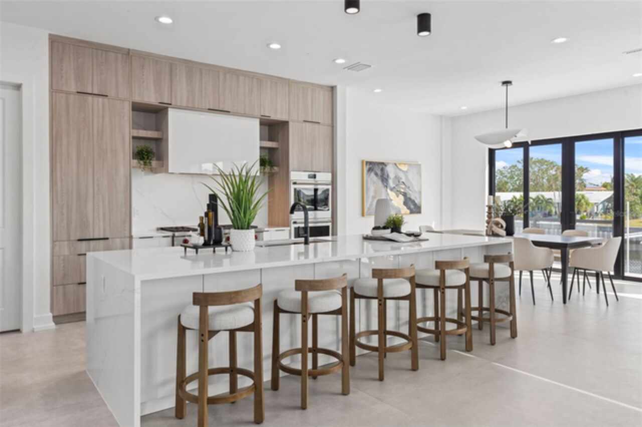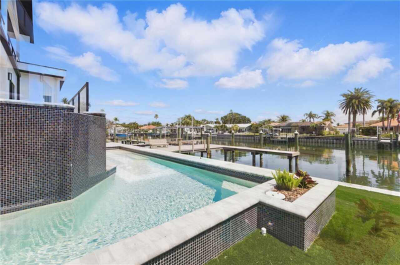 Back on market due to buyer issues. Experience modern waterfront living at its finest in this brand-new luxury home offering 5 bedrooms, 6 full baths, 2 half baths, and a 4-car garage on protected sailboat water with breathtaking open bay views. Boasting 5, 600+ square feet of living space, this custom-built residence blends timeless design with cutting-edge features in one of Northeast St. Petersburg’s most desirable neighborhoods. Step through the grand entryway into a light-filled open floor plan featuring a 22-foot ceiling, a dramatic wall of glass doors, and seamless indoor-outdoor living with panoramic water views. The gourmet chef’s kitchen showcases top-of-the-line Wolf and Bosch appliances, a massive 16-foot quartz island with seating for six, custom cabinetry, and a walk-in pantry with prep station—perfect for entertaining. Enjoy formal dining with waterfront views, or step outside to the resort-style deck with a heated pool, spa, and outdoor kitchen, ideal for al fresco dining and sunset cocktails overlooking the bay. This exceptional home features two luxurious owner’s suites (one on each level) with spa-inspired baths, freestanding soaking tubs, dual vanities, quartz countertops, and frameless glass showers. Each additional bedroom includes an en-suite bath, providing total comfort and privacy for family or guests. Upstairs, a spacious entertainment lounge with bar, wine refrigerator, and glass-enclosed wine display opens to a private terrace with stunning views. A bonus room offers flexible use as a gym, theater, or game room, and a dedicated office on the main floor easily converts to a sixth bedroom. Additional highlights include energy-efficient construction, impact-rated windows and doors and smart home technology with integrated lighting and sound. Located minutes from vibrant Downtown St. Petersburg—known for its waterfront parks, dining, shopping, art scene, and walkable urban lifestyle, this home offers the ultimate luxury coastal lifestyle—combining elegance, comfort, and convenience. Schedule your private showing today and discover the best of St. Pete waterfront living!