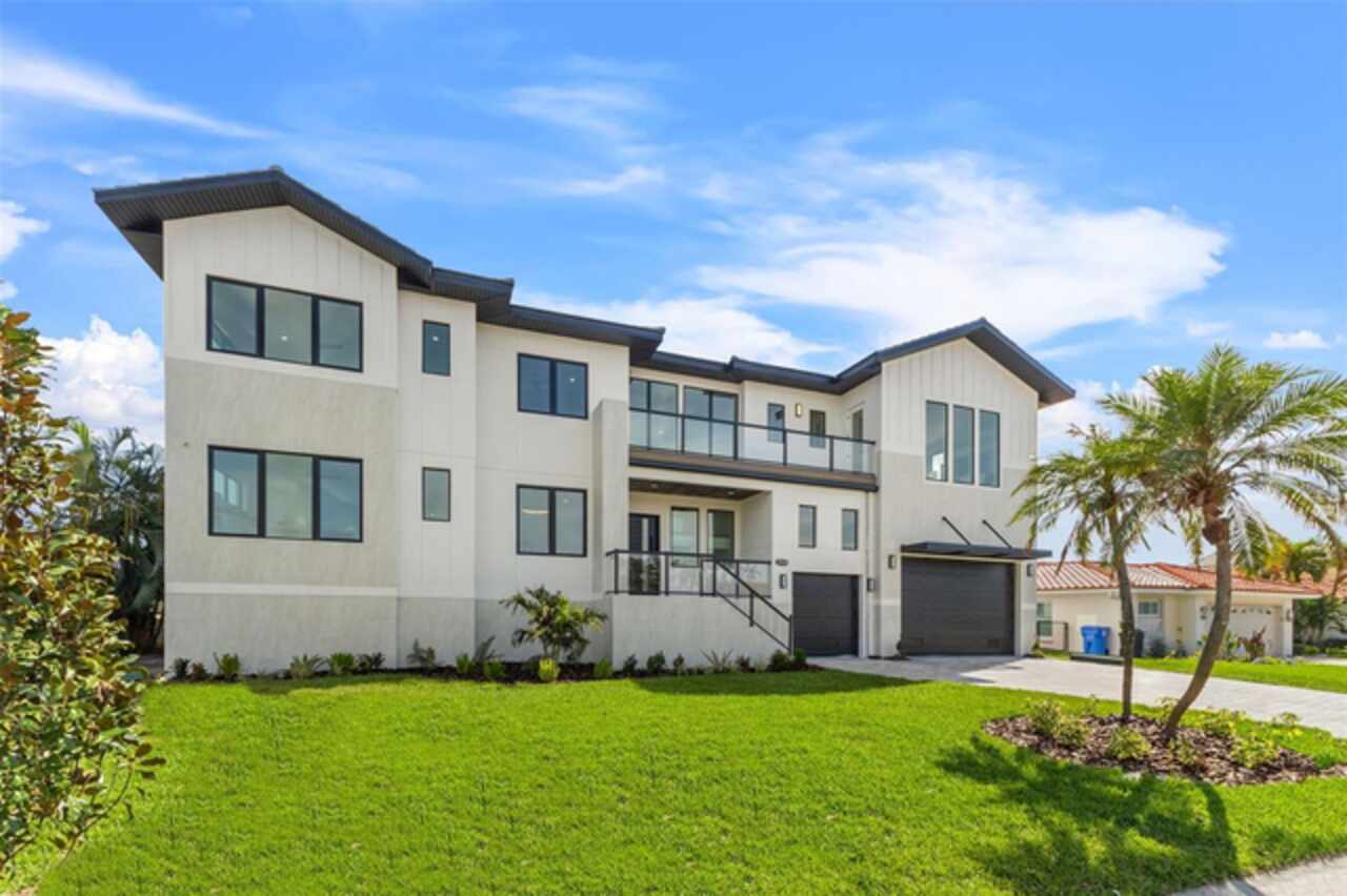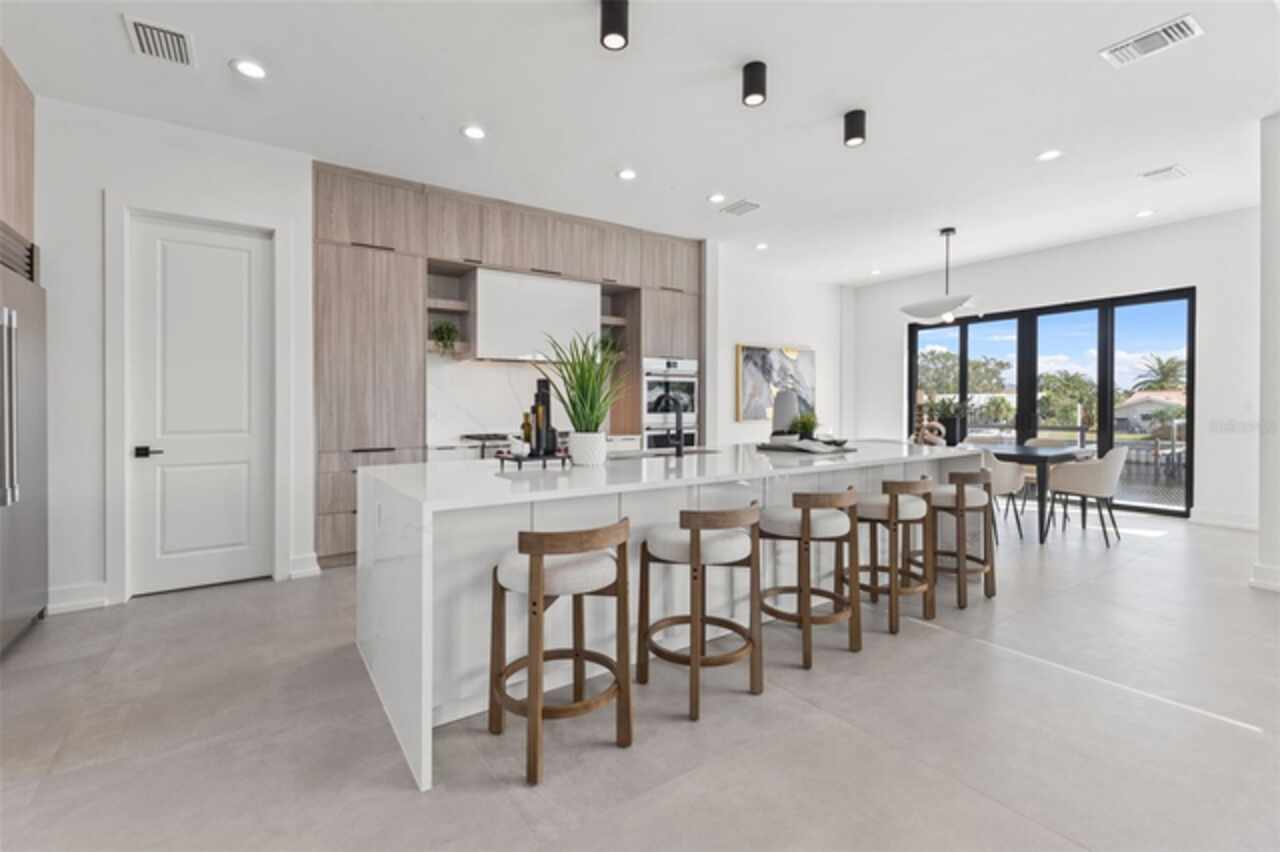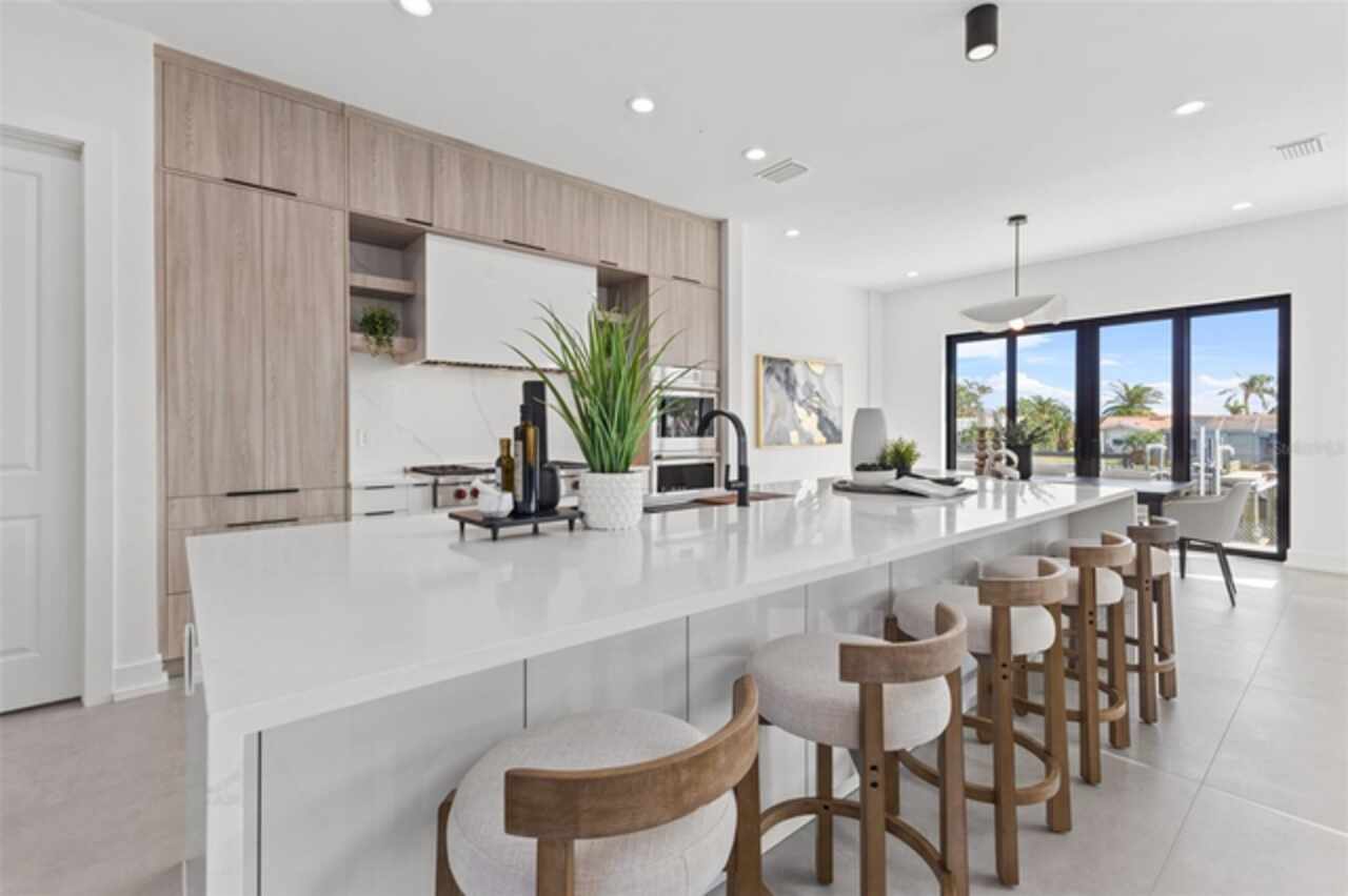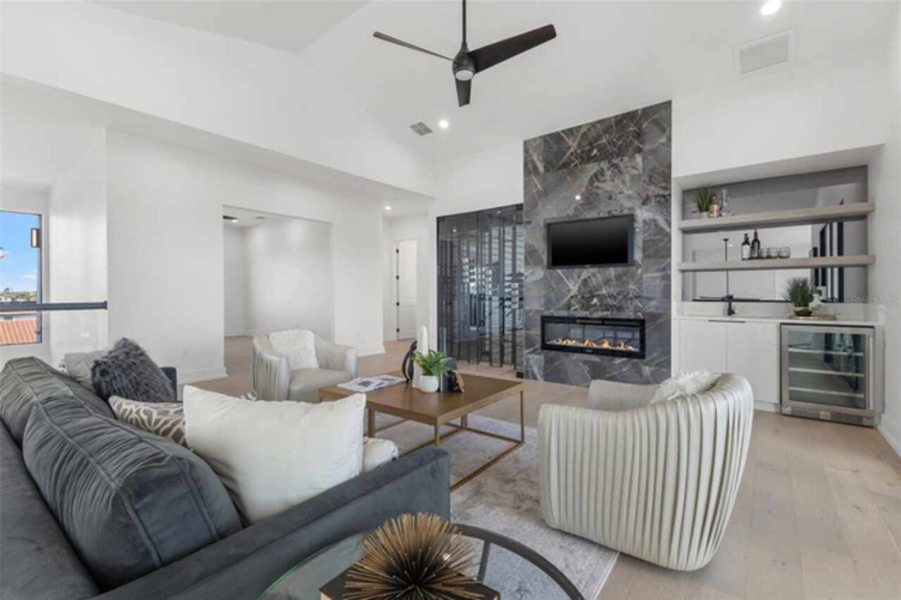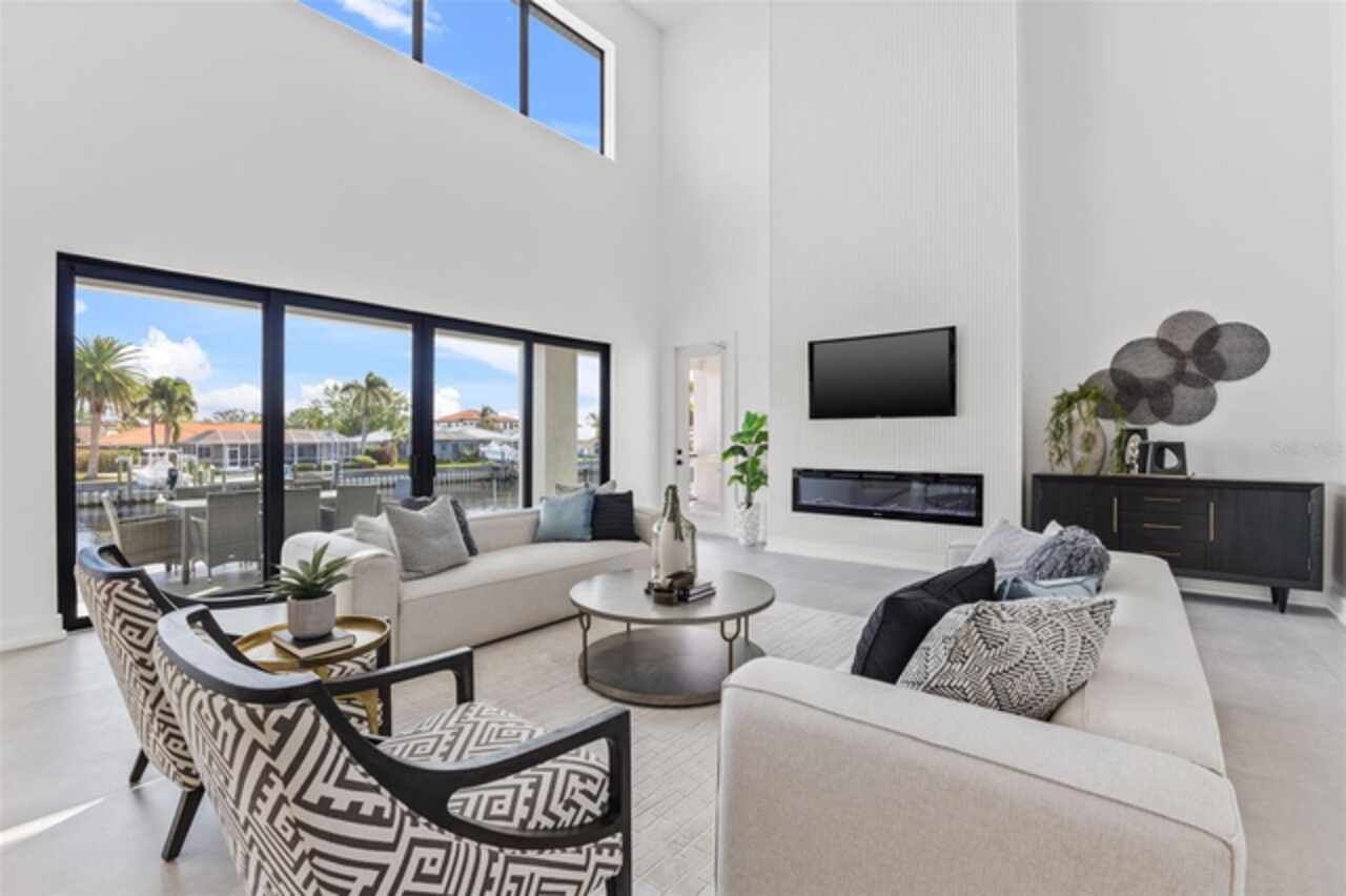 Back on market due to buyer issues. Experience modern waterfront living at its finest in this brand-new luxury home offering 5 bedrooms, 6 full baths, 2 half baths, and a 4-car garage on protected sailboat water with breathtaking open bay views. Boasting 5, 600+ square feet of living space, this custom-built residence blends timeless design with cutting-edge features in one of Northeast St. Petersburg’s most desirable neighborhoods. Step through the grand entryway into a light-filled open floor plan featuring a 22-foot ceiling, a dramatic wall of glass doors, and seamless indoor-outdoor living with panoramic water views. The gourmet chef’s kitchen showcases top-of-the-line Wolf and Bosch appliances, a massive 16-foot quartz island with seating for six, custom cabinetry, and a walk-in pantry with prep station—perfect for entertaining. Enjoy formal dining with waterfront views, or step outside to the resort-style deck with a heated pool, spa, and outdoor kitchen, ideal for al fresco dining and sunset cocktails overlooking the bay. This exceptional home features two luxurious owner’s suites (one on each level) with spa-inspired baths, freestanding soaking tubs, dual vanities, quartz countertops, and frameless glass showers. Each additional bedroom includes an en-suite bath, providing total comfort and privacy for family or guests. Upstairs, a spacious entertainment lounge with bar, wine refrigerator, and glass-enclosed wine display opens to a private terrace with stunning views. A bonus room offers flexible use as a gym, theater, or game room, and a dedicated office on the main floor easily converts to a sixth bedroom. Additional highlights include energy-efficient construction, impact-rated windows and doors and smart home technology with integrated lighting and sound. Located minutes from vibrant Downtown St. Petersburg—known for its waterfront parks, dining, shopping, art scene, and walkable urban lifestyle, this home offers the ultimate luxury coastal lifestyle—combining elegance, comfort, and convenience. Schedule your private showing today and discover the best of St. Pete waterfront living!