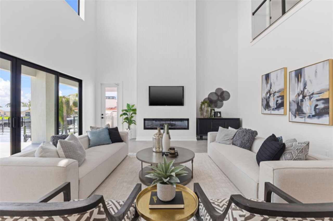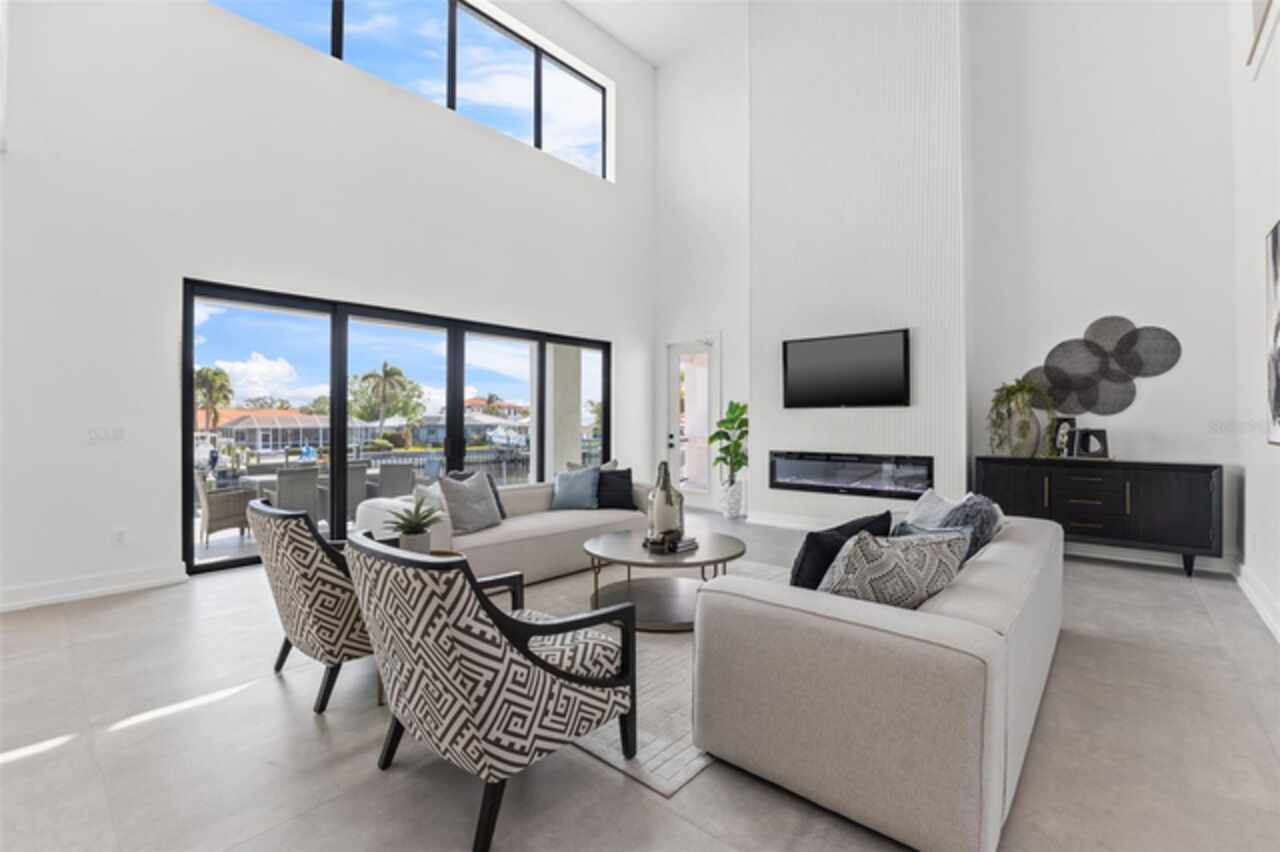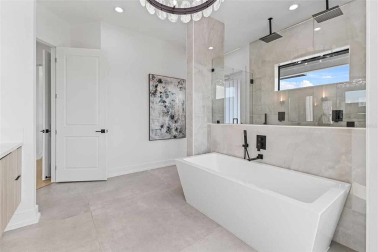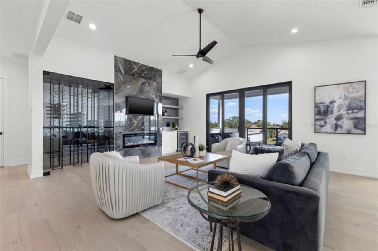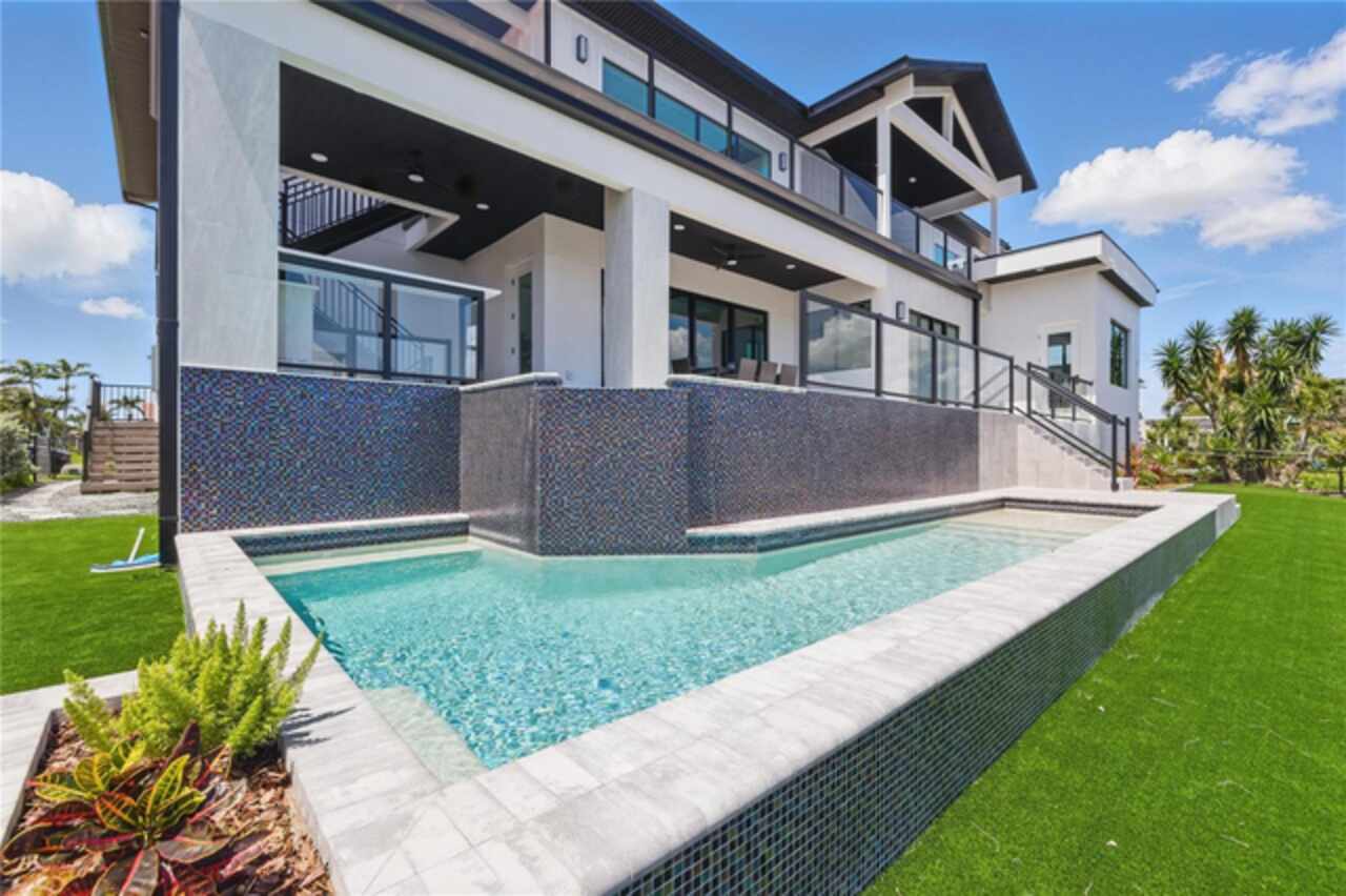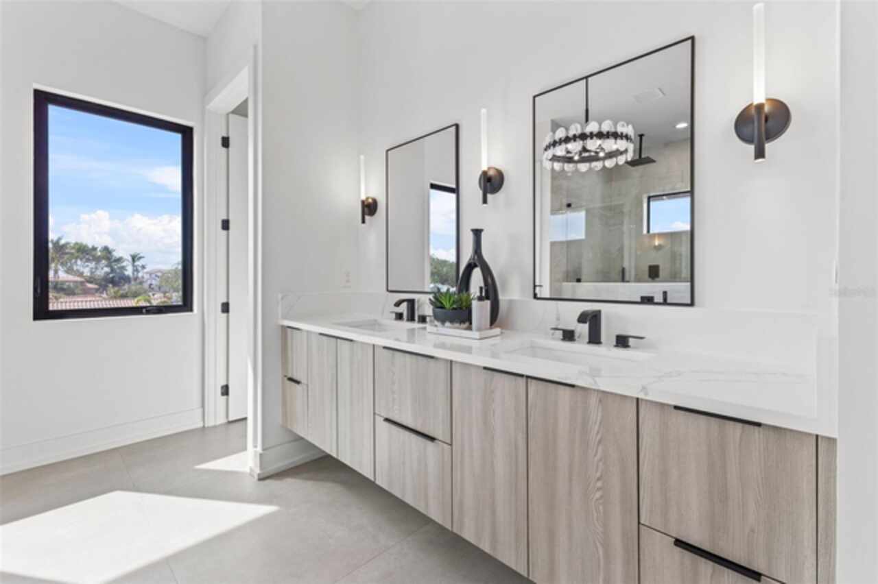 Back on market due to buyer issues. Experience modern waterfront living at its finest in this brand-new luxury home offering 5 bedrooms, 6 full baths, 2 half baths, and a 4-car garage on protected sailboat water with breathtaking open bay views. Boasting 5, 600+ square feet of living space, this custom-built residence blends timeless design with cutting-edge features in one of Northeast St. Petersburg’s most desirable neighborhoods. Step through the grand entryway into a light-filled open floor plan featuring a 22-foot ceiling, a dramatic wall of glass doors, and seamless indoor-outdoor living with panoramic water views. The gourmet chef’s kitchen showcases top-of-the-line Wolf and Bosch appliances, a massive 16-foot quartz island with seating for six, custom cabinetry, and a walk-in pantry with prep station—perfect for entertaining. Enjoy formal dining with waterfront views, or step outside to the resort-style deck with a heated pool, spa, and outdoor kitchen, ideal for al fresco dining and sunset cocktails overlooking the bay. This exceptional home features two luxurious owner’s suites (one on each level) with spa-inspired baths, freestanding soaking tubs, dual vanities, quartz countertops, and frameless glass showers. Each additional bedroom includes an en-suite bath, providing total comfort and privacy for family or guests. Upstairs, a spacious entertainment lounge with bar, wine refrigerator, and glass-enclosed wine display opens to a private terrace with stunning views. A bonus room offers flexible use as a gym, theater, or game room, and a dedicated office on the main floor easily converts to a sixth bedroom. Additional highlights include energy-efficient construction, impact-rated windows and doors and smart home technology with integrated lighting and sound. Located minutes from vibrant Downtown St. Petersburg—known for its waterfront parks, dining, shopping, art scene, and walkable urban lifestyle, this home offers the ultimate luxury coastal lifestyle—combining elegance, comfort, and convenience. Schedule your private showing today and discover the best of St. Pete waterfront living!