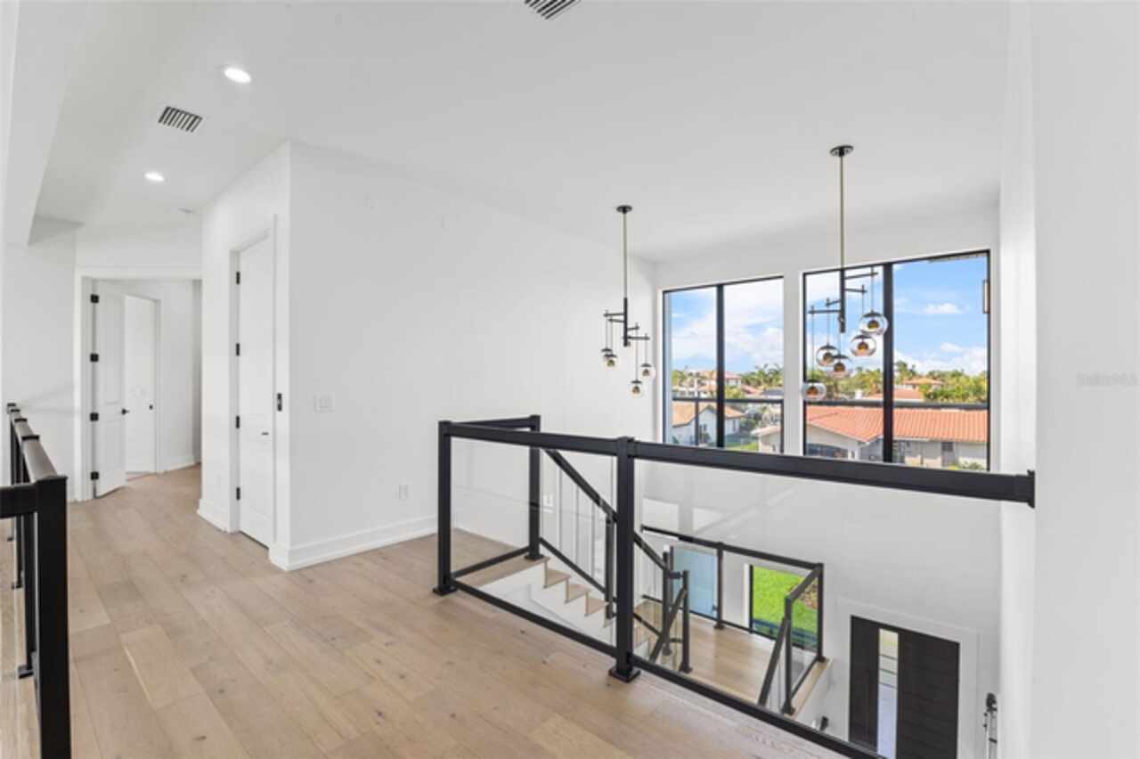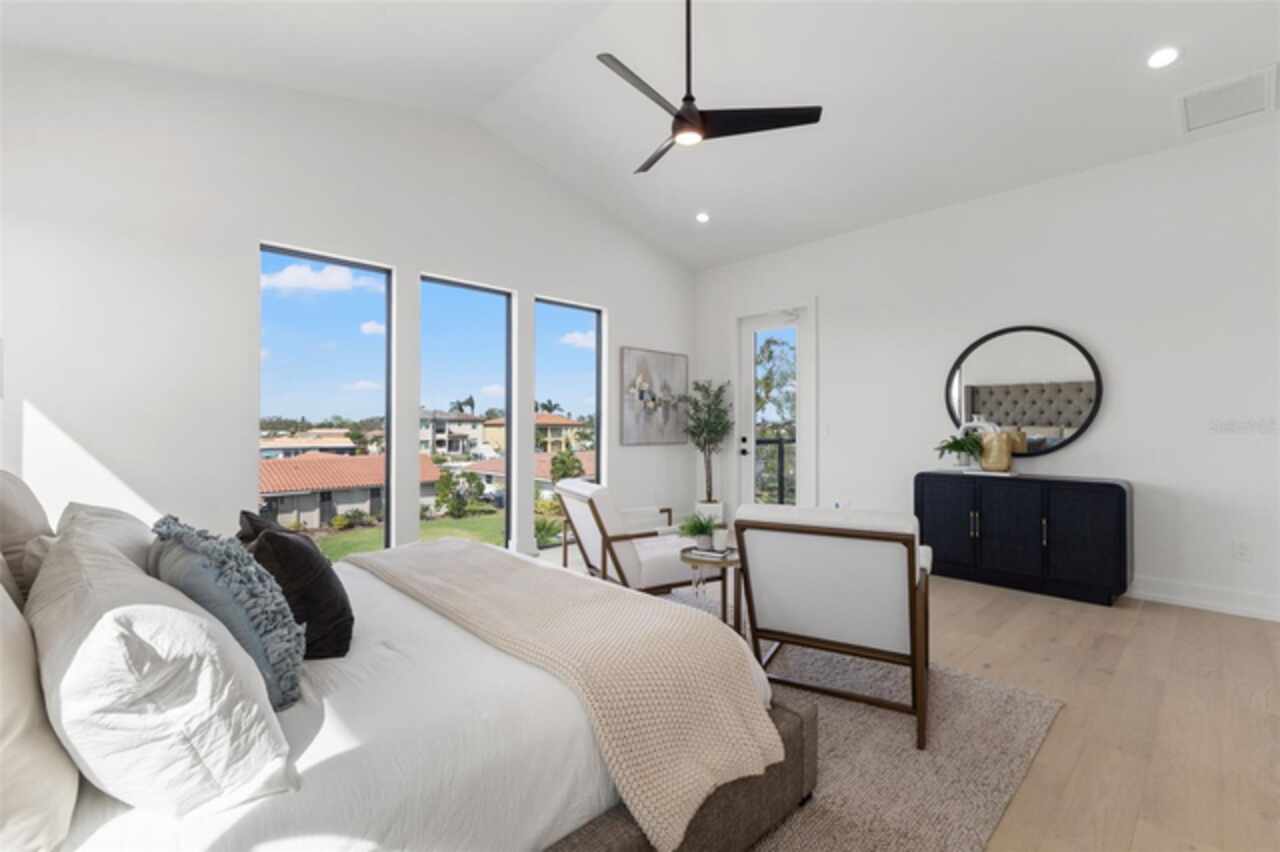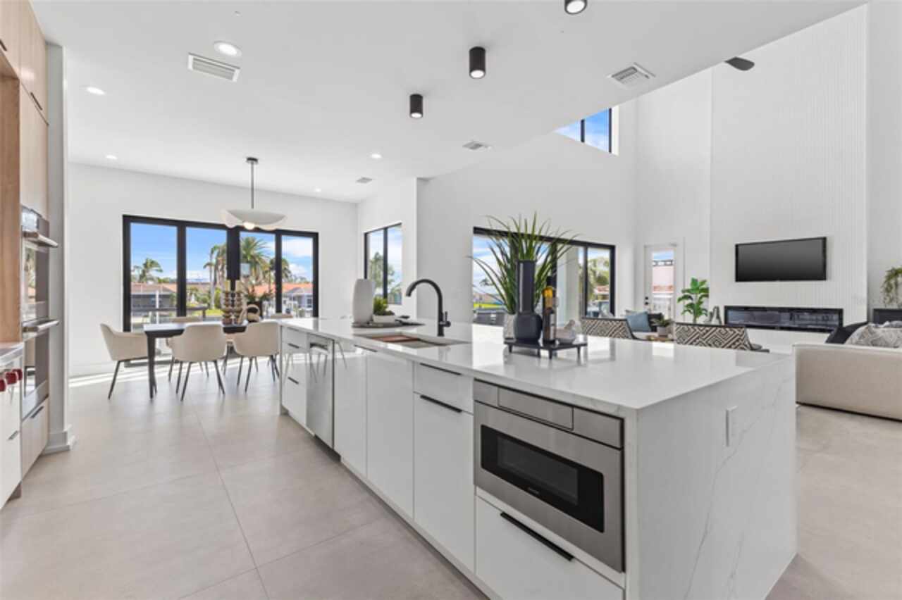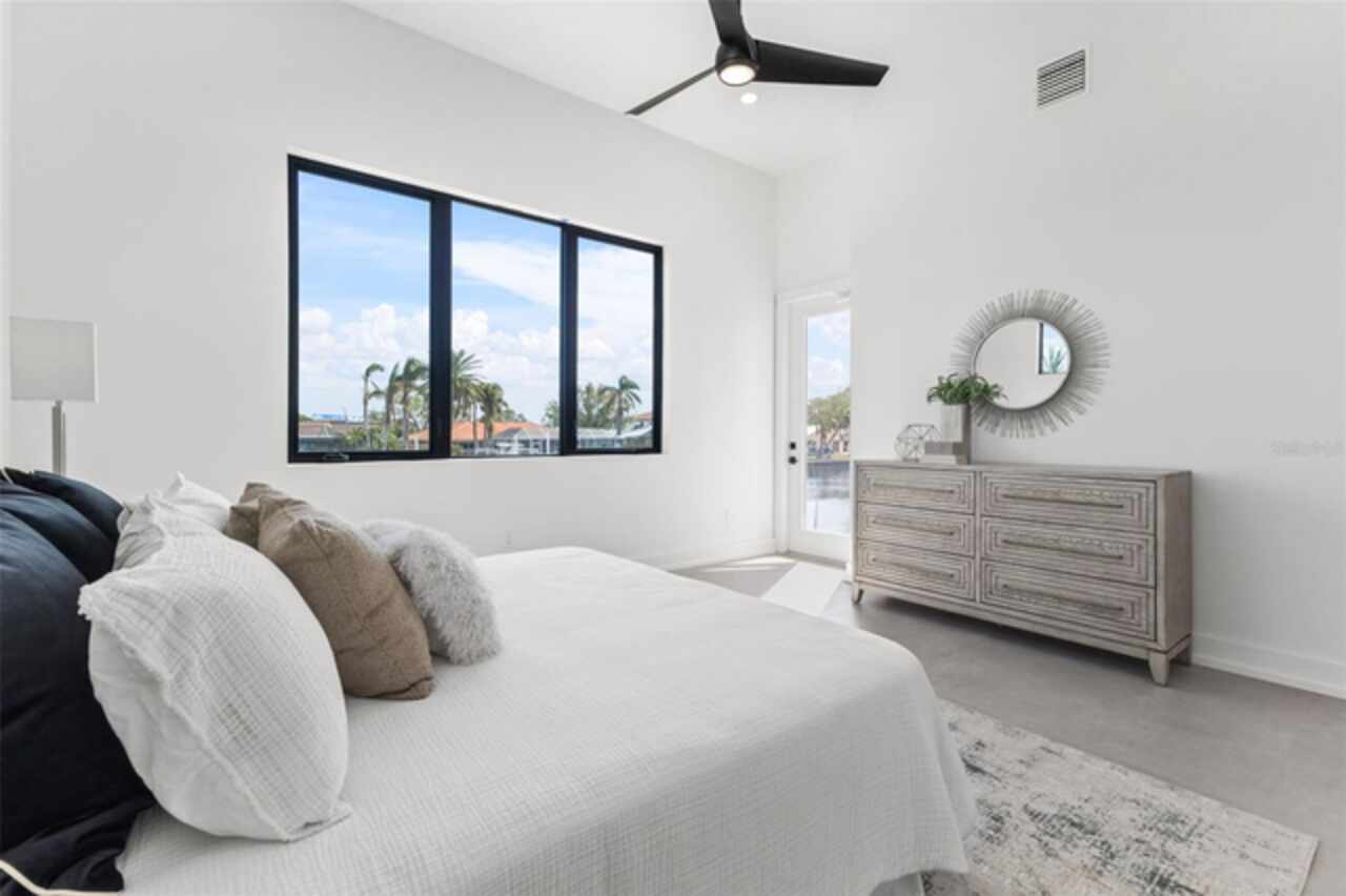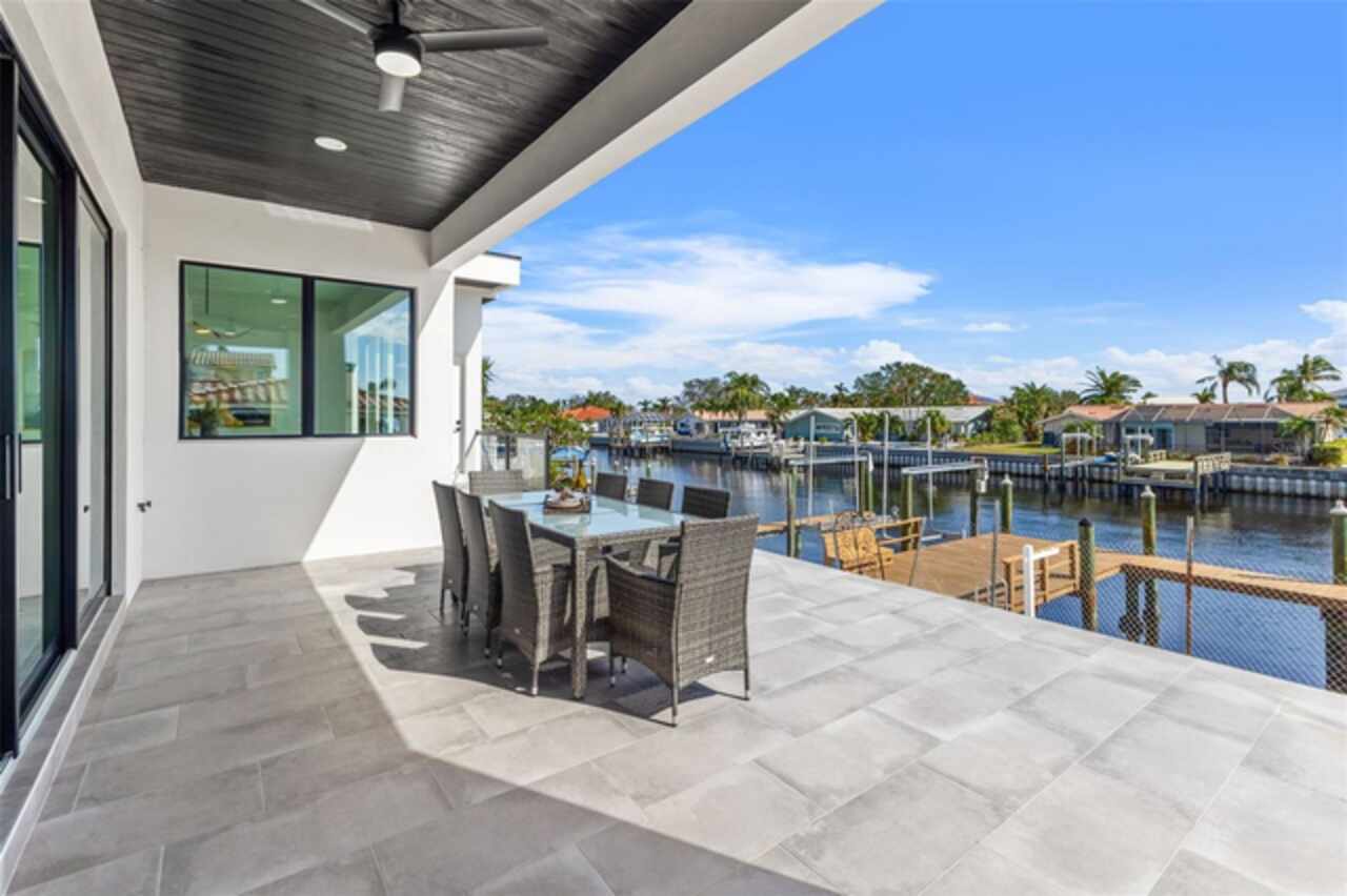 Back on market due to buyer issues. Experience modern waterfront living at its finest in this brand-new luxury home offering 5 bedrooms, 6 full baths, 2 half baths, and a 4-car garage on protected sailboat water with breathtaking open bay views. Boasting 5, 600+ square feet of living space, this custom-built residence blends timeless design with cutting-edge features in one of Northeast St. Petersburg’s most desirable neighborhoods. Step through the grand entryway into a light-filled open floor plan featuring a 22-foot ceiling, a dramatic wall of glass doors, and seamless indoor-outdoor living with panoramic water views. The gourmet chef’s kitchen showcases top-of-the-line Wolf and Bosch appliances, a massive 16-foot quartz island with seating for six, custom cabinetry, and a walk-in pantry with prep station—perfect for entertaining. Enjoy formal dining with waterfront views, or step outside to the resort-style deck with a heated pool, spa, and outdoor kitchen, ideal for al fresco dining and sunset cocktails overlooking the bay. This exceptional home features two luxurious owner’s suites (one on each level) with spa-inspired baths, freestanding soaking tubs, dual vanities, quartz countertops, and frameless glass showers. Each additional bedroom includes an en-suite bath, providing total comfort and privacy for family or guests. Upstairs, a spacious entertainment lounge with bar, wine refrigerator, and glass-enclosed wine display opens to a private terrace with stunning views. A bonus room offers flexible use as a gym, theater, or game room, and a dedicated office on the main floor easily converts to a sixth bedroom. Additional highlights include energy-efficient construction, impact-rated windows and doors and smart home technology with integrated lighting and sound. Located minutes from vibrant Downtown St. Petersburg—known for its waterfront parks, dining, shopping, art scene, and walkable urban lifestyle, this home offers the ultimate luxury coastal lifestyle—combining elegance, comfort, and convenience. Schedule your private showing today and discover the best of St. Pete waterfront living!