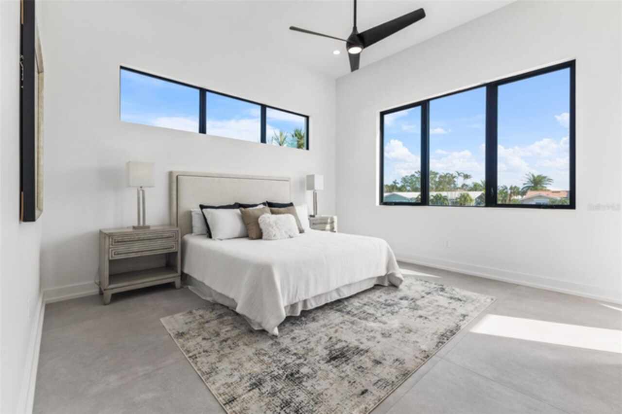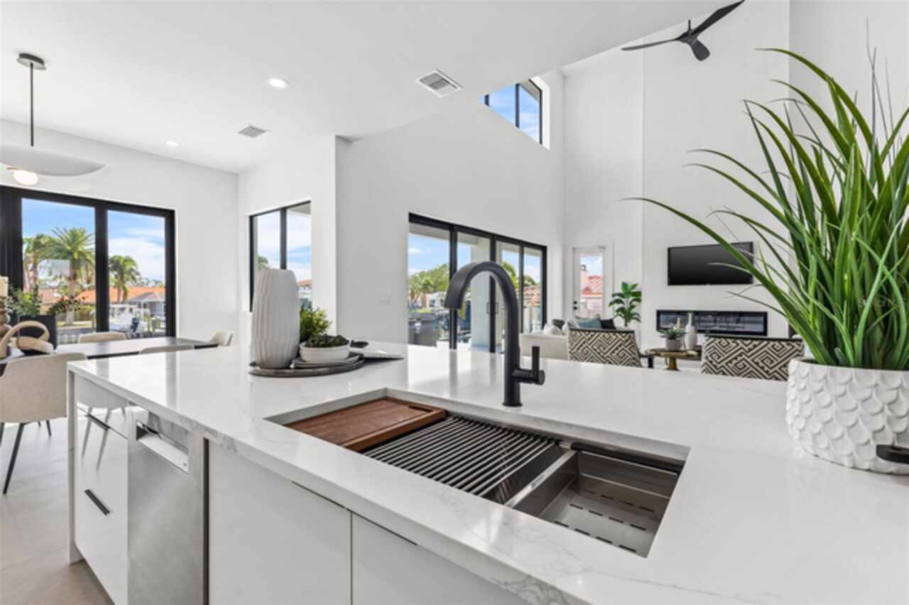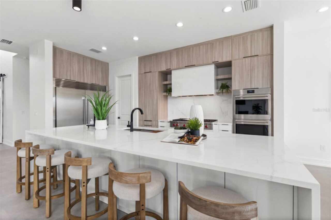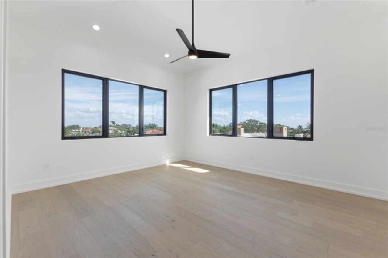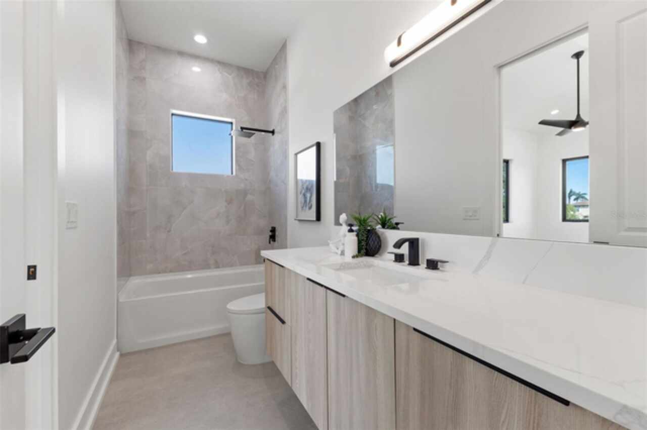 Back on market due to buyer issues. Experience modern waterfront living at its finest in this brand-new luxury home offering 5 bedrooms, 6 full baths, 2 half baths, and a 4-car garage on protected sailboat water with breathtaking open bay views. Boasting 5, 600+ square feet of living space, this custom-built residence blends timeless design with cutting-edge features in one of Northeast St. Petersburg’s most desirable neighborhoods. Step through the grand entryway into a light-filled open floor plan featuring a 22-foot ceiling, a dramatic wall of glass doors, and seamless indoor-outdoor living with panoramic water views. The gourmet chef’s kitchen showcases top-of-the-line Wolf and Bosch appliances, a massive 16-foot quartz island with seating for six, custom cabinetry, and a walk-in pantry with prep station—perfect for entertaining. Enjoy formal dining with waterfront views, or step outside to the resort-style deck with a heated pool, spa, and outdoor kitchen, ideal for al fresco dining and sunset cocktails overlooking the bay. This exceptional home features two luxurious owner’s suites (one on each level) with spa-inspired baths, freestanding soaking tubs, dual vanities, quartz countertops, and frameless glass showers. Each additional bedroom includes an en-suite bath, providing total comfort and privacy for family or guests. Upstairs, a spacious entertainment lounge with bar, wine refrigerator, and glass-enclosed wine display opens to a private terrace with stunning views. A bonus room offers flexible use as a gym, theater, or game room, and a dedicated office on the main floor easily converts to a sixth bedroom. Additional highlights include energy-efficient construction, impact-rated windows and doors and smart home technology with integrated lighting and sound. Located minutes from vibrant Downtown St. Petersburg—known for its waterfront parks, dining, shopping, art scene, and walkable urban lifestyle, this home offers the ultimate luxury coastal lifestyle—combining elegance, comfort, and convenience. Schedule your private showing today and discover the best of St. Pete waterfront living!