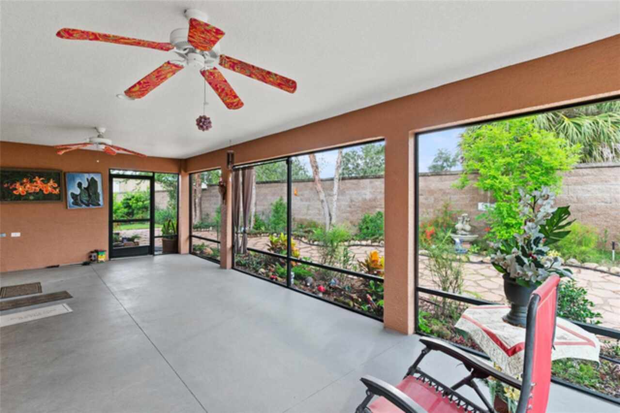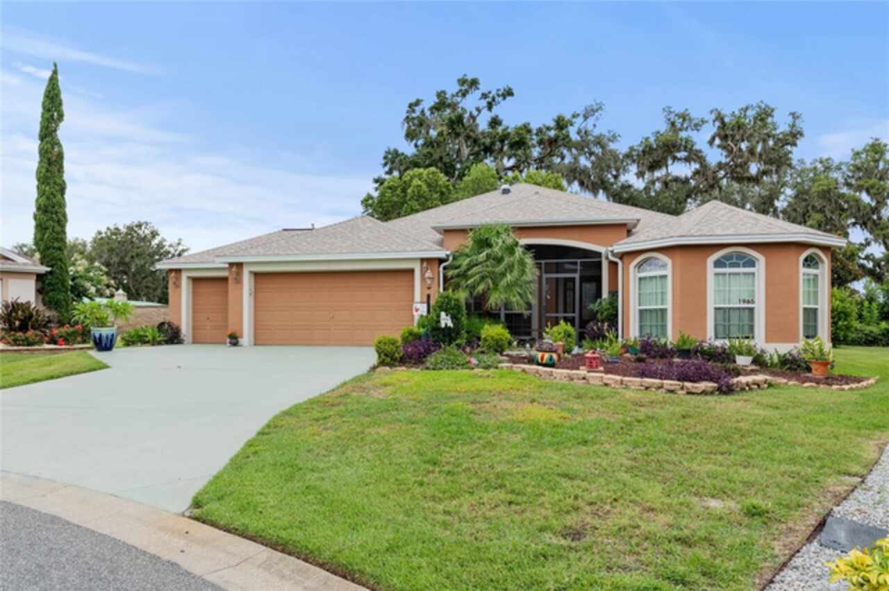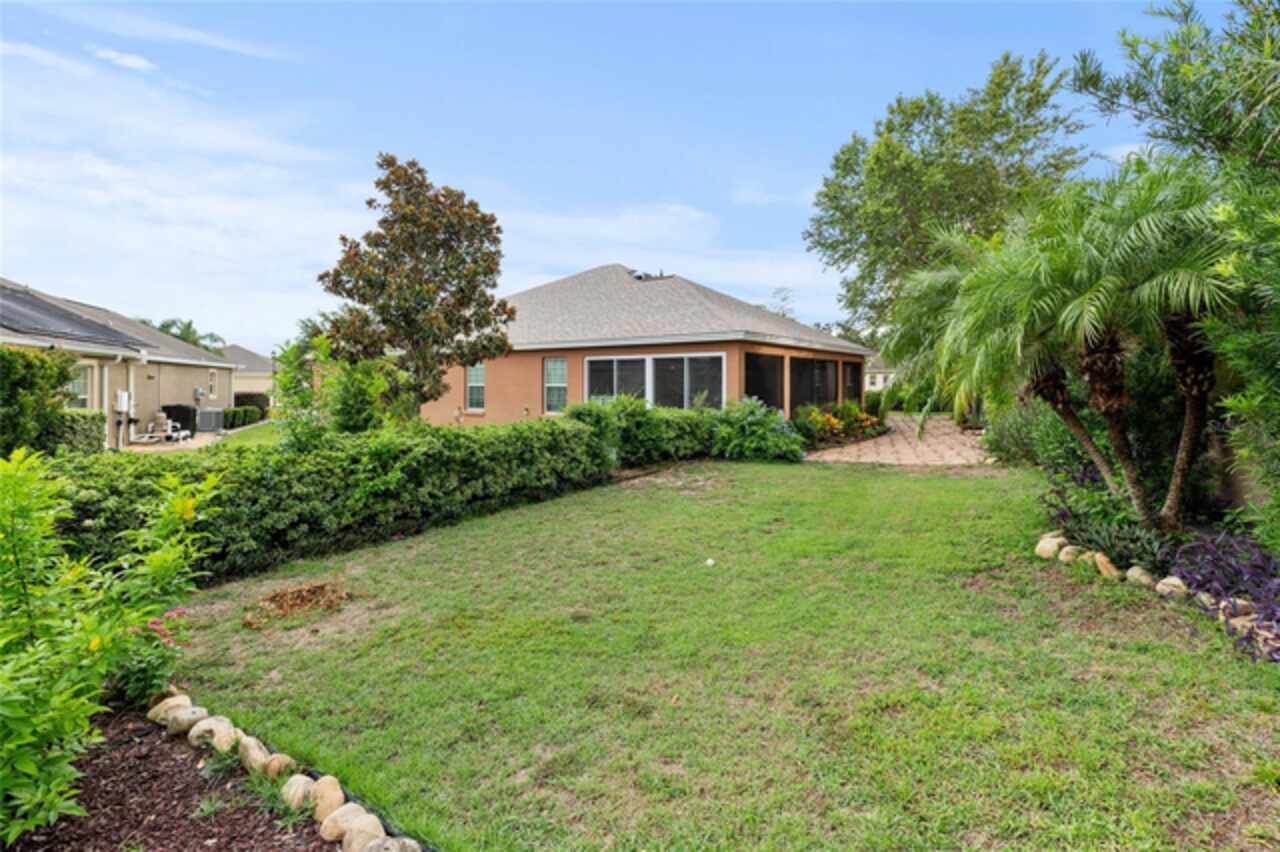 One or more photo(s) has been virtually staged. Welcome to your Gardenia model home in the Village of Lake Deaton!. . THERE IS EVEN ROOM FOR A POOL! This expanded residence has been freshly painted, with most rooms virtually staged to showcase its versatility. The front room offers endless possibilities—use it as a bedroom, family room, or even a cozy “man cave.” Step out onto the oversized lanai and enjoy gentle breezes while sipping your favorite beverage. Thoughtfully positioned, the home backs to no direct neighbors and is enhanced by a privacy wall, creating your own peaceful retreat Recent updates provide added peace of mind, including a brand-new roof and HVAC system (2025). Set on an oversized lot in a prime location, this home perfectly balances space, tranquility, and convenience. With modern updates, flexible living areas, and serene outdoor space, this Gardenia model is ready for you to move right in and start enjoying all The Villages lifestyle. The enhanced landscaping adds a touch of elegance to the exterior, while the spacious garage featuring epoxy flooring offers both functionality and style, perfect for hobbies or additional storage. An abundance of natural light flows through the open floor plan, creating a warm and inviting atmosphere throughout the home. The privacy wall on the lanai not only allows for serene moments of relaxation but also makes it an ideal space for entertaining guests. Additionally, the proximity to Brownwood Town Center and the neighborhood pool is a fantastic bonus for those leading an active lifestyle or seeking vibrant community involvement. With a bond balance of only $17, 569, this home represents an excellent opportunity for buyers looking to settle into a harmonious community while enjoying ample space and modern conveniences. With such appealing features, this Gardenia model is truly a gem waiting to welcome its new owners!