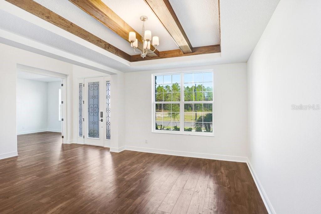 Do NOT miss out on the ONLY move in ready GRANDSAIL III in the highly desired village of Shortgrass in Two Rivers. **Since original photos were taken the sellers have professionally added wood beams at the dining and bonus room** This beautiful waterfront lot home has never been lived in and it is STUNNING!!! With 5, 452 square feet spread between 2 levels you'll find 6 bedrooms, 4 full bathrooms, 2 half baths, 2 laundry rooms and a 3 car tandem garage. Upon entering the foyer your gaze will immediately be drawn to the openness of the second level with vaulted ceilings, an upgraded staircase with wrought iron spindles that overlook the dramatic entrance. If generational living is your goal, the Grandsail floorplan could check all of your boxes. It features the primary suite downstairs with 1 additional bedroom in the opposite corner with another full bath & a walk-in shower. Prepared to be wowed as all the bathrooms have been tastefully upgraded with custom tile on walls & flooring that are sure to impress! The kitchen is a chef's delight. No detail has been overlooked, from the backsplash behind the vented hood, the waterfall center island, to the over-the range pot filler and the wine fridge in the butlers pantry...simply STUNNING!!! Feel the Spa Vibes upon entering your private en-suite. The primary bathroom features a huge walk-in shower with elegant tile to the ceiling and a stand-alone soaking tub that is sure to alleviate all the stresses of the day. His & Her sinks along with His & Her closets keep the fusing at bay:) This floorplan was built with functionality in mind; there are separate laundry rooms located on both levels so no more racing up & down the stairs. The second level is an entertainer's dream! A huge bonus room has limitless options. Already set up with a large island & wet bar plus additional counter and cabinet space put your ideas into motion. Want a private home theater or media room??? Say no more....double doors will open up to a blank canvas ready for you to design! Four additional large bedrooms are located upstairs with walk-in closets & impressive Jack & Jill bathrooms. Another oversized half bath is also located upstairs for guests. If privacy is desired, then this location is ideal to relax and unwind. Located on a serene pond overlooking conservation, you'll have nothing but birds and turtles staring back while enjoying your morning cup of joe or evening merlot. This home features numerous upgrades such as sconce prewires at foyer, ceiling fan prewires in multiple locations, 5.1 theater pre-wire, 80amp pool pre-wire, additional gas drop, rear sliders ILO windows, outdoor kitchen rough-in, gourmet extended kitchen, 25'X8' trussed lanai and much much MORE!!!!! Located only minutes to Wesley Chapel, I-75 and multiple hospitals, Two Rivers is the place to be. The Landing (Social Club) is expected to be completed in late 2026. Why wait 8 to 10 months to build when you can close in 30 days. Request your private showing TODAY before this beauty gets away!!