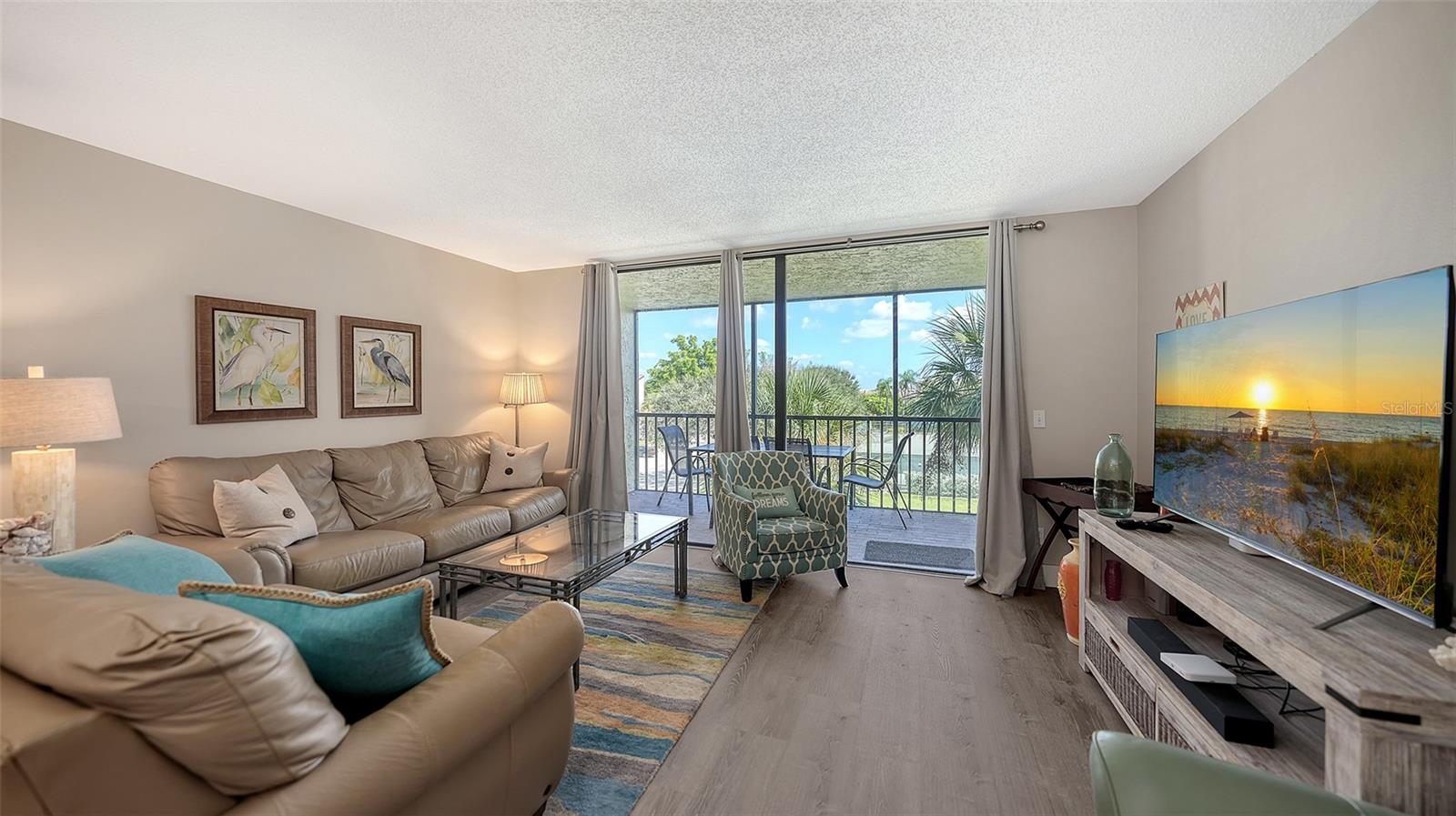 0.5 mi to Gulf beach access • Two heated pools & tennis courts • Gated Gulf-front community Welcome to Seaplace, a premier Gulf-front condominium community along Longboat Key’s scenic Gulf of Mexico Drive. This two-bedroom, two-bath residence (Unit G4-308) combines coastal living and community amenities in one of Sarasota County’s most desirable barrier-island locations. The open-concept layout flows seamlessly from the kitchen through the main living area to a screened lanai overlooking lush tropical landscaping and the Har-Tru tennis courts. Durable LVP flooring enhances the main living spaces, while neutral finishes allow a bright, airy feel throughout. The kitchen features stainless-steel appliances, ample cabinetry, and generous counter space for meal prep. The primary suite includes a walk-in closet and private bath; the secondary bedroom and full guest bath offer ideal separation for visiting friends and family. Convenient in-unit washer and dryer add everyday functionality. Residents of Seaplace enjoy approximately ½ mile of Gulf beachfront, two heated swimming pools and spas, a Gulf-side sundeck, Har-Tru tennis courts, walking paths throughout 42 acres of manicured grounds, a well-equipped fitness center, clubhouse with full kitchen and library, sauna, children’s playground, barbecue grills, and 24-hour staffed security gate. The quarterly association fee of $4, 315 covers exterior maintenance, building insurance, water, sewer, cable, and amenities. Service animals are permitted per association rules; no pets otherwise. Seasonal and annual rentals are allowed with a two-month minimum. Situated along the island’s southern corridor, Seaplace offers proximity to both natural beauty and daily convenience. Publix (0.8 mi) and Bayfront Park Recreation Center (1.6 mi) provide easy access to groceries, pickleball courts, and a kayak launch. Fine dining options such as Harry’s Continental Kitchens (1.3 mi) and Euphemia Haye (1.1 mi) are nearby, along with The Shore Restaurant (1.9 mi) and the boutiques of St. Armands Circle (3.8 mi). Longboat Key Club Golf & Tennis (2.7 mi) and Downtown Sarasota (6.5 mi) offer world-class recreation and cultural attractions including the Van Wezel Performing Arts Hall, Ringling Museum, and Marie Selby Botanical Gardens. Seaplace’s Gulf-front setting provides direct beach access for sunrise or sunset walks, while community walking trails and tropical courtyards create a resort-style atmosphere year-round. This move-in-ready residence represents an exceptional opportunity to enjoy coastal living on Longboat Key, combining location, amenities, and Gulf access within a secure, well-maintained community. Includes interior laundry, screened lanai, and access to multiple pools, tennis, clubhouse, and beachfront amenities. Floor plan are available within the listing for additional detail.