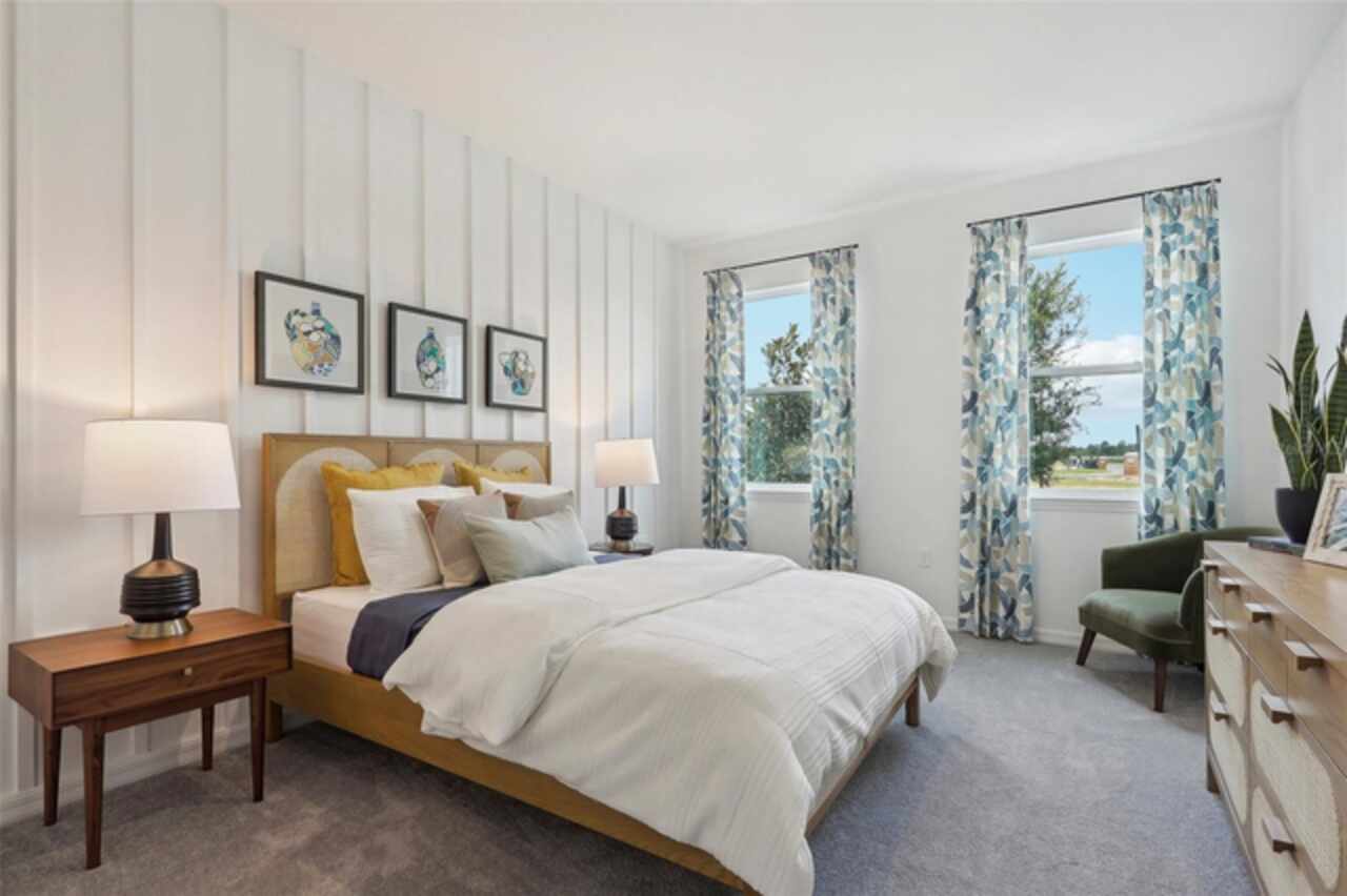 One or more photo(s) has been virtually staged. Under Construction. Stanley Martin builds new construction single-family homes in the Brack Ranch community in St. Cloud, Florida. This neighborhood is in the perfect location, halfway between downtown Orlando and the beaches of Florida's east coast. You'll have the best of both worlds; the excitement of the city and the tranquility of the coast are within reach. Downtown Orlando and its famous theme parks are just 25 miles away, and I-95 is only 35 miles away, making travel a breeze. With convenient access to SR-417, SR-528, US-192, and Florida's Turnpike, your commute and travel to meet your daily needs will be a breeze. Plus, with Orlando International Airport just a 15-minute drive away, travel couldn't be more convenient. It's not just the surrounding area: Brack Ranch itself is packed with amenities designed to enhance your lifestyle. Take a dip in the pool, relax in our clubhouse, let the kids unwind on the playground, or explore the many walking trails. The Webber is a spacious 2, 200-square-foot single-story home with four bedrooms and three bathrooms. The kitchen overlooks the dining and living rooms, while the open-air lanai off the family room provides abundant natural light throughout the main living area. Tucked away at the front of the home is a second bedroom with a private bathroom, perfect for guests! With a spacious master suite located on the lower level, the home features a large living room, dining area, and kitchen.