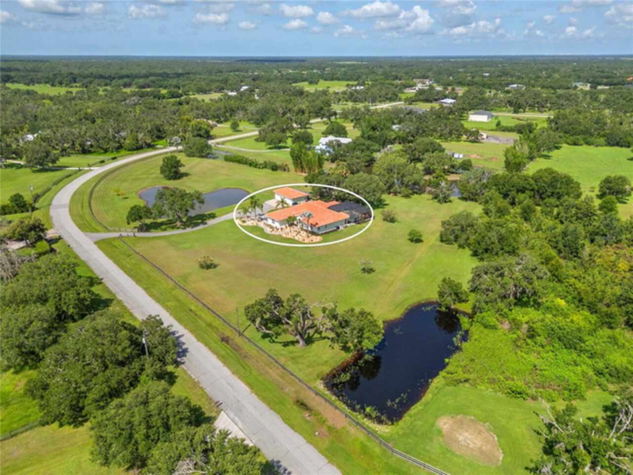 If You Are Looking for some PEACE and QUIET----WELCOME HOME TO BEL-AIR ESTATES! Enjoy your dream home with 5 acres in the beautiful Country style neighborhood, but still close to everything Sarasota has to offer!! This home has all NEW Impact Glass Windows! NEW Front Doors! NEW Roof! Whole House-Generator! 1, 000 Gallon Propane Tank! Cook on your gas VIKING range and microwave! All appliances including washer/dryer are newer within last 5 years! ADDED features include a large BONUS room for an in-law suite/studio/office area! There is also a smaller den/office/nursery off the primary bedroom! Diagonal tile, Crown Molding & trim everywhere and all in perfect condition. The attention to detail in this home is obvious. If you love wide-open country living, yet want a refined stand-out home, this is your Estate. Plenty of storage closets. * AC has 4 zones! * Gorgeous salt-water pool and spa with an auto-clean system make this home complete with outdoor shower and space to entertain. *Newer 4 car detached garage with a lean-to for all of your projects! * Fully fenced yard along with 2 beautiful ponds, gardens, and a solar gated entry! Top of the line Security system also goes with the Sale! This family home is impeccably maintained- PRIDE OF OWNERSHIP SHOWS *Bring the toys + horses + hobbies - there is plenty of room to roam * A must see home in a country setting affording you lots of privacy yet only minutes to downtown & beaches * Pristine beauty surrounds you on your 5 acres of Land and is high & dry and horses trails surround community!
