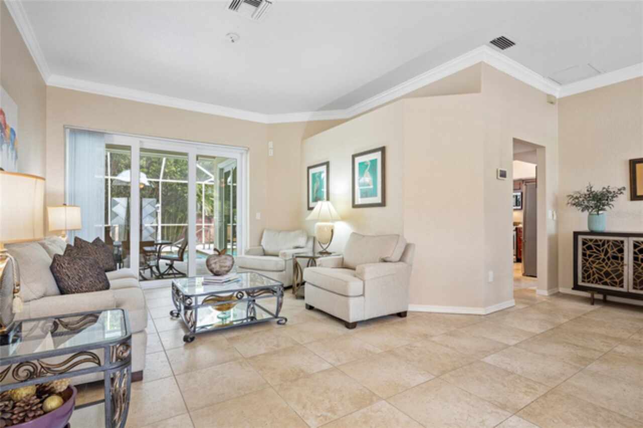 Under contract-accepting backup offers. Discover peace of mind and modern Florida living in highly desirable Stirling Heights! This beautifully maintained 3-bedroom, 2-bath pool home in Dunedin combines everyday comfort with major 2024 updates that matter most—new roof, new hurricane-impact windows and doors, new water heater, and new HVAC (Oct 2025)—offering true move-in confidence and long-term value. Inside, 10-foot ceilings and abundant natural light enhance the open living and dining area accented with crown molding. Pocketing sliders extend the living space outdoors to a private screened pool and lanai, perfect for relaxing or entertaining. The spacious split-bedroom layout provides privacy for all. The primary suite opens directly to the pool through French doors and features two walk-in closets plus a spa-inspired bath with dual vanities, soaking tub, walk-in shower, and private water closet. At the heart of the home, a chef’s kitchen invites connection with an oversized island (seating for six), stainless steel appliances, and a sunny dinette overlooking the pool. The adjacent family room with wood-burning fireplace creates a cozy gathering space on cooler evenings. Additional highlights include: – Plantation shutters throughout – Interior laundry with built-in cabinetry – Attractive paver driveway, front courtyard, and lush landscaping for strong curb appeal Enjoy golf-cart access to downtown Dunedin’s shops, restaurants, and events, plus close proximity to beaches, the Donald Ross–designed Dunedin Golf Club, Pinellas Trail, Hammock Park, and Highlander Park. Located in a non-evacuation area (Flood Zone X)—no flood insurance required—and this home remained storm-damage-free through hurricanes Helene and Milton (2024). Homes in Stirling Heights rarely combine this level of quality, safety, and charm—schedule your private showing today!