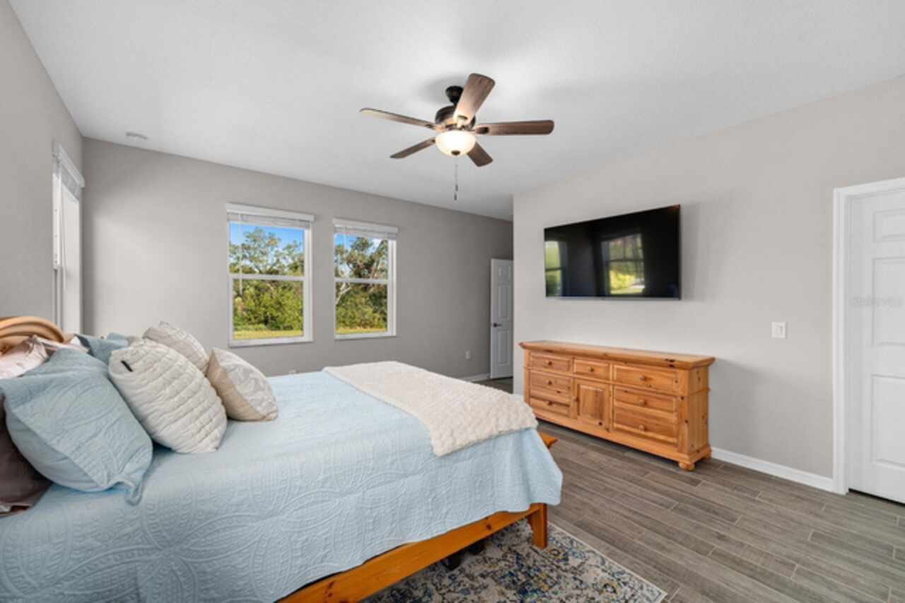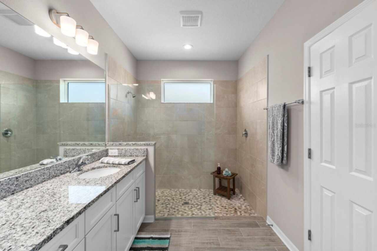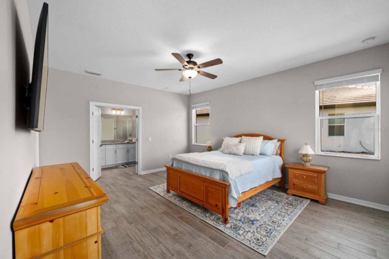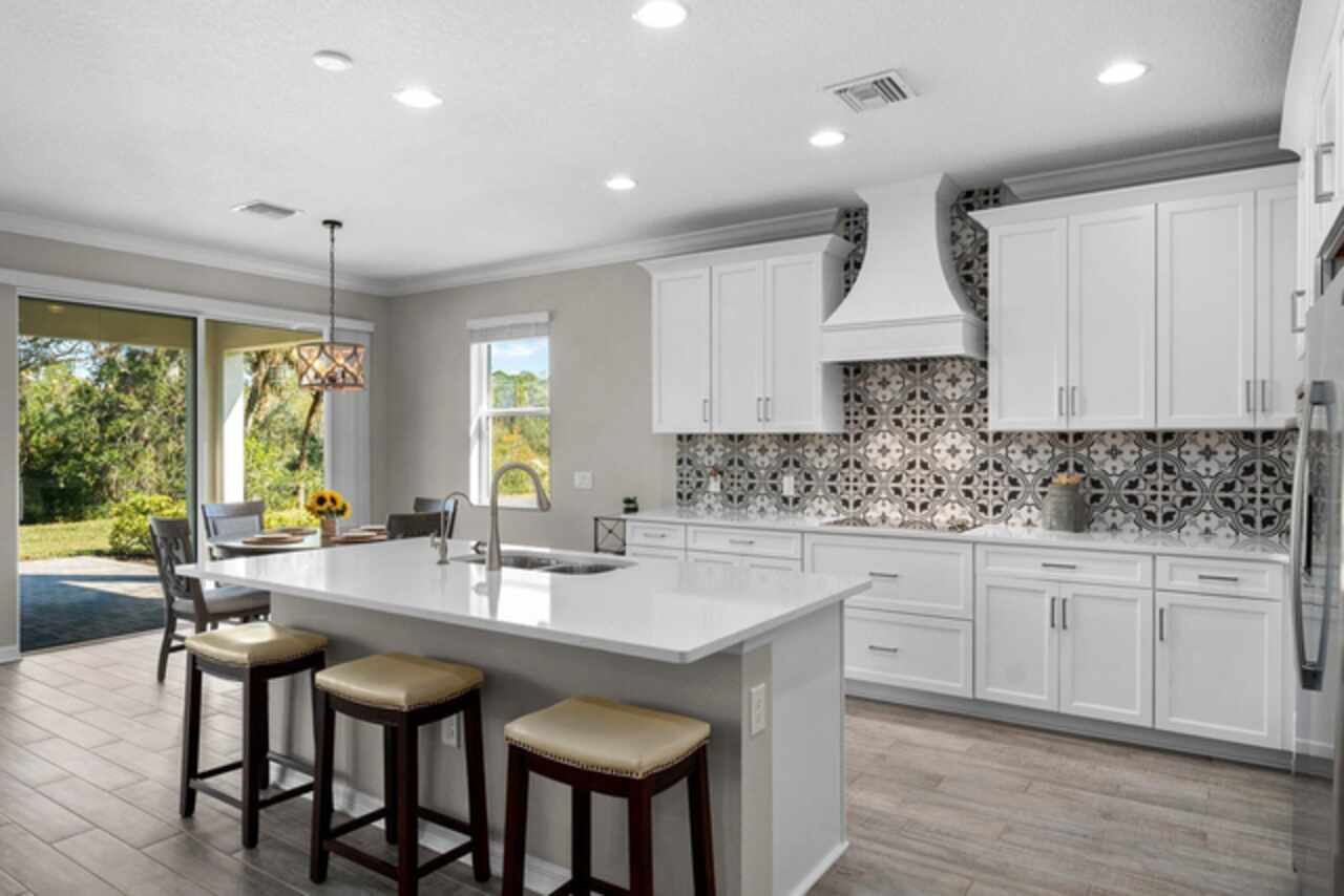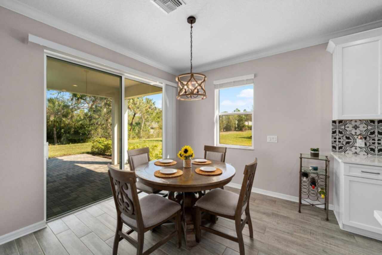 This immaculate 2022 built Crystal Model, Elevation B, by M I Homes is a stunning showcase of Tuscan and Mediterranean architecture, complete with a classic tile roof and exceptional attention to detail. Designed for both beauty and function, the home features a thoughtful, high quality layout and luxury upgrades throughout. Located in Flood Zone X, considered a no flood zone, and having never sustained storm damage, it offers peace of mind. Set off the neighborhood road and tucked behind an island of mature palm trees, this premium lot offers a rare sense of privacy and seclusion. With no rear neighbors, it is quietly nestled within the gorgeous Wellen Park neighborhood of Oasis, off the beaten path yet close to it all. The residence includes four generously sized bedrooms, three full bathrooms, and a spacious three car garage complemented by an oversized three lane driveway. Throughout the interior, upgraded tile flooring extends seamlessly from room to room with no carpeting or thresholds, enhancing the clean, modern aesthetic. The gourmet kitchen is a chef’s dream, featuring elegant white cabinetry, quartz countertops, and a sprawling 7.5 foot island. Custom features include built in pantry space, dedicated pots and pans drawers, and a hidden trash cabinet. A stylish white wood range hood adds a sophisticated focal point. Additional upgrades include a whole home water softener and reverse osmosis system for added comfort and quality. Crown molding and recessed lighting elevate the open concept kitchen and great room, creating a light, airy atmosphere perfect for everyday living or entertaining. Expansive sliding glass doors line the back wall, opening to an extended lanai and a beautifully paved 29 by 22 patio, ideal for outdoor gatherings or future pool installation. The 11, 522 square foot lot offers ample space and privacy, surrounded by lush palms. Located in the finished, gated, and maintenance free community of Oasis, comprised of approximately 140 single family homes, residents enjoy access to premium amenities including a resort style pool, clubhouse, and pickleball court. Oasis also features a private walking trail connecting to the adjacent gated neighborhood and directly to Blue Heron Dog Park, a 33 acre green space with two miles of trails and two separate off leash dog parks. Wellen Park is a vibrant, master planned community offering a lifestyle centered around connection, wellness, and recreation. Residents can enjoy shopping, dining, and entertainment at the Wellen Park Town Center or take in a game at CoolToday Park, the spring training home of the Atlanta Braves. The community also hosts a weekly farmers market, outdoor concerts, and miles of walking and biking trails winding through beautifully landscaped parks and green spaces. Oasis is ideally located within Wellen Park, just 10 miles from the Gulf Coast’s beautiful beaches and conveniently situated near Costco, Publix, Chase Bank, medical offices, and the State College of Florida’s Venice campus. This home also includes appliance manuals and surplus materials such as floor tile, backsplash tile, trim, roof tiles, and paint, along with smart garage and doorbell systems and a built in Taexx pest control system for added convenience.