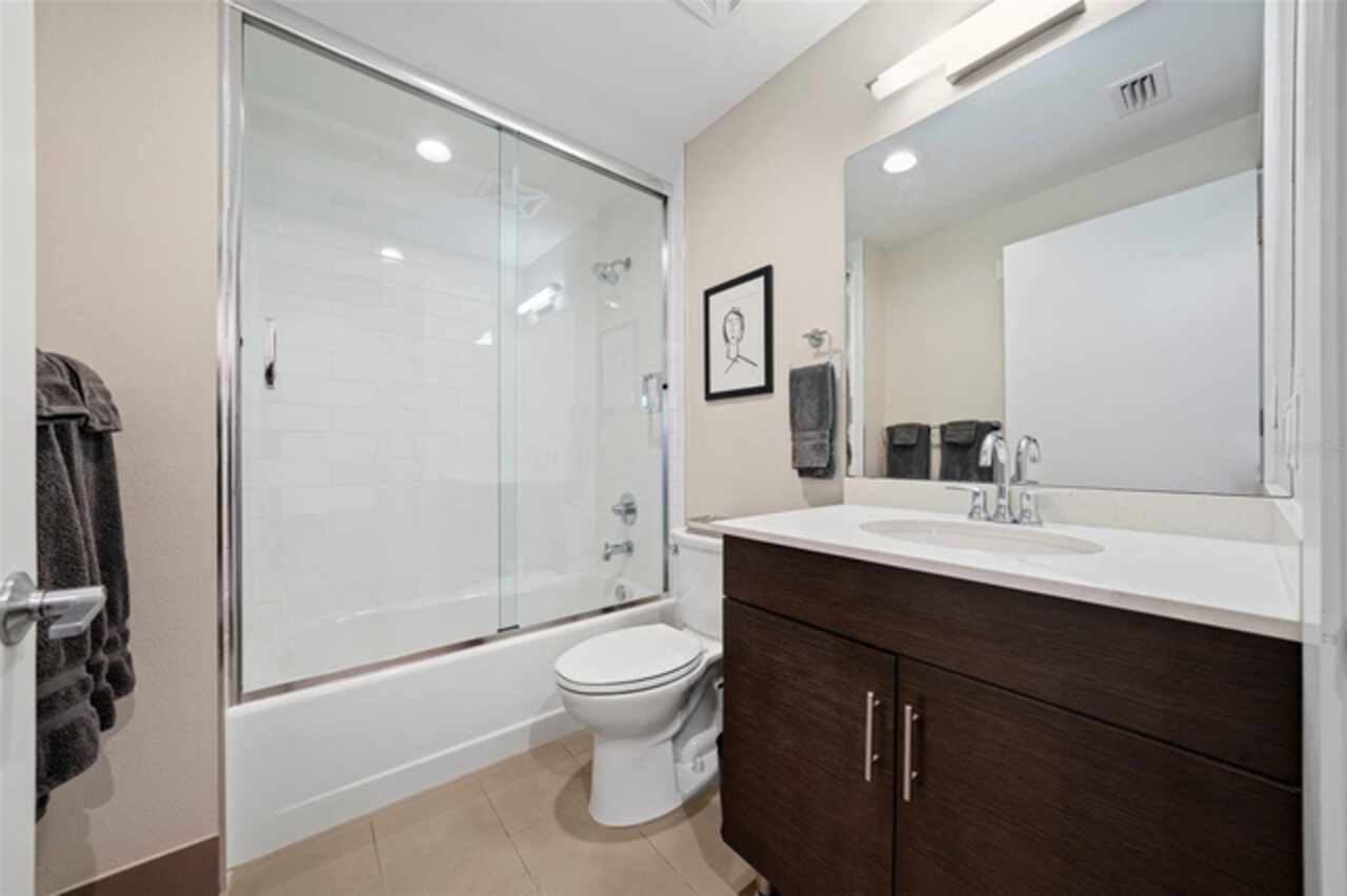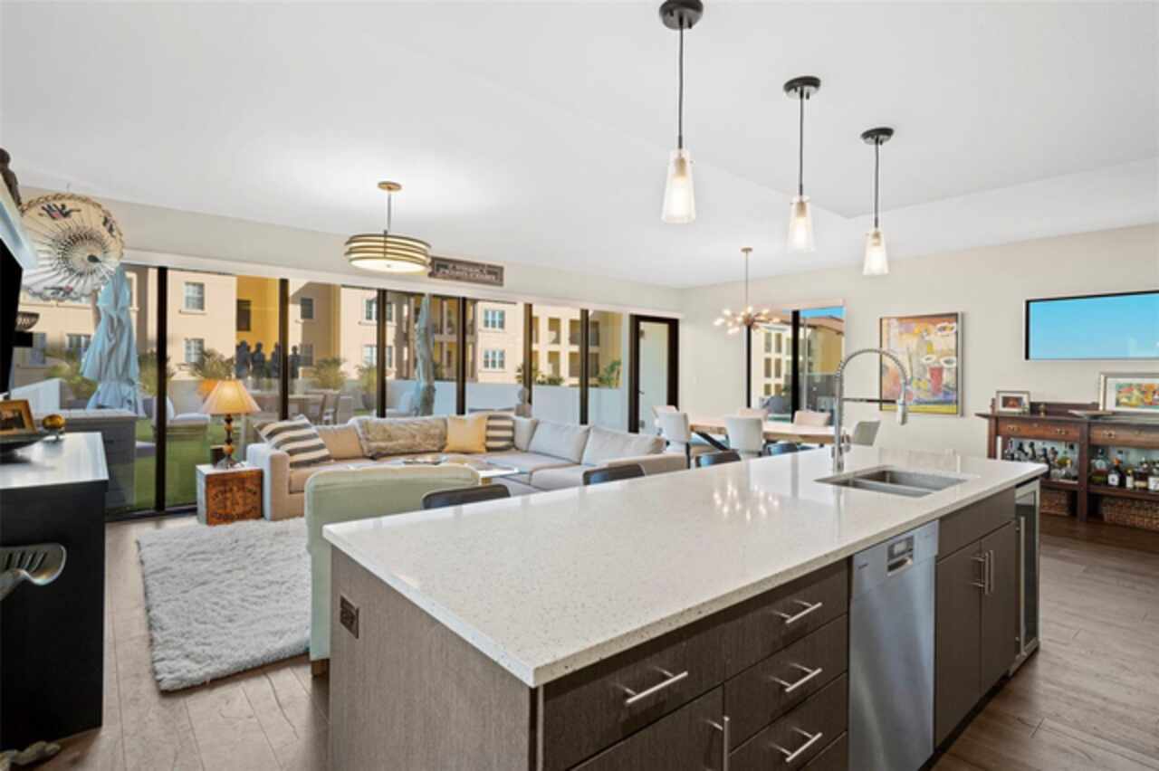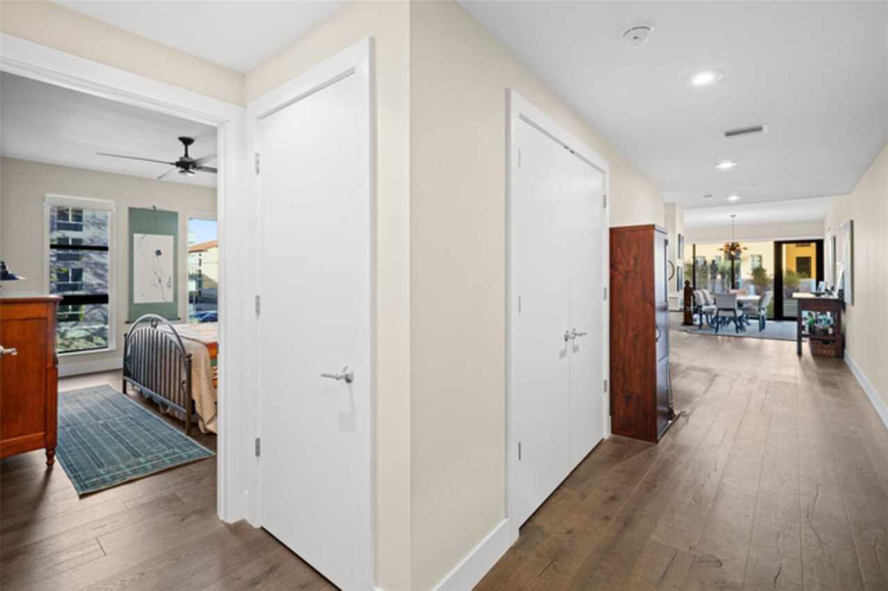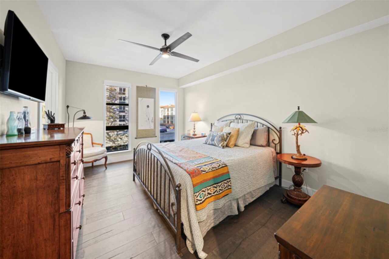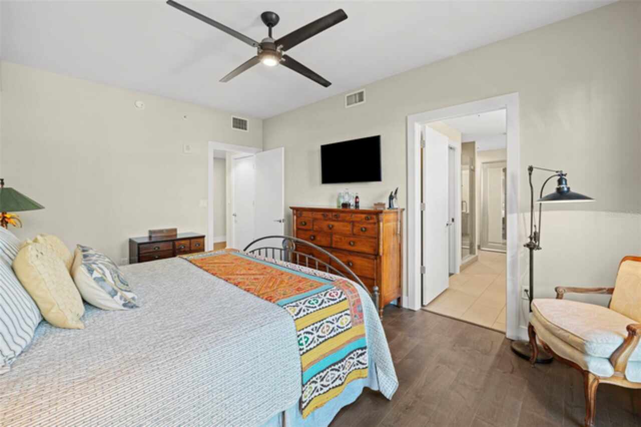 *** One of a Kind Condo *** This home offers a very special opportunity, the ease of metropolitan condo living with the feel of a gorgeous backyard. Truly one of a kind at the Salvador and perhaps in all of St Pete, this home offers a 1000+ SF terrace covered in artificial turf that's made with heat-reflective technology, providing a cool, maintenance free area for dining and relaxing outdoors. The terrace overlooks the 3rd floor amenities deck, downtown, the Dali museum, and Tampa Bay. An open floor plan with the Kitchen, Dining, and Living rooms all overlooking the terrace through floor to ceiling windows provide a most elegant space to entertain, in and out of doors. This condo sets out from the rest of the building and therefore has no adjacent units next to it, providing the ultimate in privacy. Engineered hardwood floors flow throughout the 1555sf of this home. A large, open, contemporary kitchen with Quartz countertops, Bosch appliances, Gas Range, and Wine Cooler has abundant natural light. The living room features a built-in entertainment center with an additional beverage cooler and motorized blinds. The primary bedroom with an oversized walk-in closet, is en-suite with a deep soak tub, dual sinks, and large shower. The guest bath has a tub/shower with shower door and both bedrooms have tall windows with blackout shades.The home has two parking spaces and a climate controlled storage unit. The Salvador, a LEEDS certified green 74 unit building has great amenities in a pool, spa, state-of-the-art fitness center, social room, grilling station, gated dog park with dog washing station, sculpture garden and outdoor fire pit area. Concierge and on-site management are convenient features for the owners. All located within easy access to all that downtown living offers and yet, located in a quiet part of town when you’re ready to wind down. Call for your private tour of this exquisite and unique home.