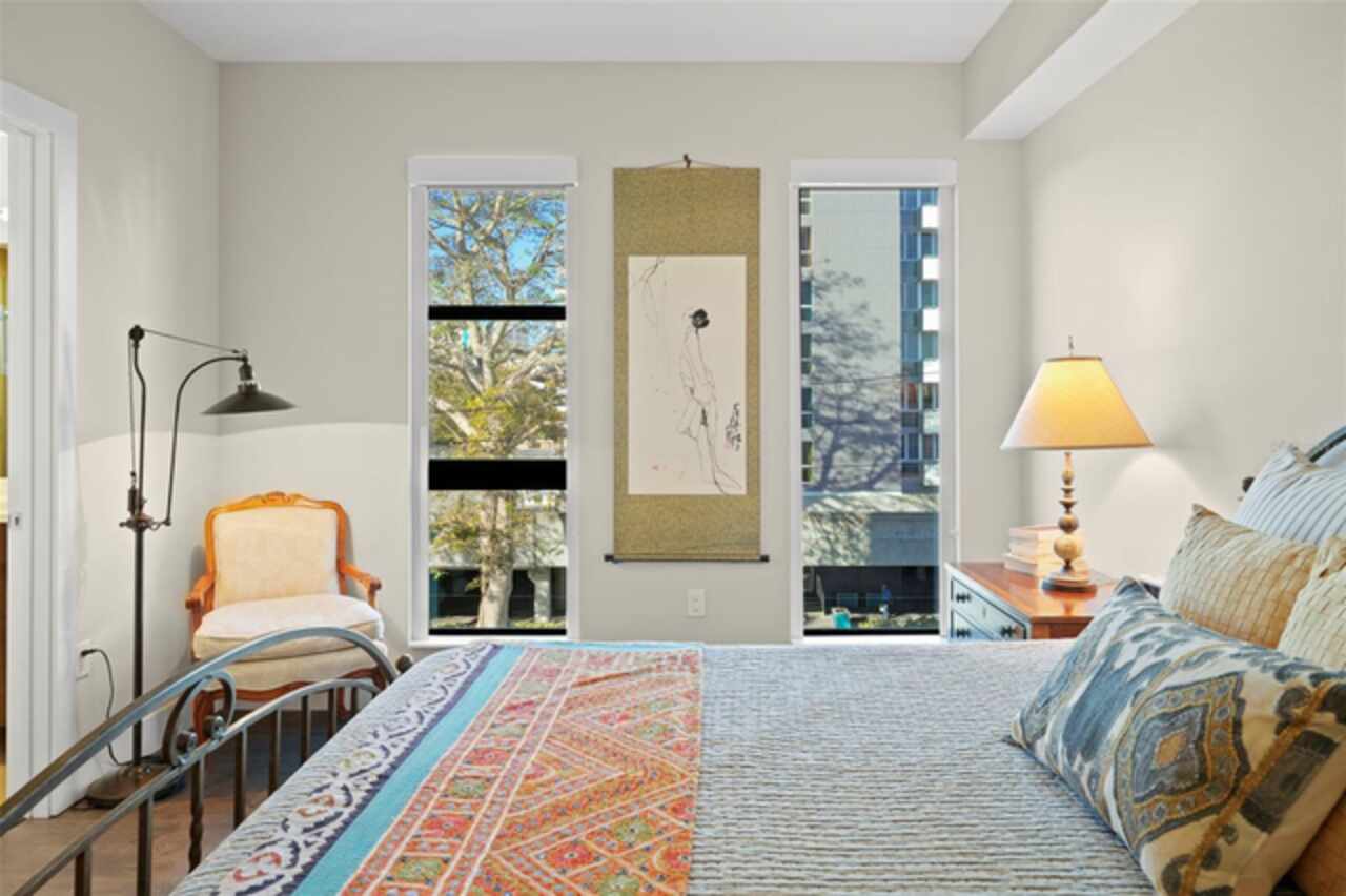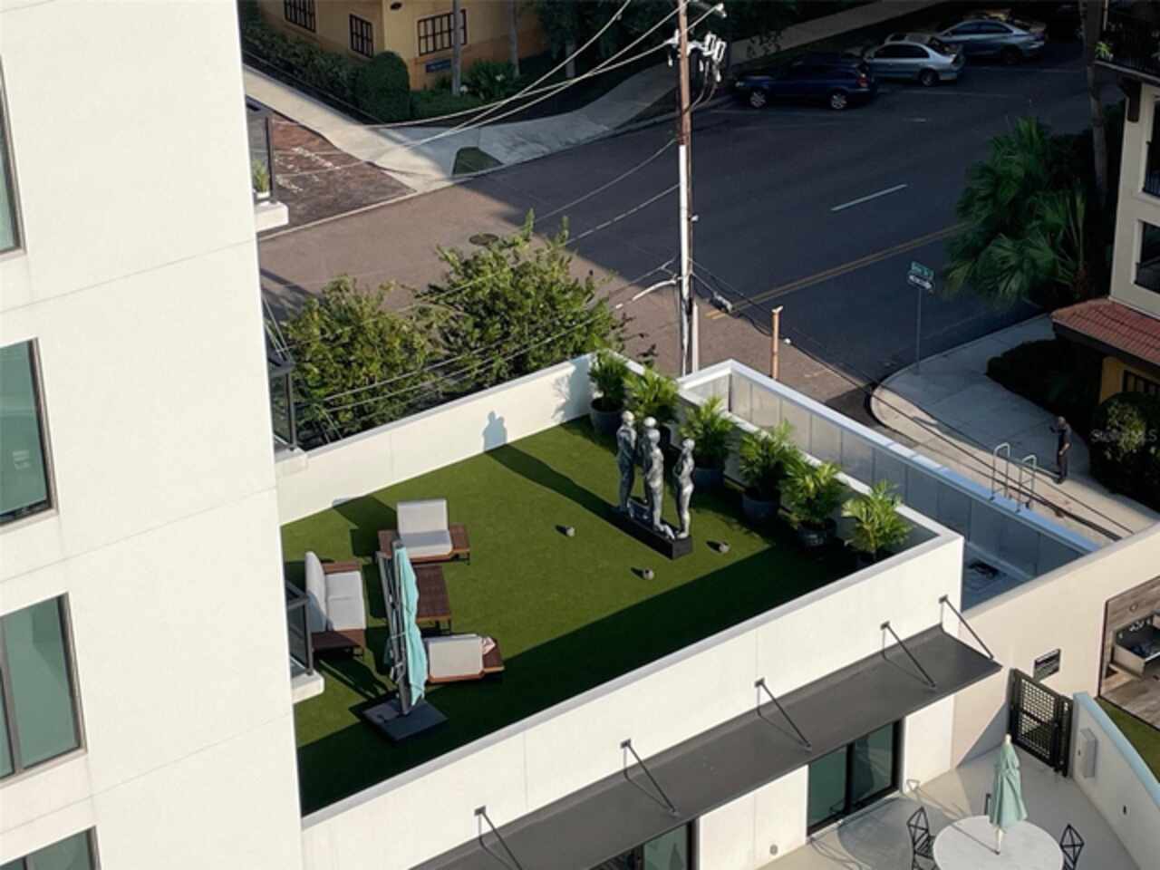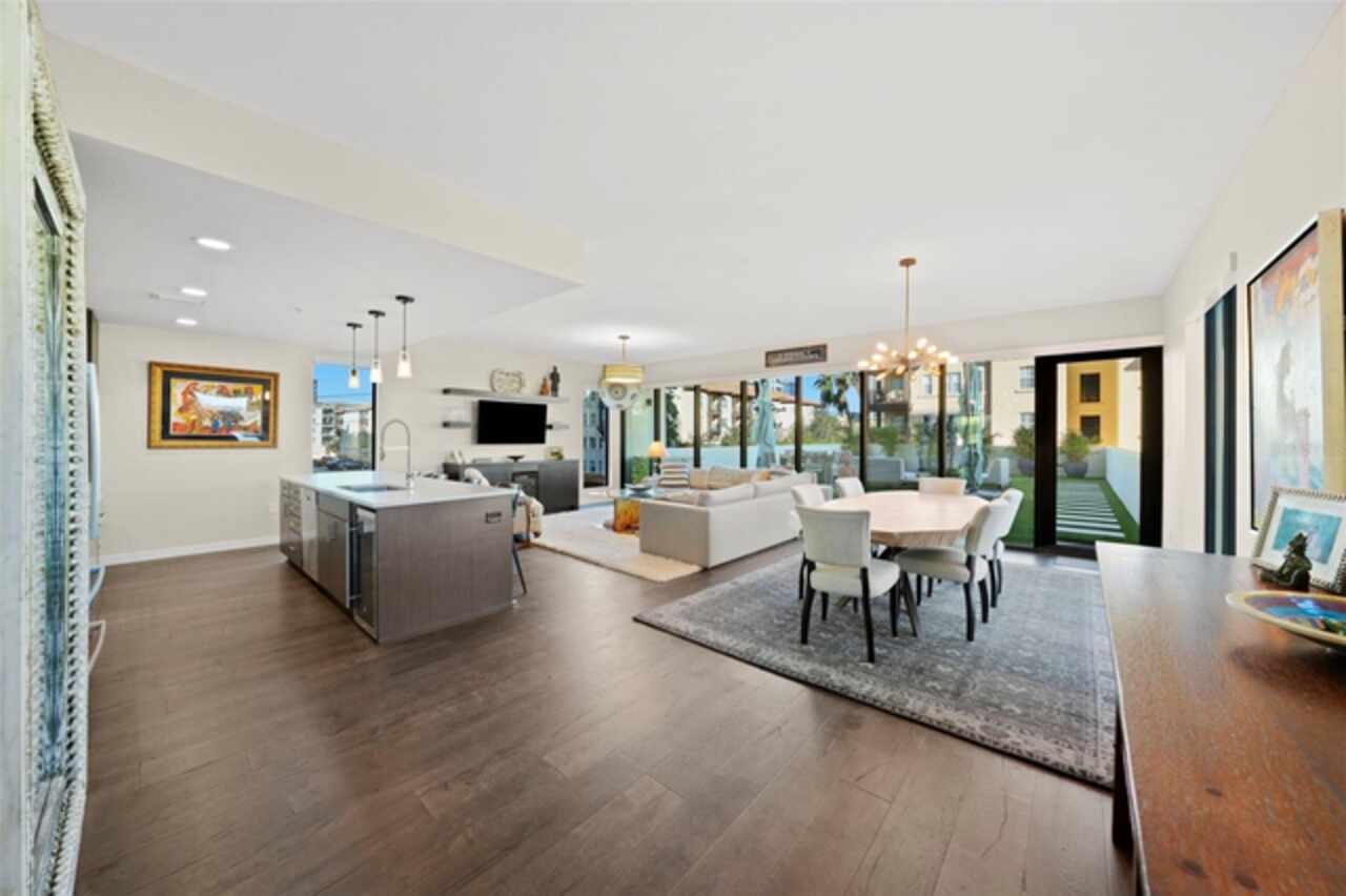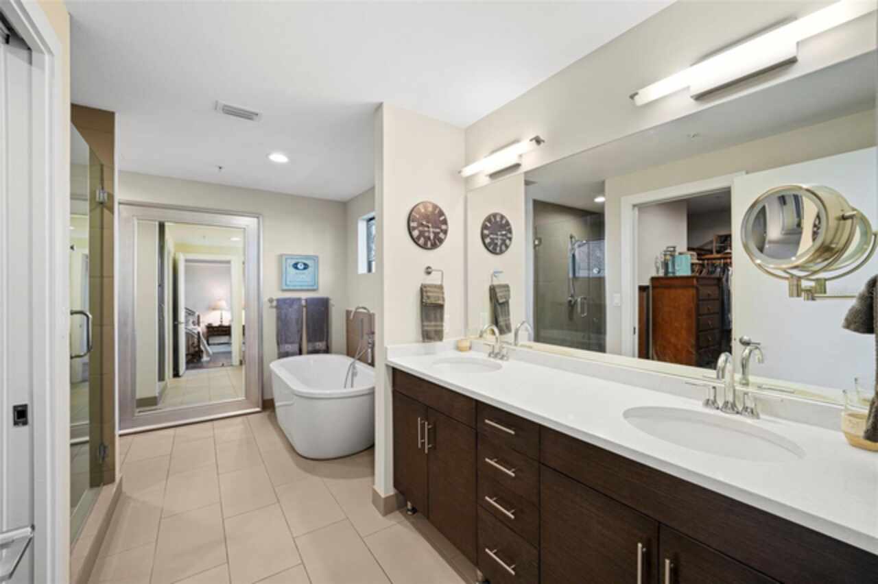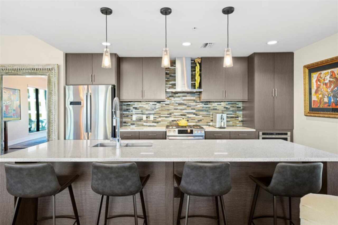 *** One of a Kind Condo *** This home offers a very special opportunity, the ease of metropolitan condo living with the feel of a gorgeous backyard. Truly one of a kind at the Salvador and perhaps in all of St Pete, this home offers a 1000+ SF terrace covered in artificial turf that's made with heat-reflective technology, providing a cool, maintenance free area for dining and relaxing outdoors. The terrace overlooks the 3rd floor amenities deck, downtown, the Dali museum, and Tampa Bay. An open floor plan with the Kitchen, Dining, and Living rooms all overlooking the terrace through floor to ceiling windows provide a most elegant space to entertain, in and out of doors. This condo sets out from the rest of the building and therefore has no adjacent units next to it, providing the ultimate in privacy. Engineered hardwood floors flow throughout the 1555sf of this home. A large, open, contemporary kitchen with Quartz countertops, Bosch appliances, Gas Range, and Wine Cooler has abundant natural light. The living room features a built-in entertainment center with an additional beverage cooler and motorized blinds. The primary bedroom with an oversized walk-in closet, is en-suite with a deep soak tub, dual sinks, and large shower. The guest bath has a tub/shower with shower door and both bedrooms have tall windows with blackout shades.The home has two parking spaces and a climate controlled storage unit. The Salvador, a LEEDS certified green 74 unit building has great amenities in a pool, spa, state-of-the-art fitness center, social room, grilling station, gated dog park with dog washing station, sculpture garden and outdoor fire pit area. Concierge and on-site management are convenient features for the owners. All located within easy access to all that downtown living offers and yet, located in a quiet part of town when you’re ready to wind down. Call for your private tour of this exquisite and unique home.